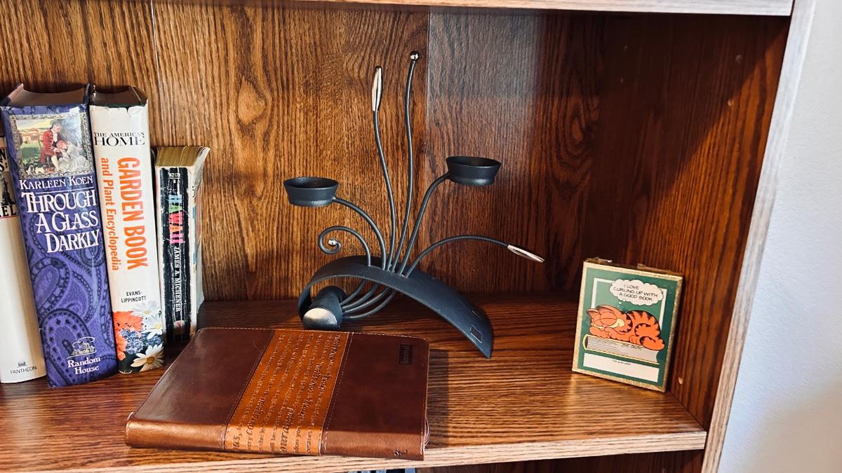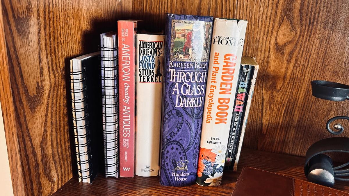 BOOK SHELF AND CONTENTS (BOOKS, DVDS & MORE)