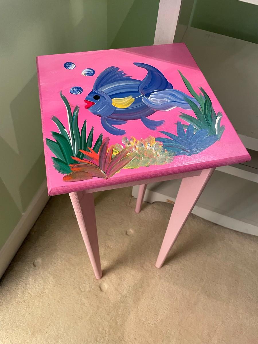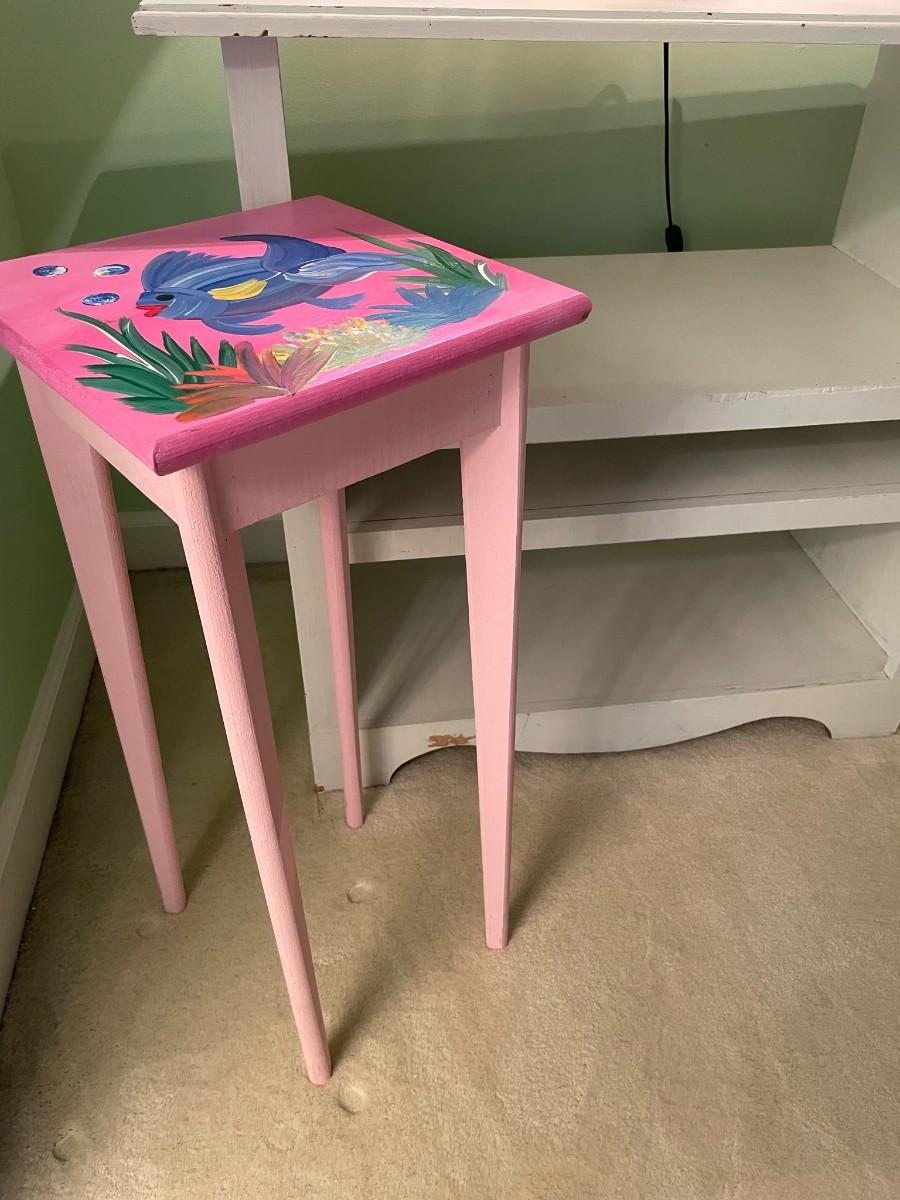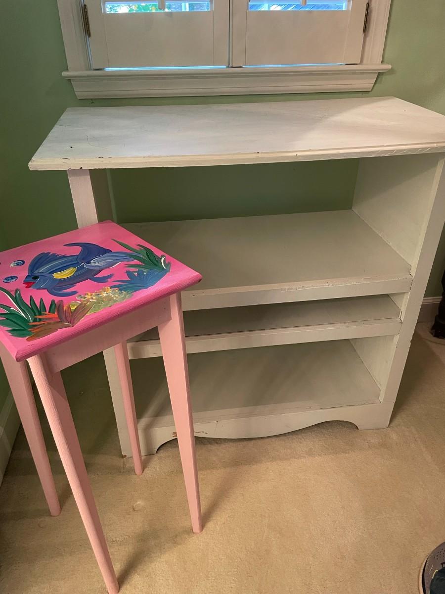 Book Shelf and Pink Fish Table - Item Must be Scheduled for Pickup.