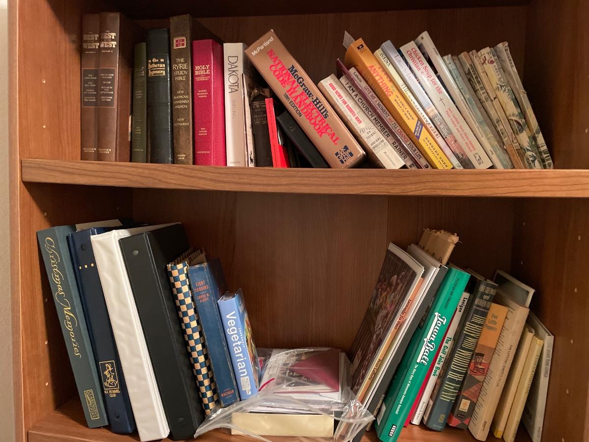 Book shelf with cook books and more