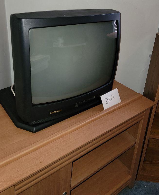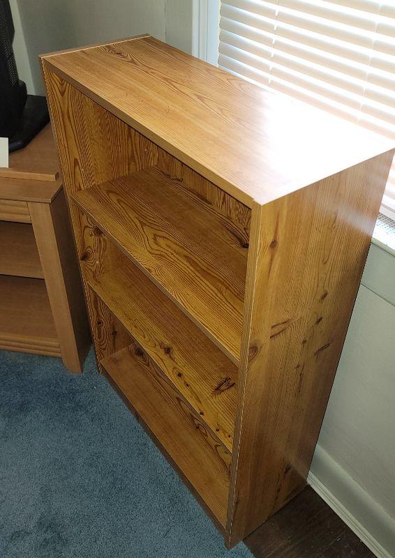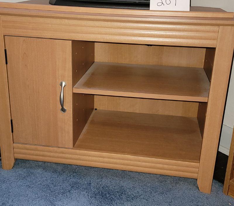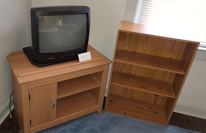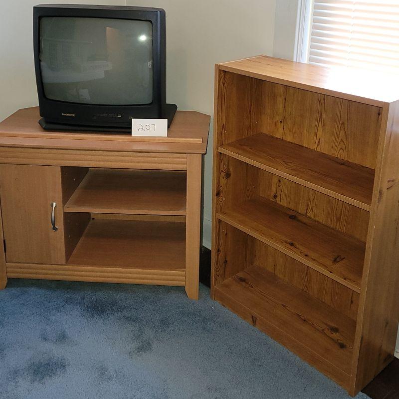 Lot 207: Bookcase 36"h x 24"w x 9d and corner TV stand 24"h x 31"w x 19 1/2d