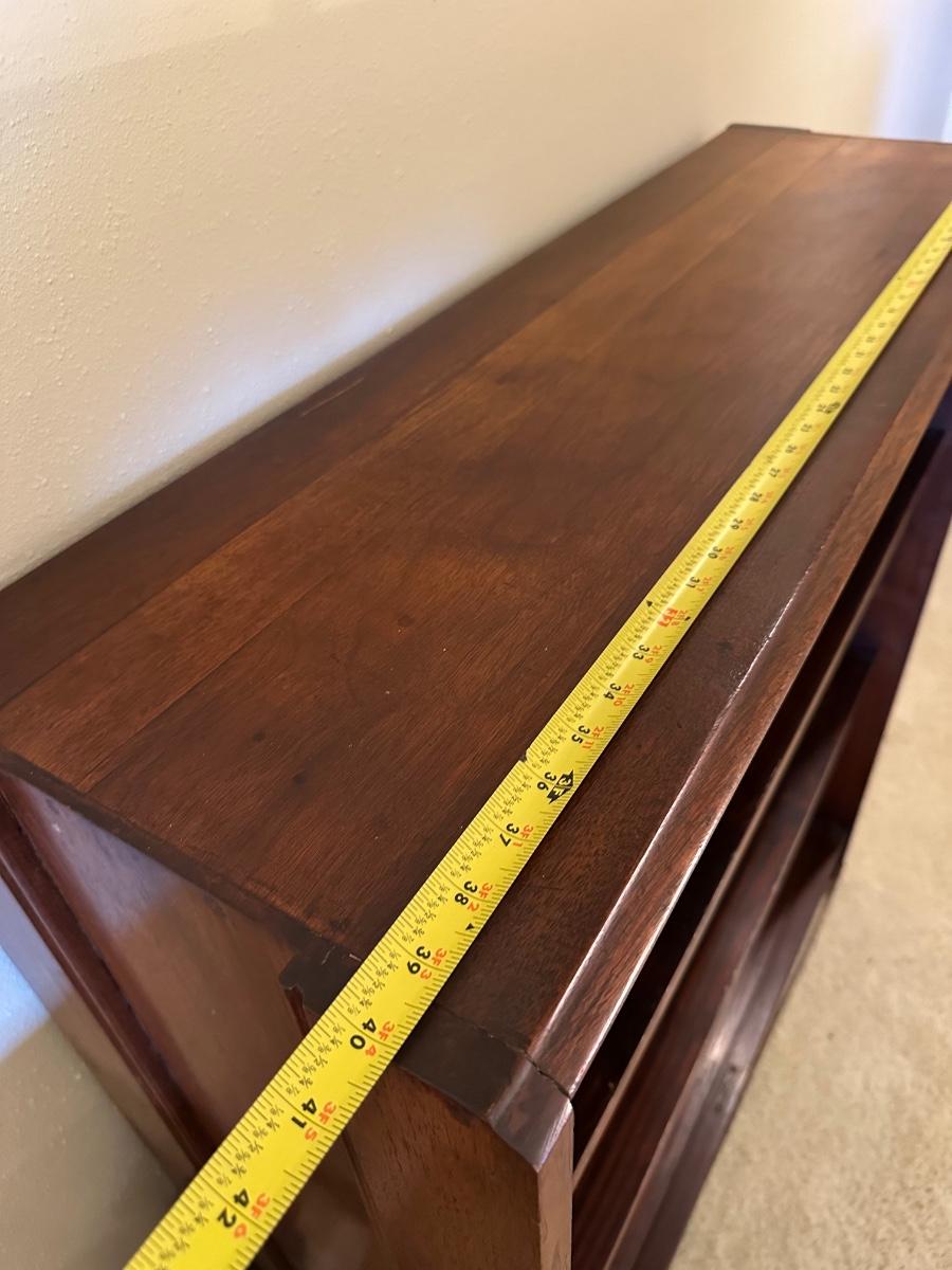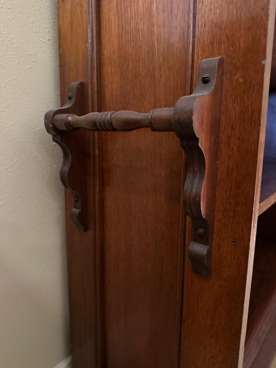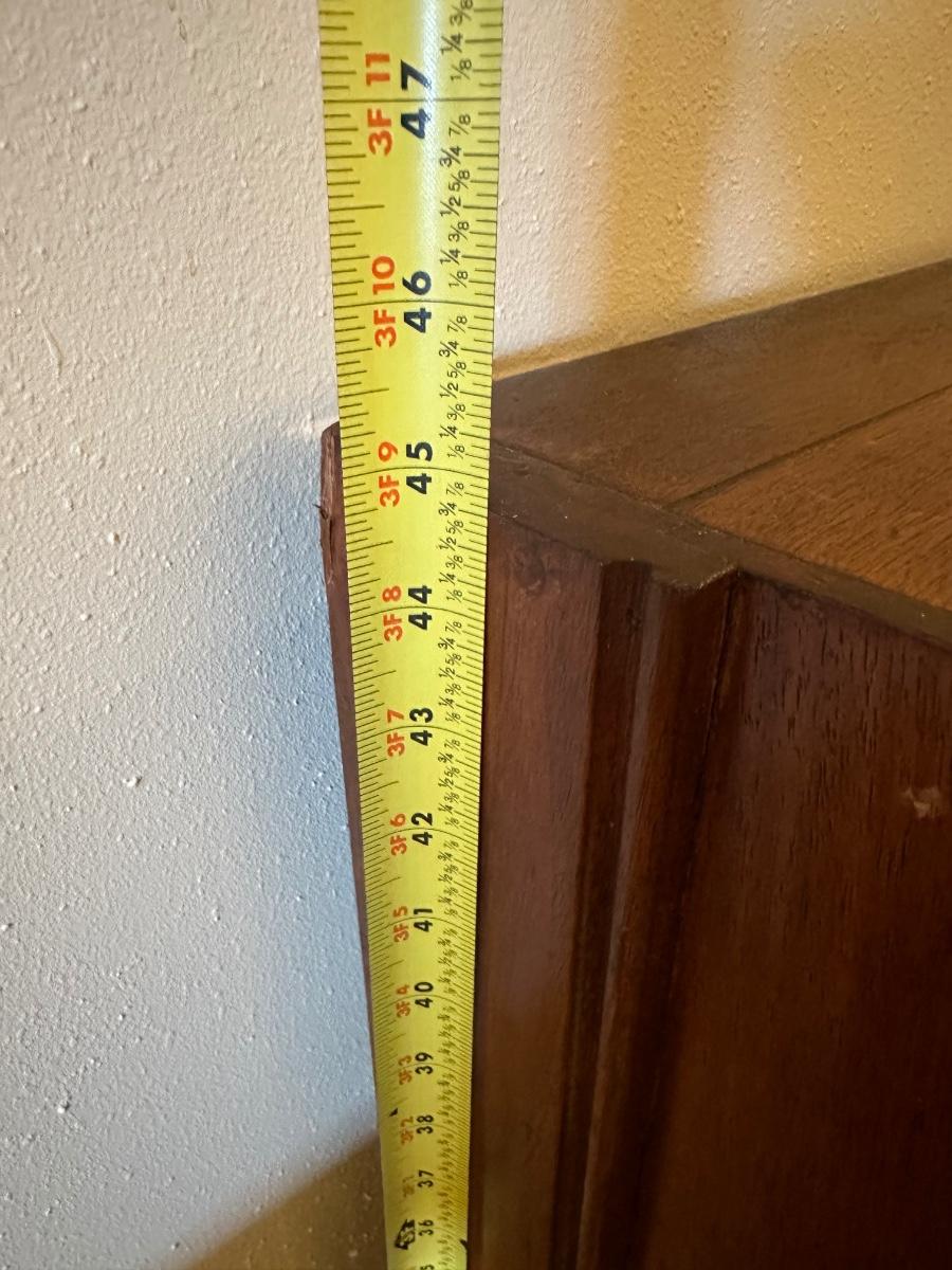 Bottom of the bookshelf has a piece of trim that needs attention. (Pictured)