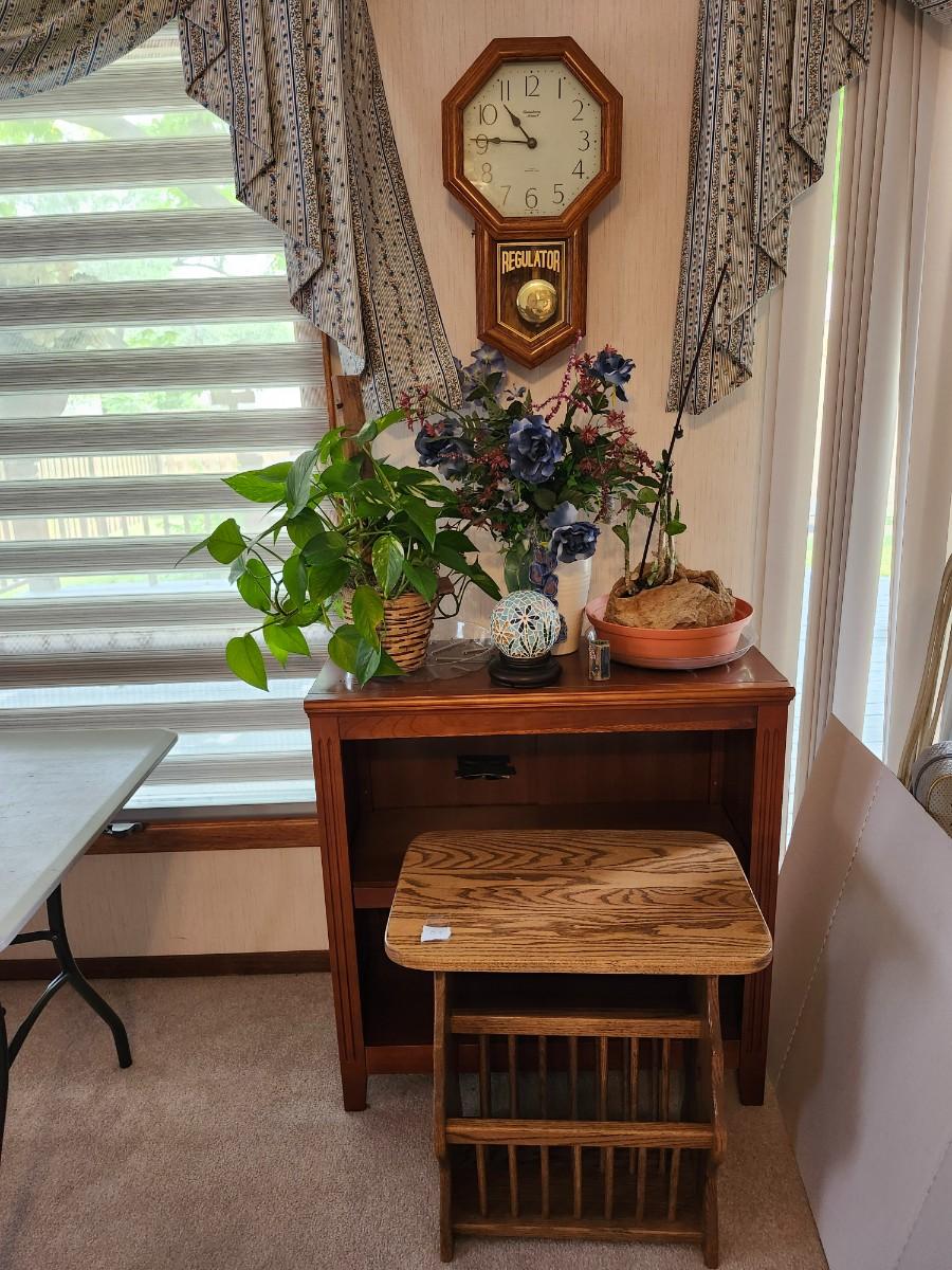 Bookcase /Shelf, Solid Wood Magazine rack/table, Live plant, Clock Home decor