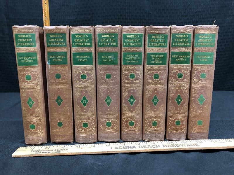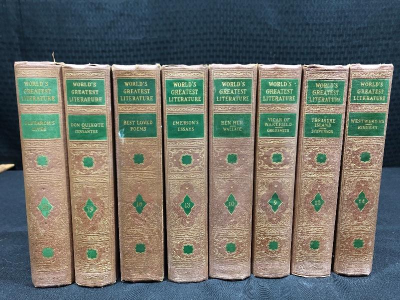 Vintage World's Greatest Literature books. Set of 8. Signs of age and wear. Display great.