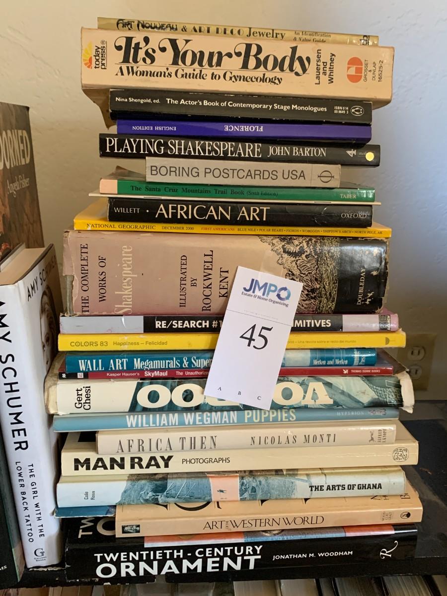 Fiction, non fiction. Cookbooks. Includes stone bookends, shown