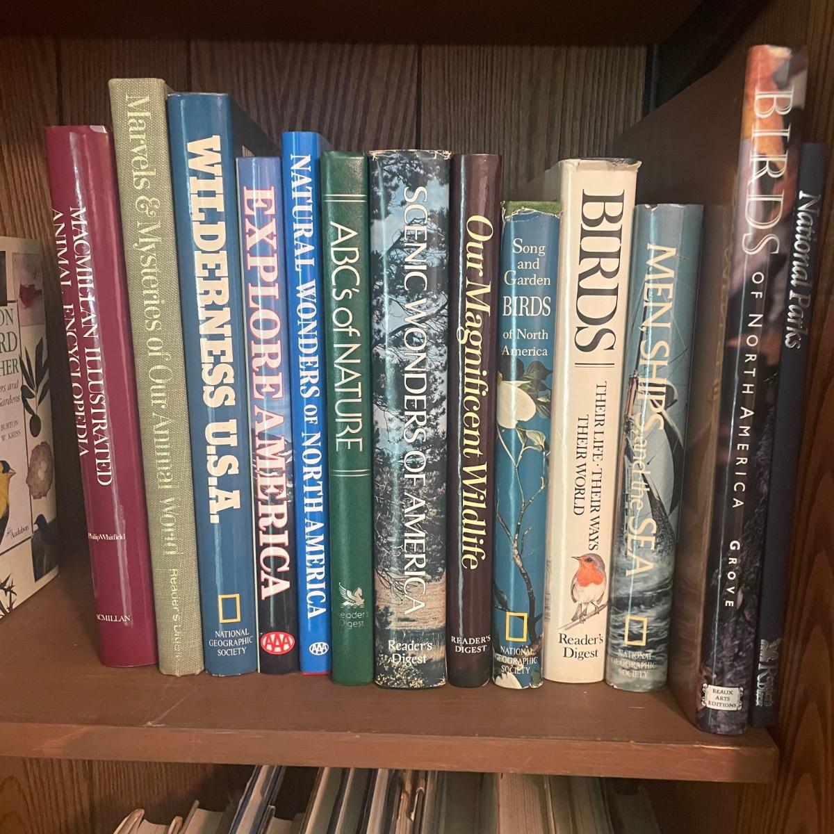 An assortment of books about nature, many about ornithology in good condition. Collection includes the twelve book Audubon Nature Encyclopedias, The Scenic Wonders of America and more. Local pickup only