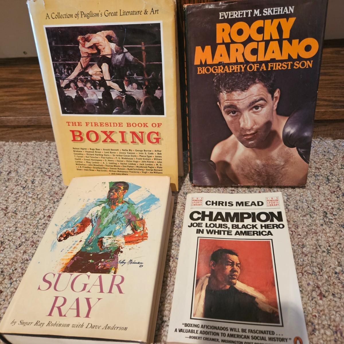 A collection of seven books about boxing that includes titles like "King of the World", "Sugar Ray", and "Fight Doctor". Shipping Available