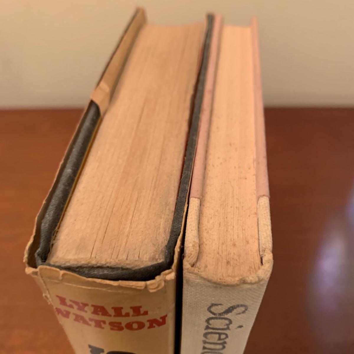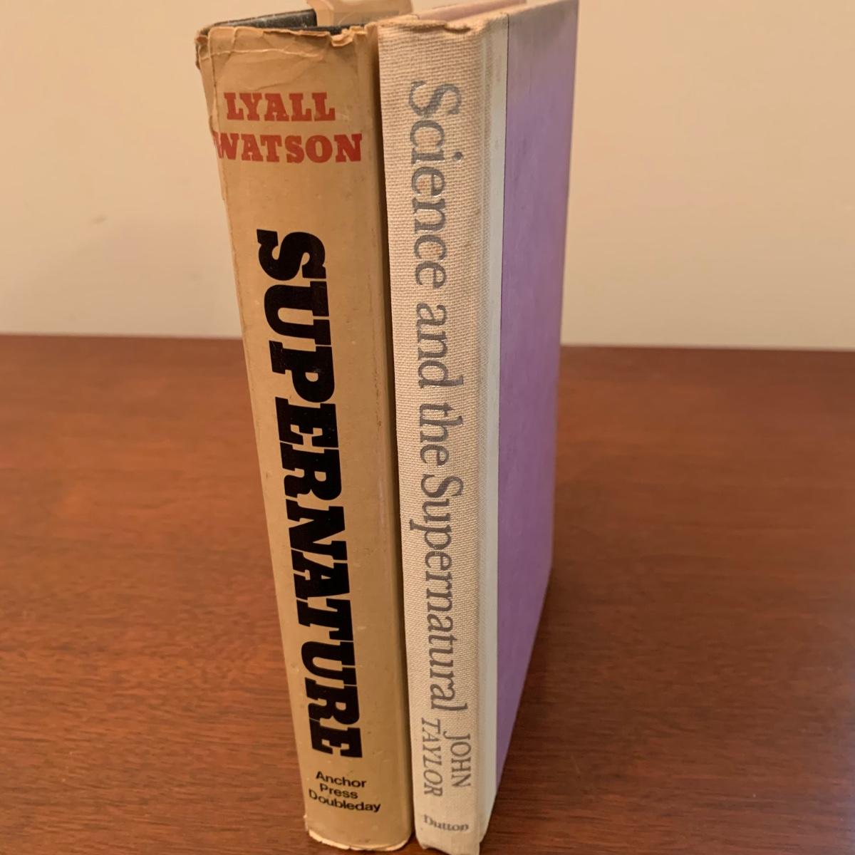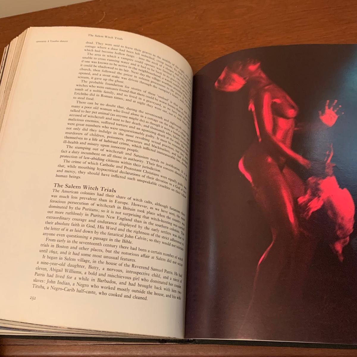Seven books about witchcraft, voodoo, the supernatural, and the Devil. Six are hardcover and one is paperback. They are mostly in good condition. Some of the dust jackets show some wear and tear. They are a bit dusty and musty from being stored in a basement.