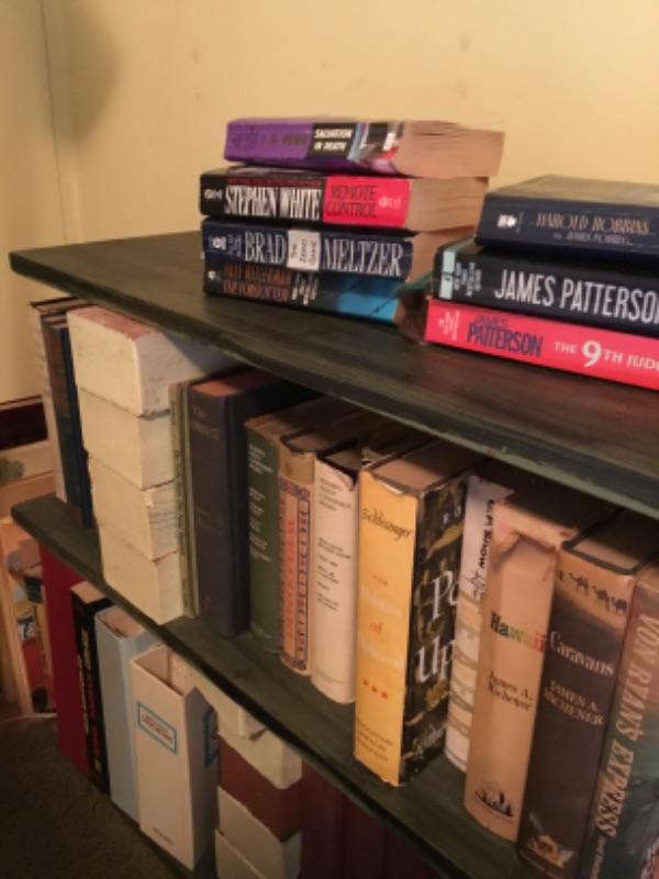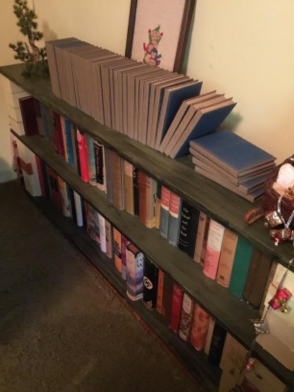 Large collection of books approximately 200. Lot includes wood shelves. Includes all books in 2nd floor office