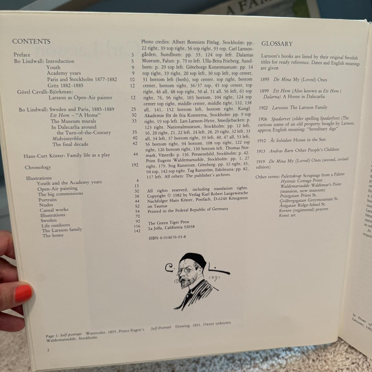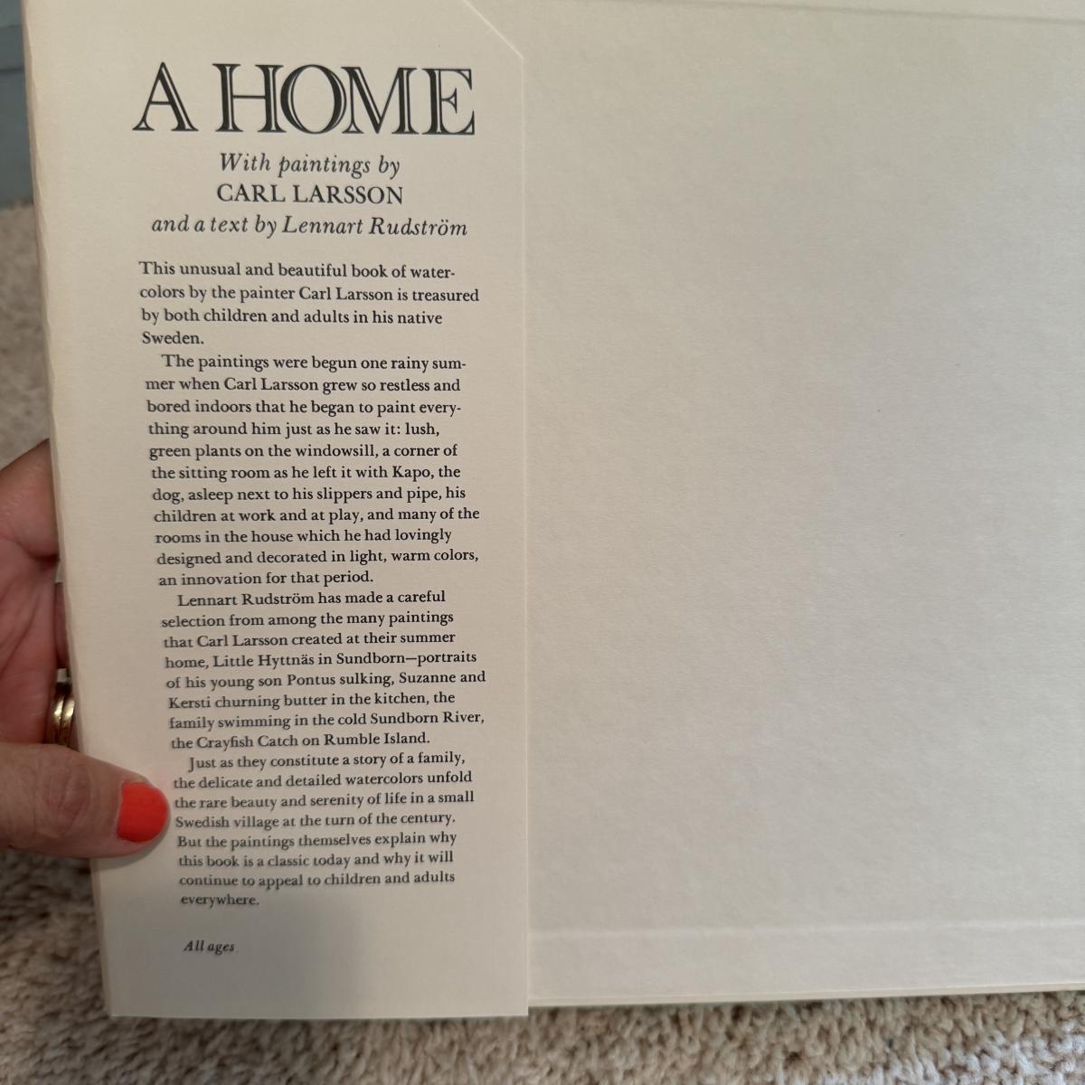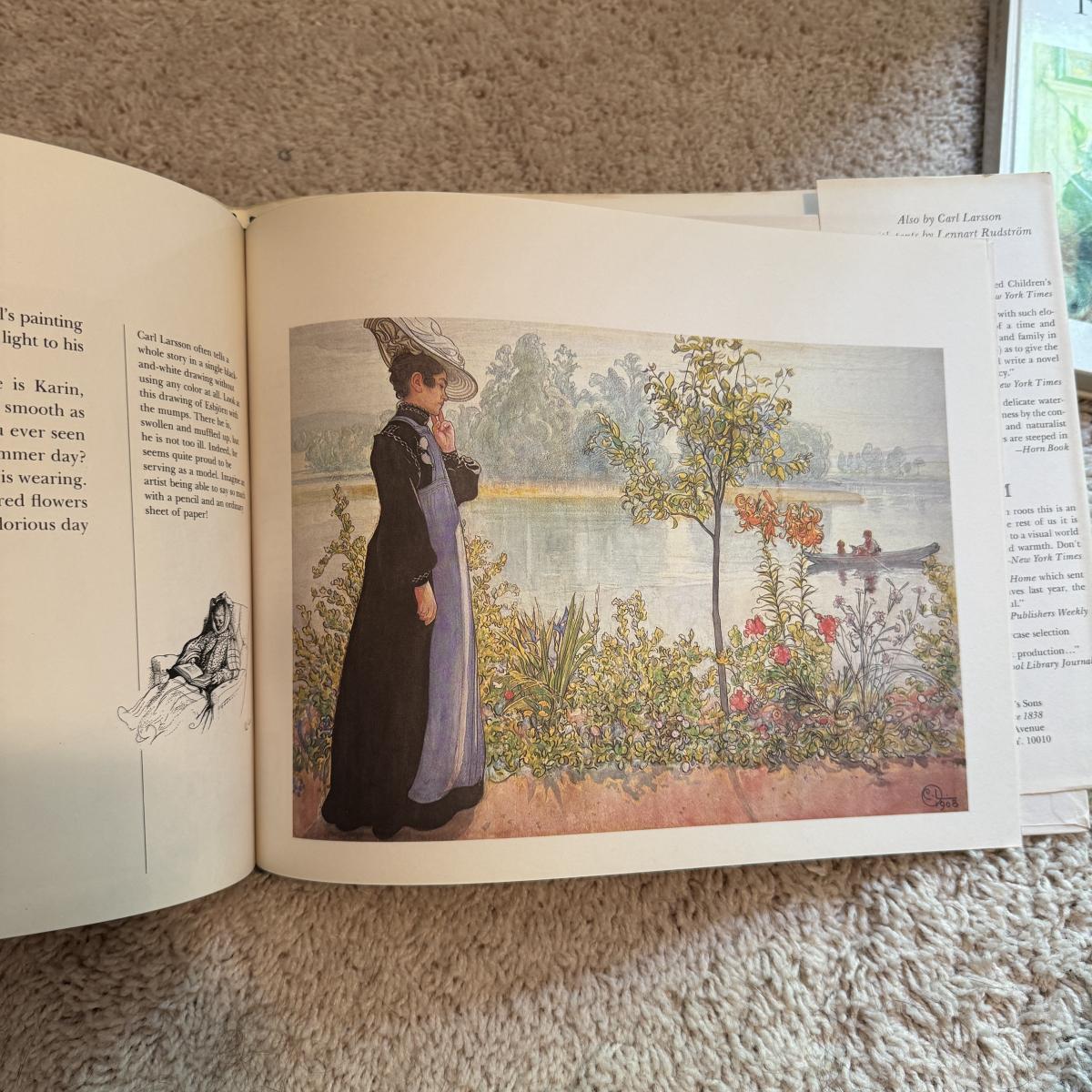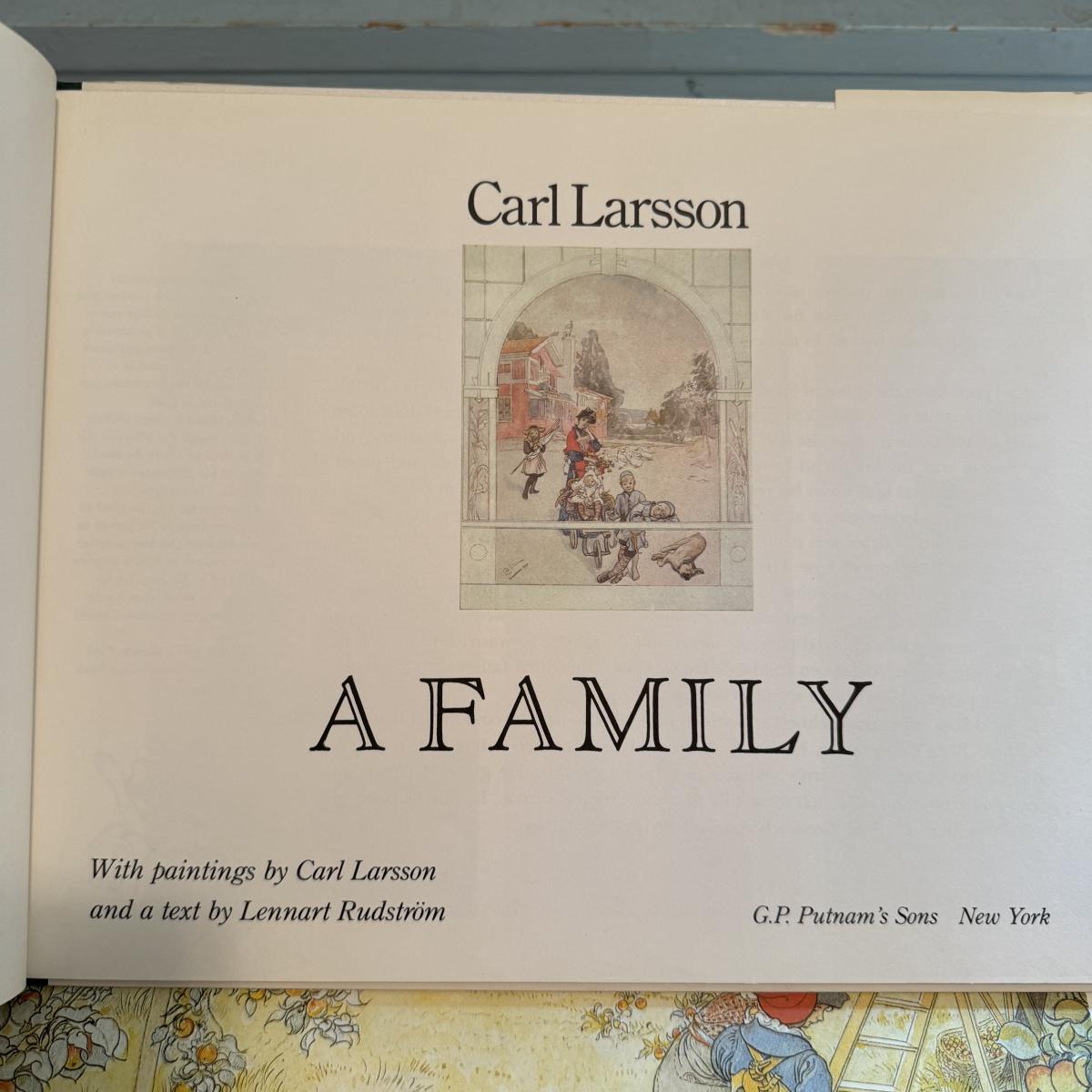 Four hardcover books of paintings by Carl Larsson. A trilogy of books include his watercolors with text by Lennart Rudström. They include A Home, A Farm and A Family. The first two say they are First American editions 1974. Lot also includes a shiny hardcover of The World of Carl Larsson. All books have beautiful color pictures.. Shipping available