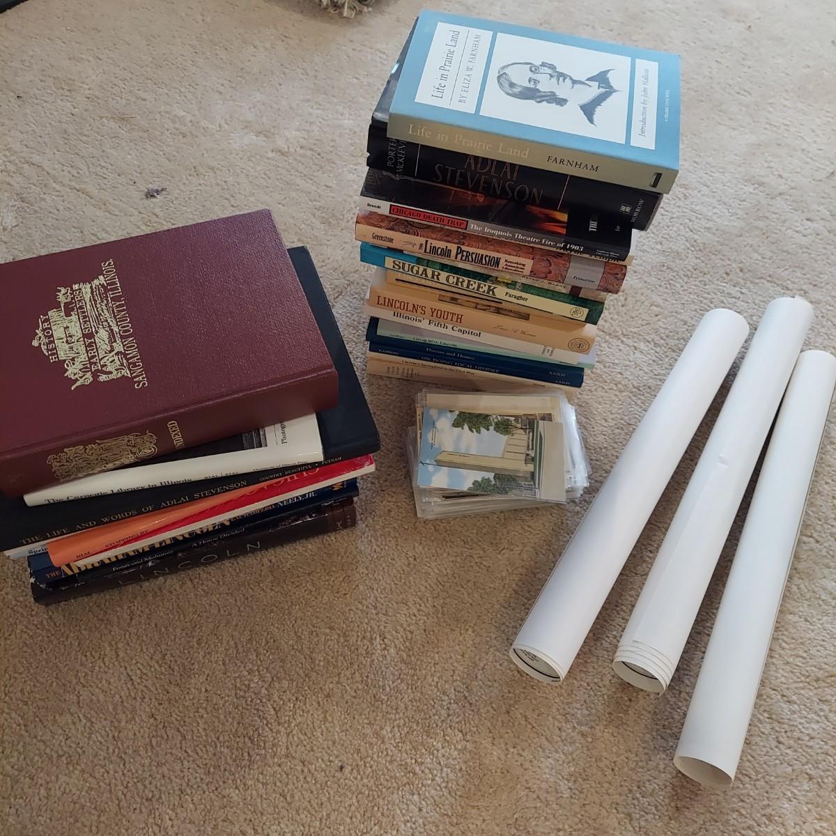 Several paperback and hardback books about Abraham Lincoln and his time in Illinois. Plus other books about areas of the state of Illinois and their history. There are 25+ books with several maps and postcards as well. Please see photos for details. Local Pickup Only.