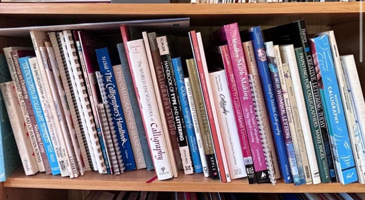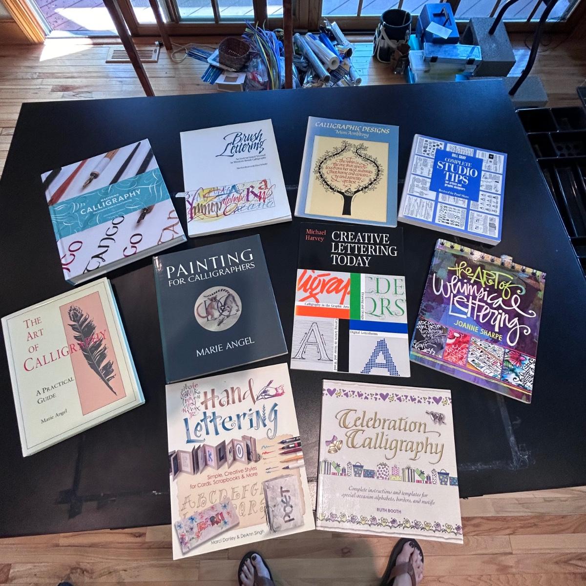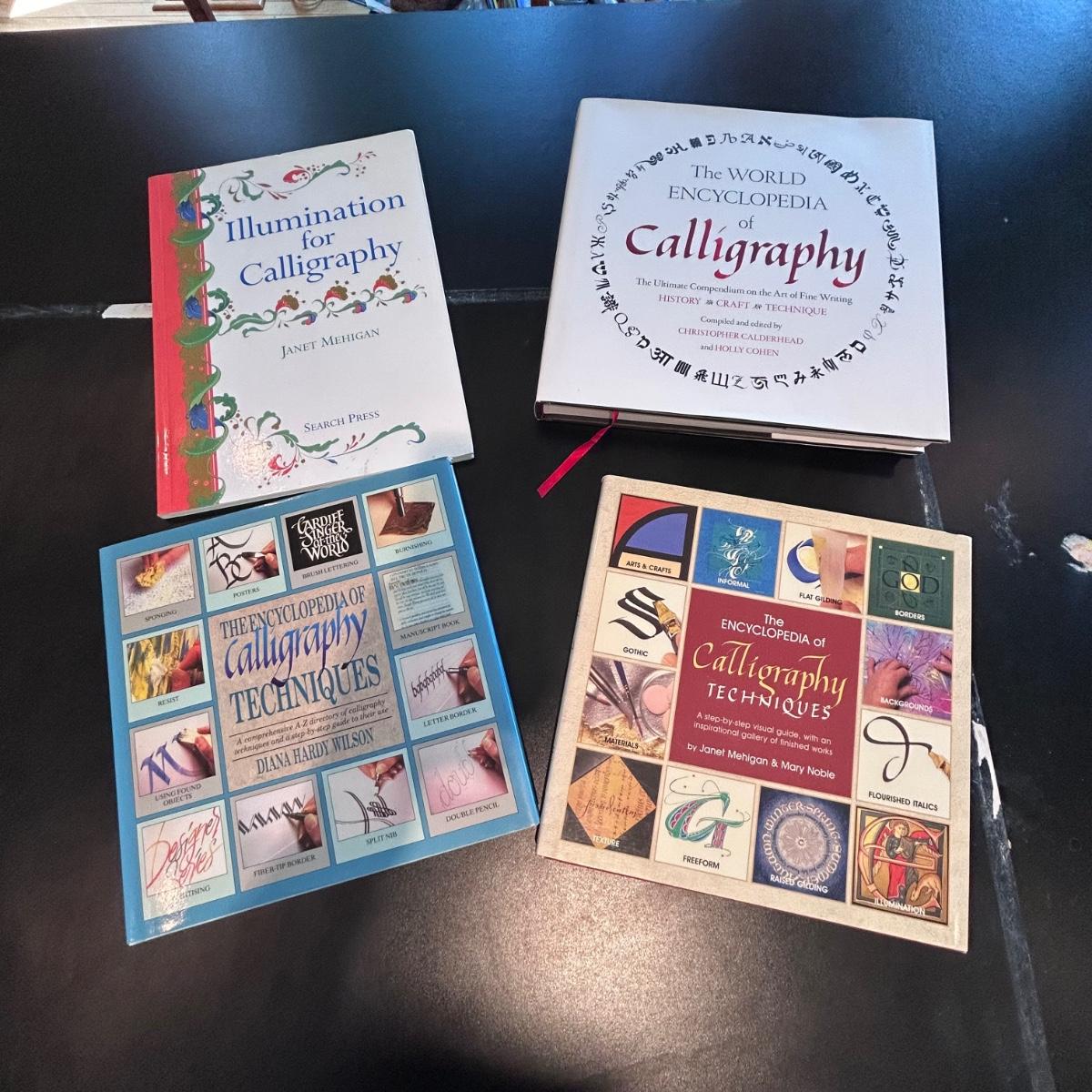 Lot contains over 30 books on calligraphy from ‘how to’ to styles. There are small manual type books and hard back beautifully illustrated books. Shipping available.