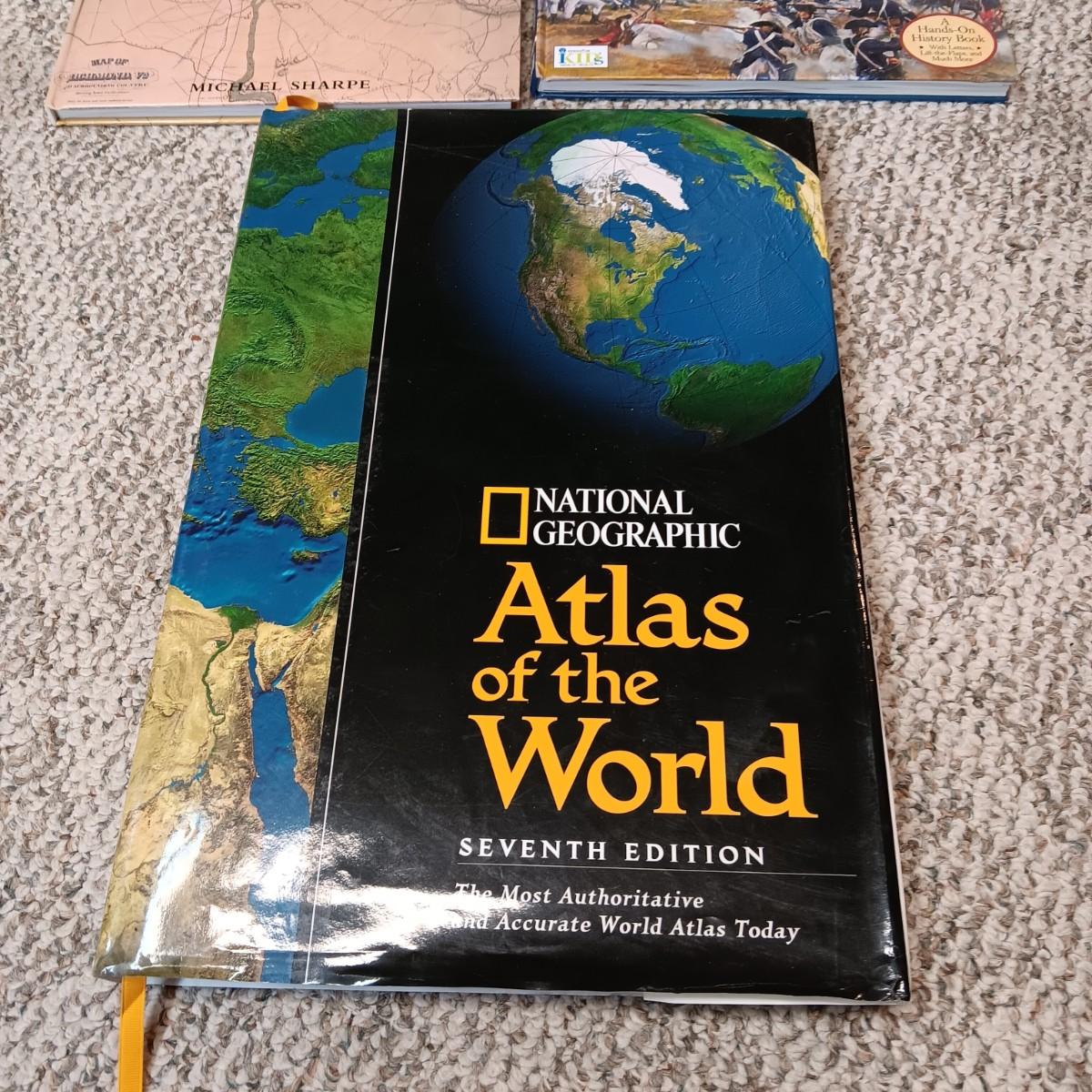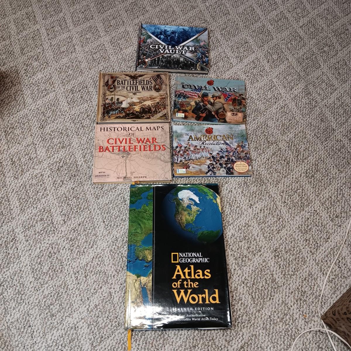 BOOKS ON CIVIL WAR AND A HUGE HARDBACK ATLAS OF THE WORLD