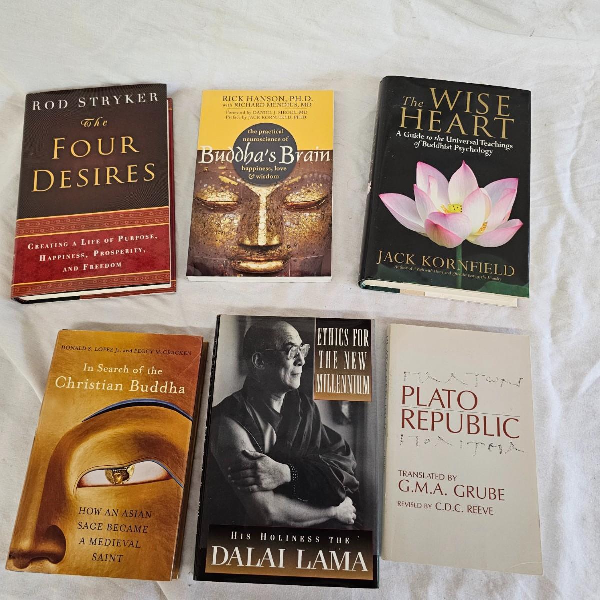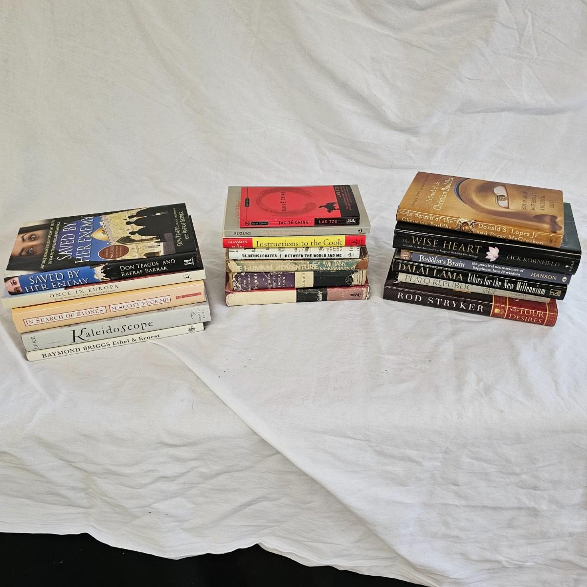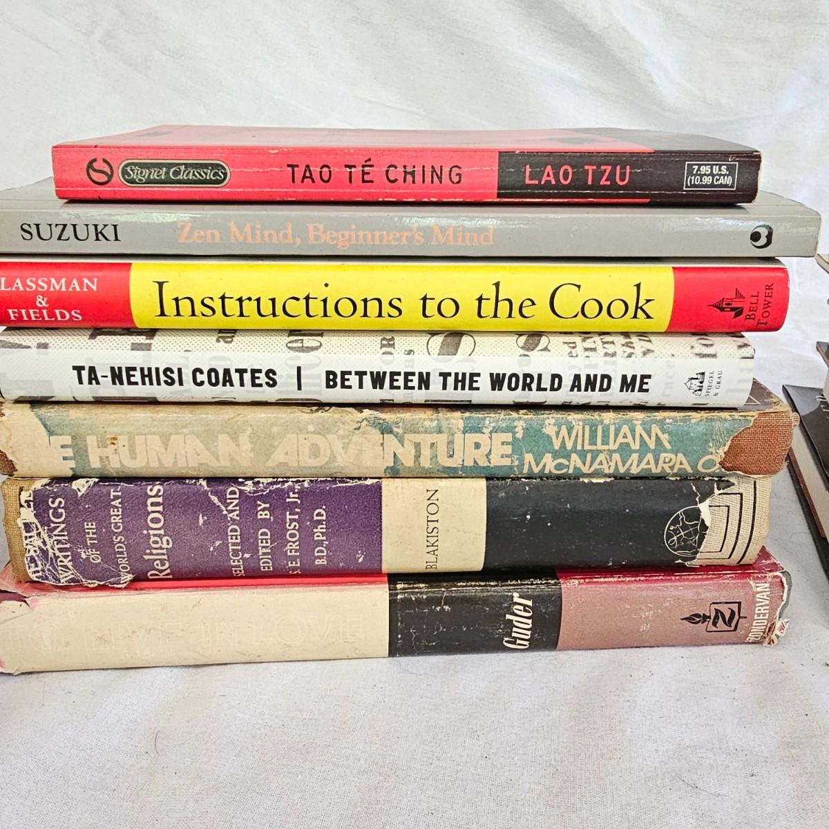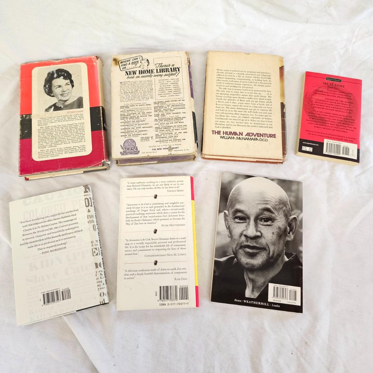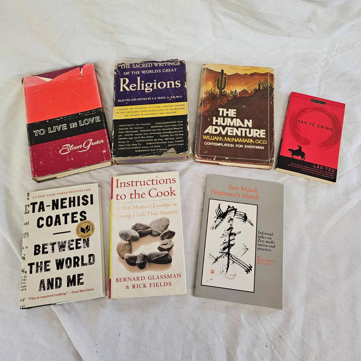 An assortment of books for study and contemplation, discussing Buddhism, Zen, women and faith. Eighteen titles to peruse. See photos for details. Shipping available.
