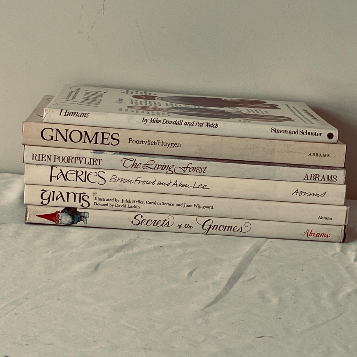 This collection of six books on mythical and other creatures includes books on Faeries, giants, gnomes and humans. Books measure 8.5” x 12.5”H.