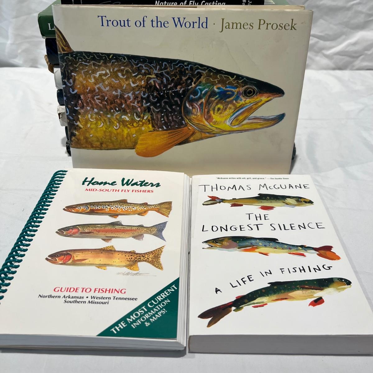 From techniques to destination guides, these 14 books offer it all. See images for all titles. Also includes a vintage Sears Belmont bait caster with engravings on the reel. It measures approximately 4" x 2.5".