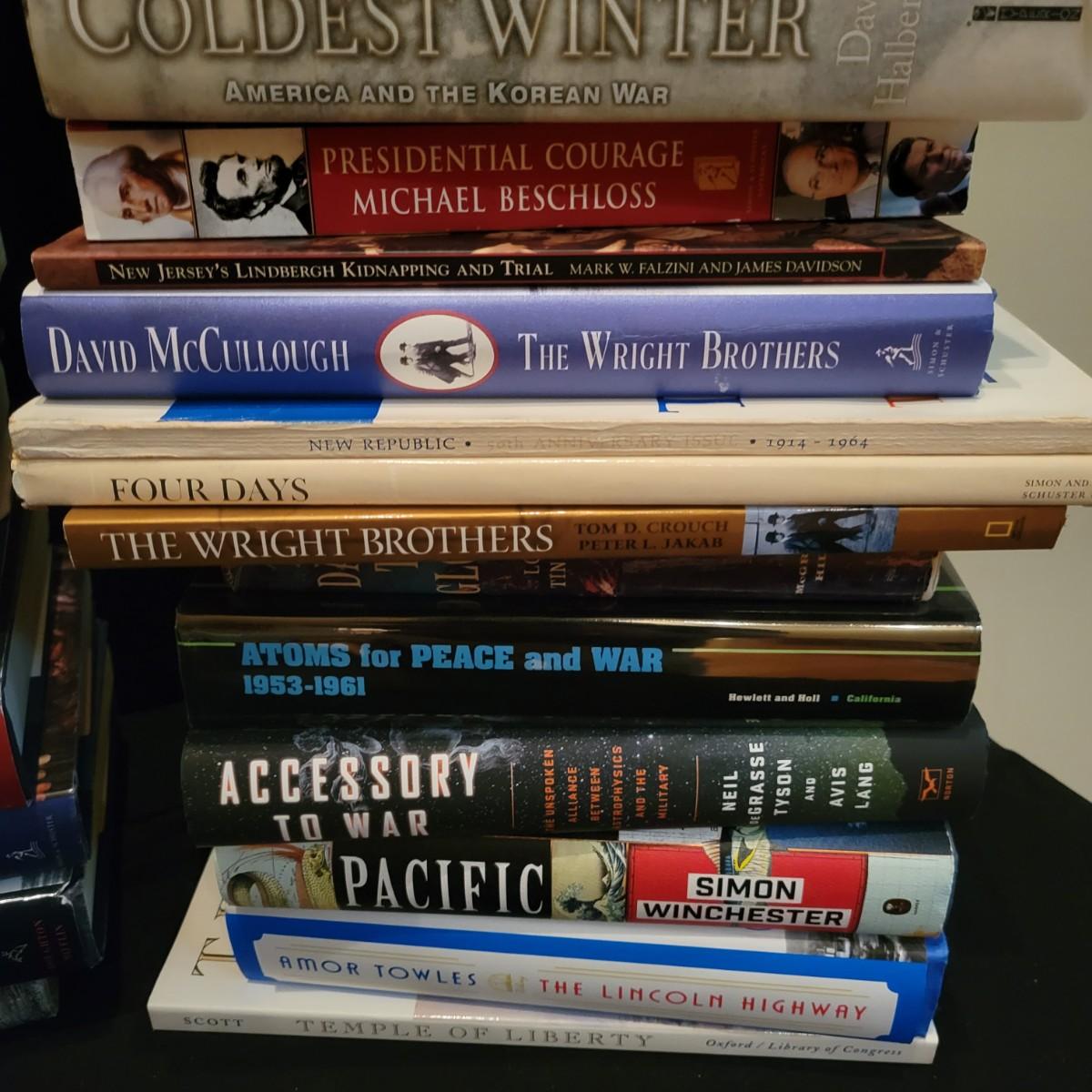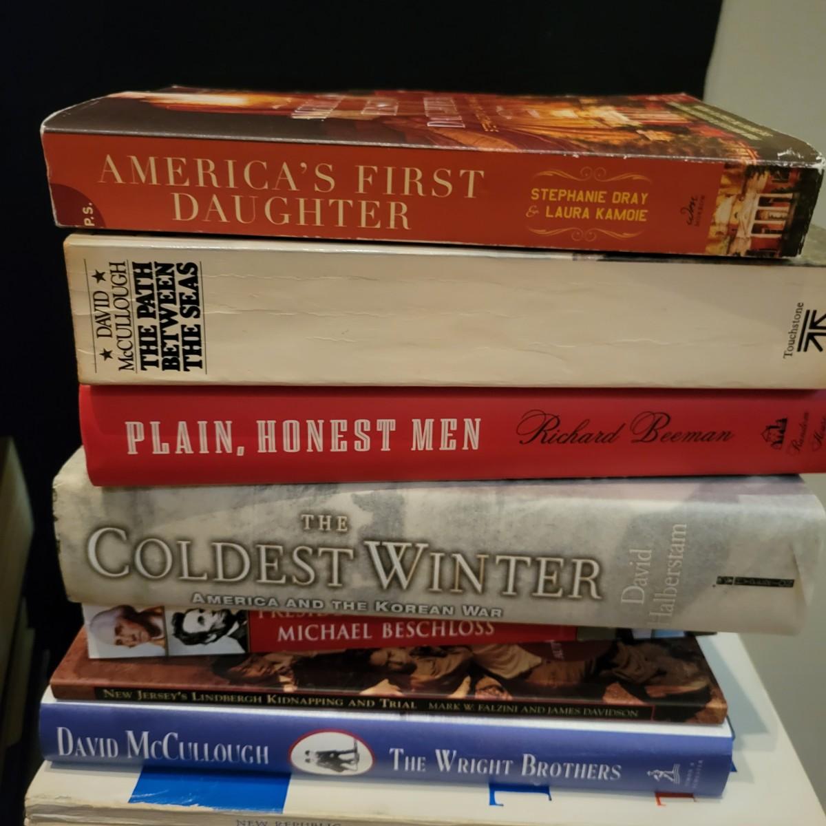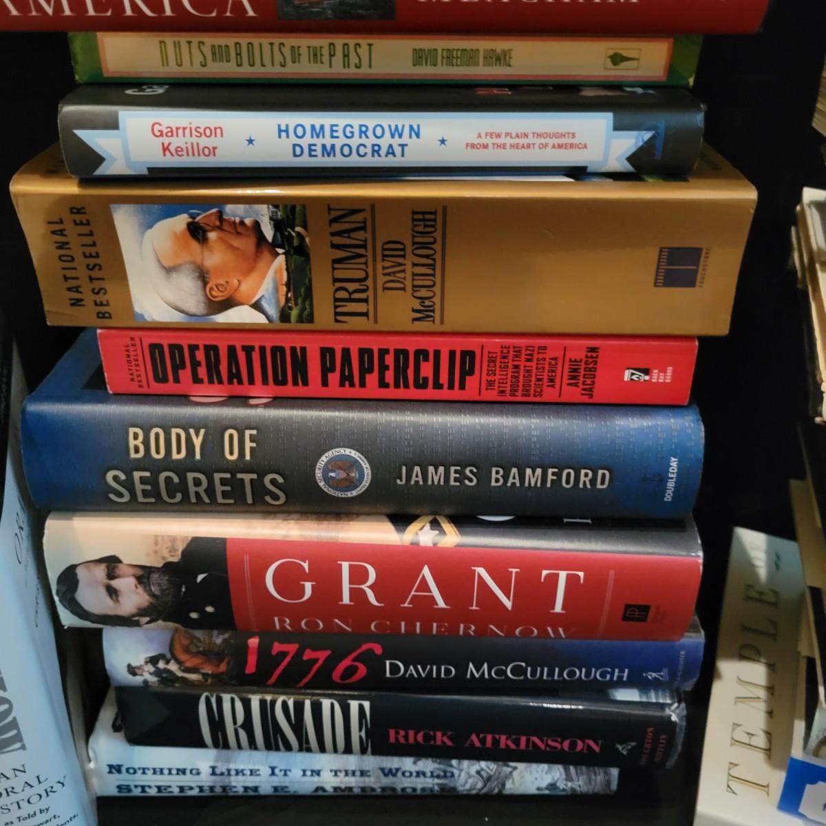 Over 45 books covering a wide range of topics about US history. Authors include Stephen Ambrose, David McCullough, Alexander Rose and more. This lot also includes a Betsy Ross flag made of heavy cloth with the original circular design of the 13 colonies. Flag measures approximately 56" x 30". Local pickup only.