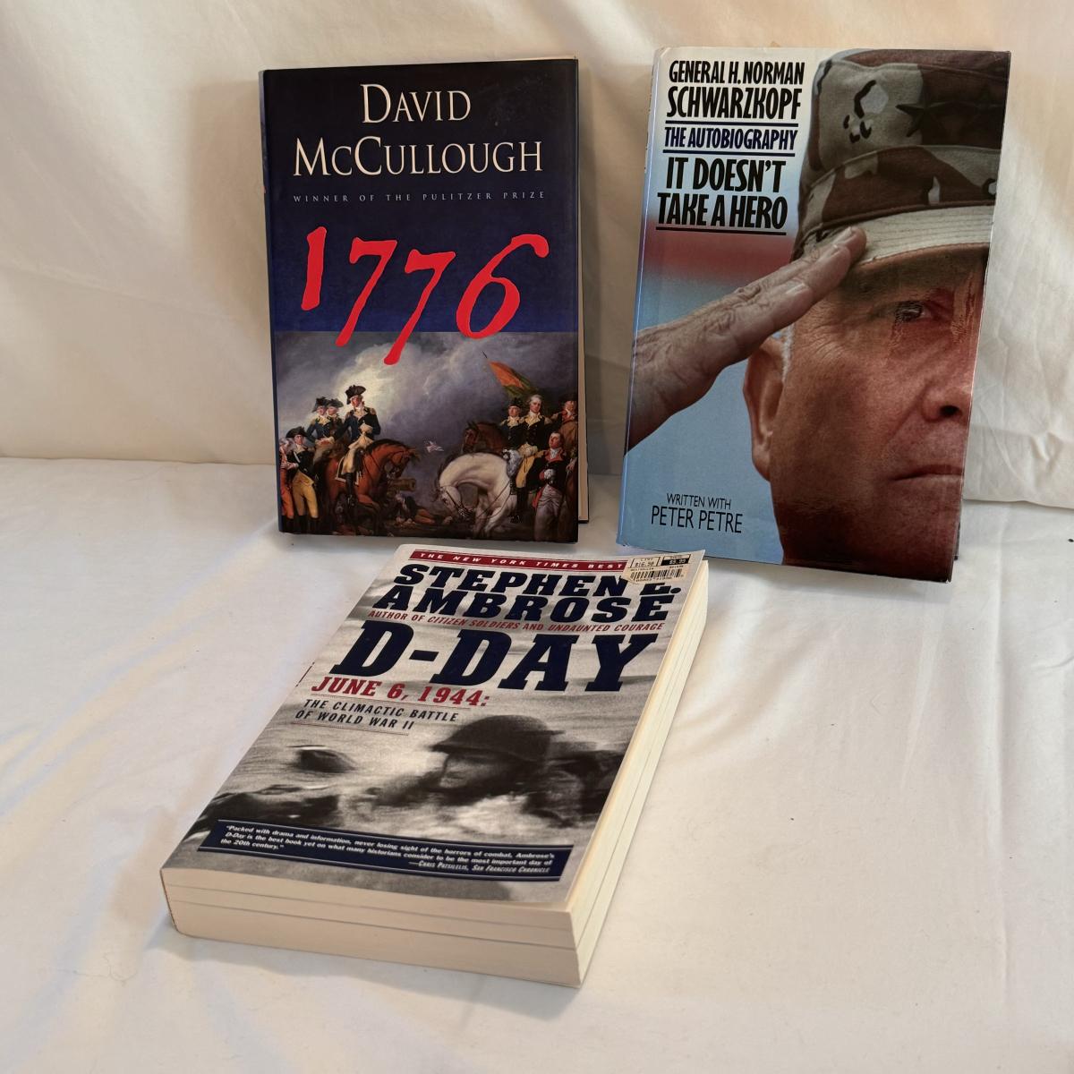 This lot of seven books includes The Passing by Ferrol Sams, The Torch is Passed, The American Nation by Hicks, The Development of Western Civilization by Haines and Walsh, 1776 by David McCullough, an autobiography on General H. Norman Schwarzkopf, and D-Day by Stephen E. Ambrose. Shipping available.