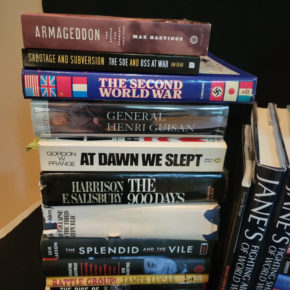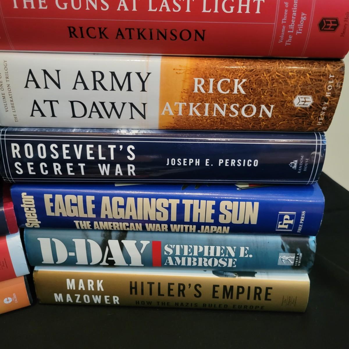 An extensive collection of books covering varying parts of WWII. Authors include Max Hastings, Rick Atkinson, Stephen Ambrose and more. There are over 40 books in this lot. Local pickup only