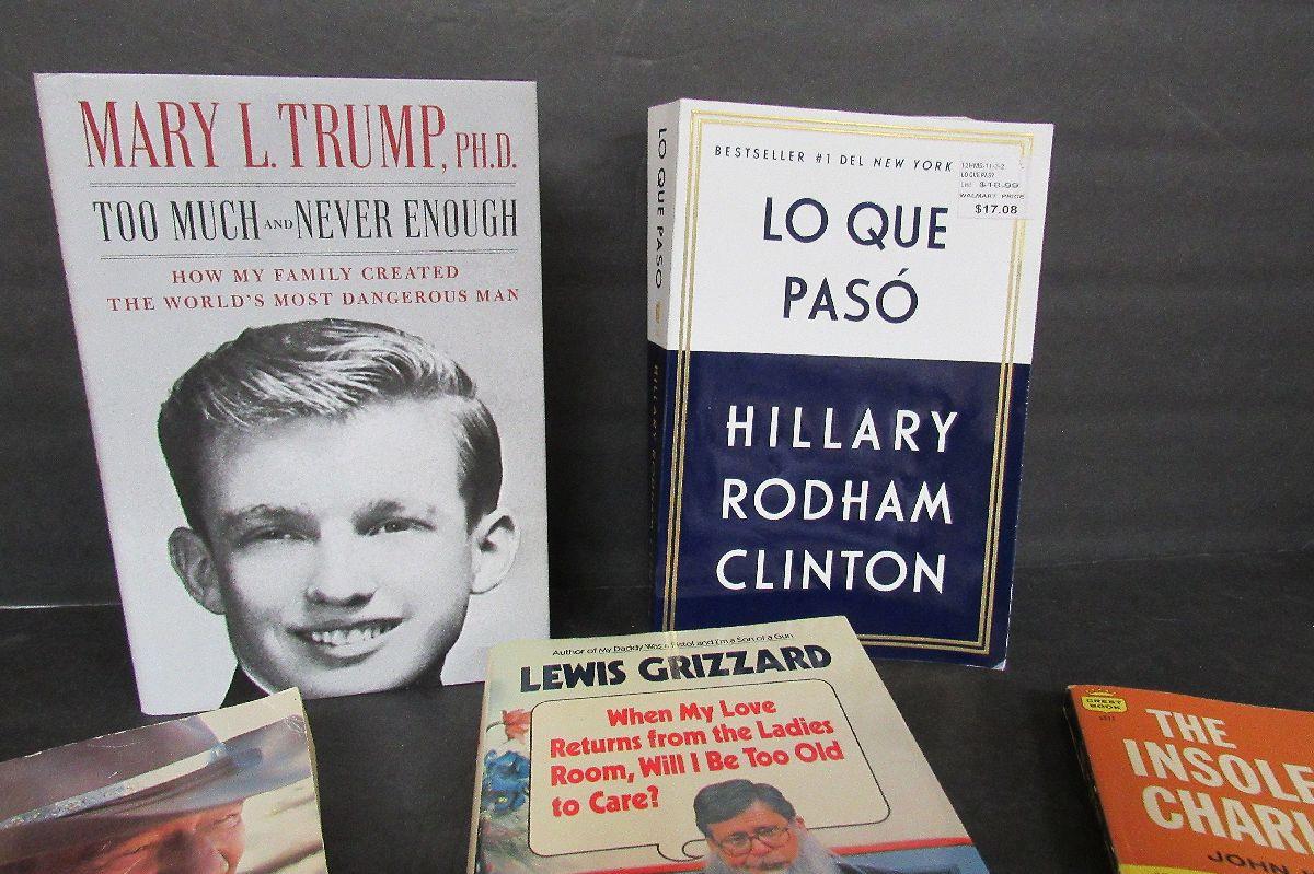 Good shape. Too much, Never Enough is in very good shape. Clinton book is in Spanish. Shipping is available at shipping cost plus $5.00 handling fee on one box, $10.00 handling fee on two boxes, $15.00 handling fee on 3 boxes. Helps cover shipping materials and labor cost.