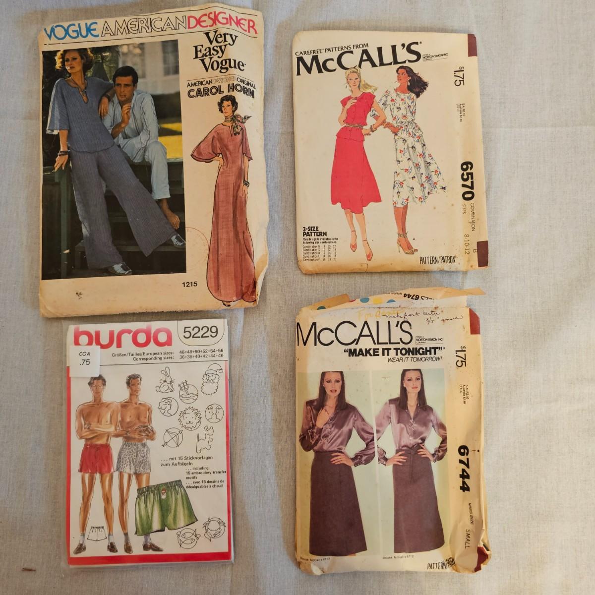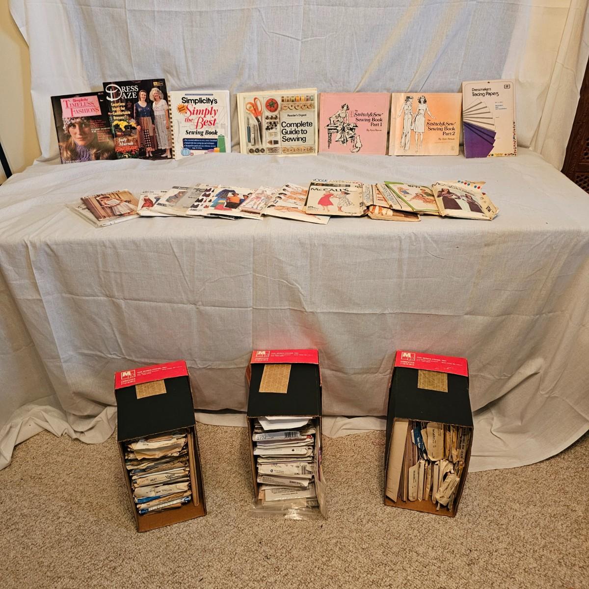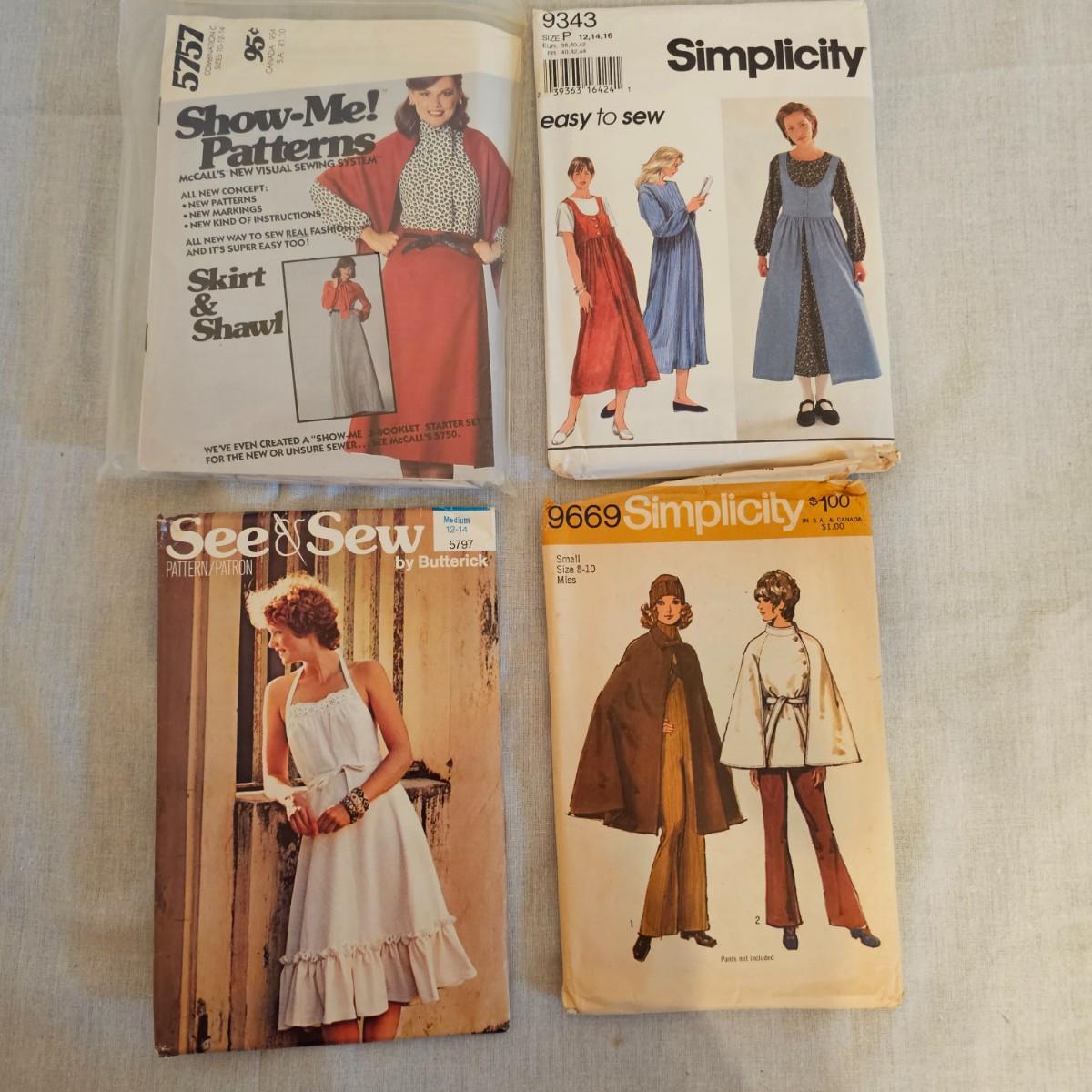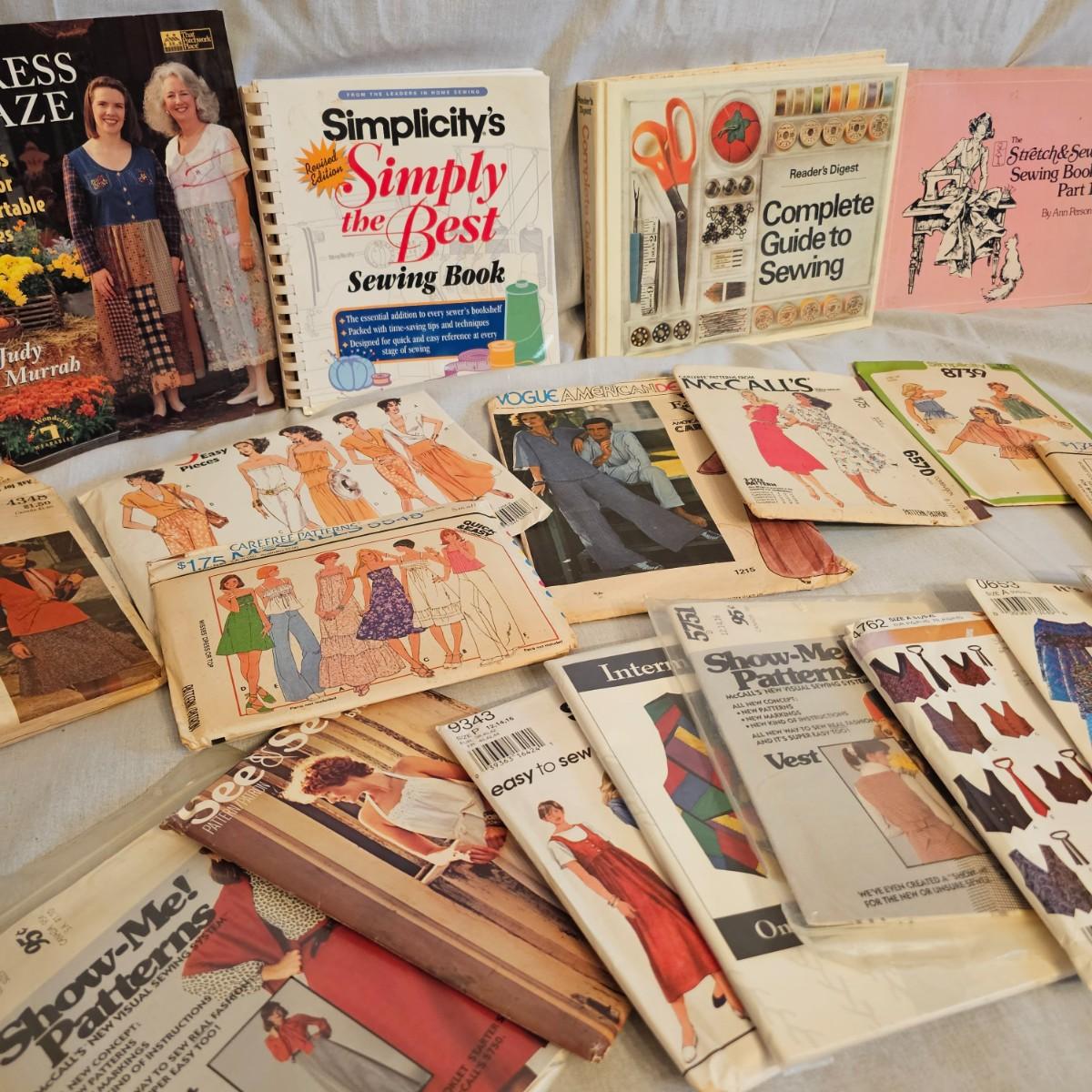 They say old styles eventually come around again. Well, you can be ready with this huge collection of vintage sewing patterns from the 70's and 80's and more. Simplicity, Buttrick, McCalls and others. Dresses, coats, shirts, skirts, men, women and some kids. Over 120 patterns. Some duplication and no guarantee that all packages are complete. A Simplicity set of Stretch & Sew books and patterns to match. A Readers Digest book on complete sewing. Something for everyone. See photos for details. Shipping available.