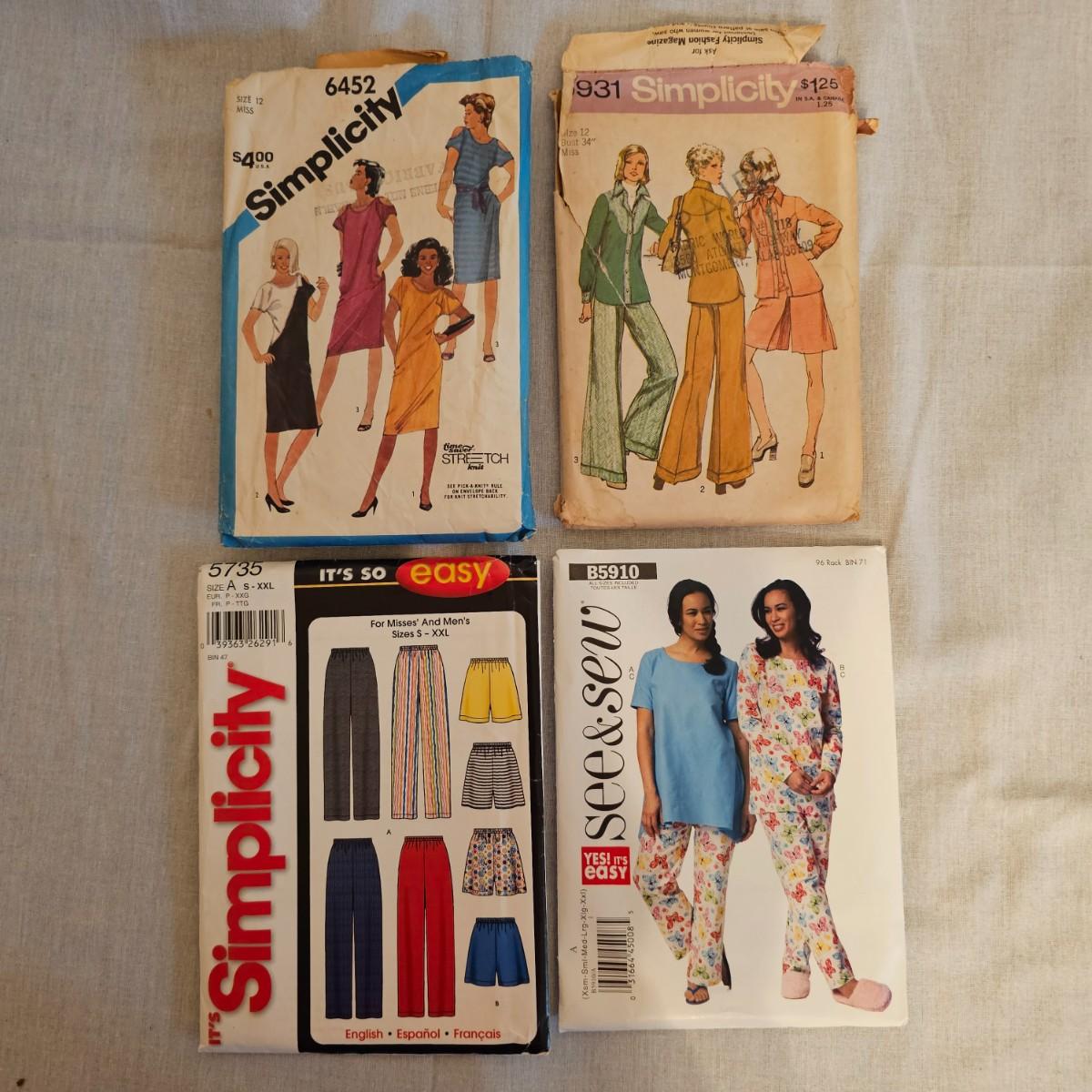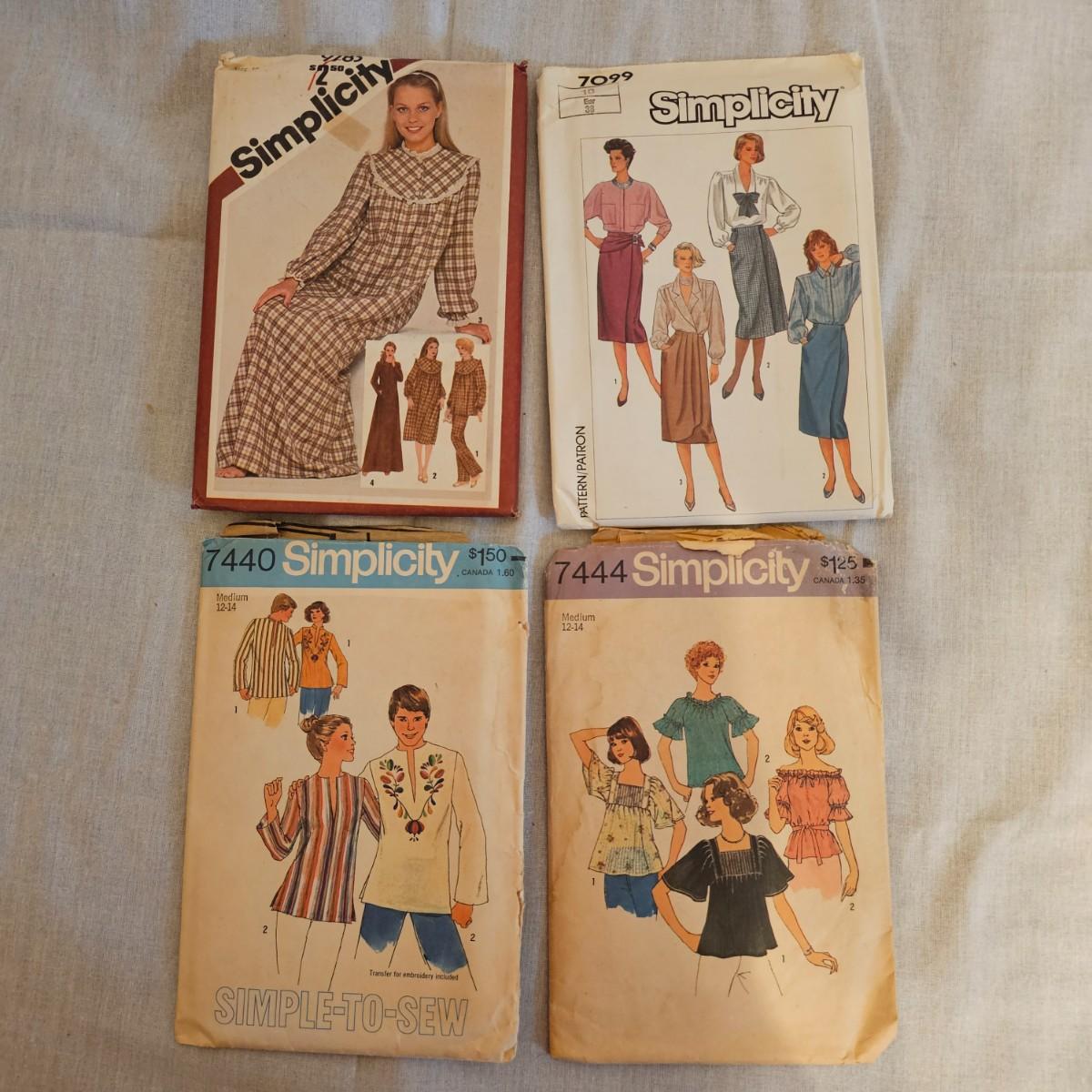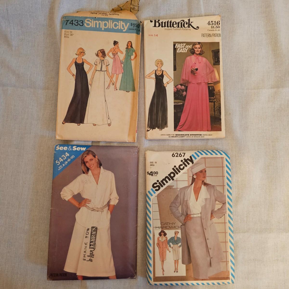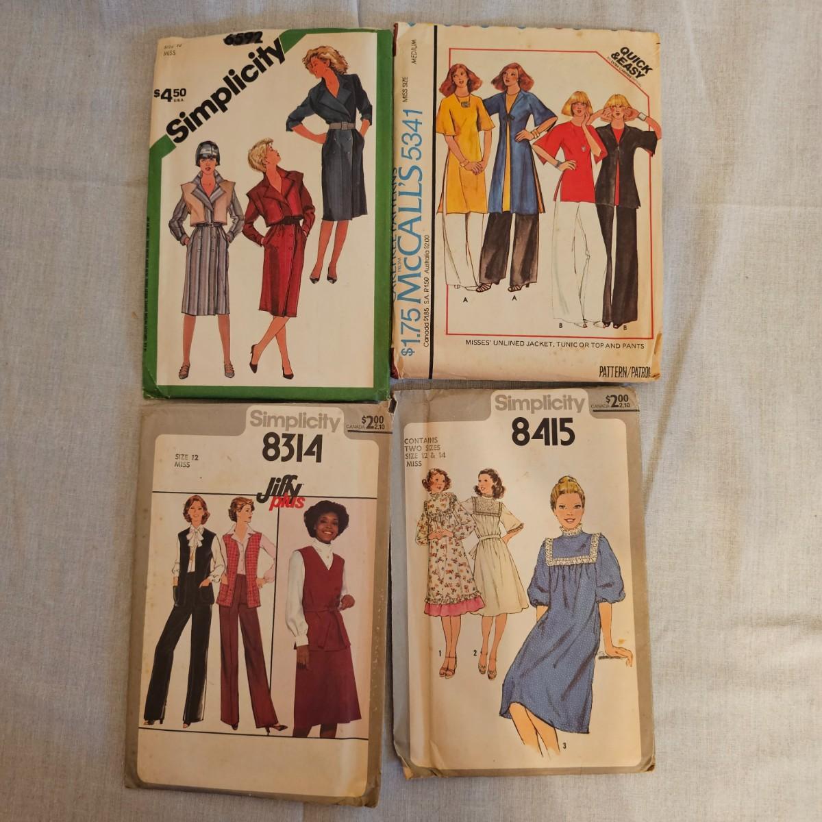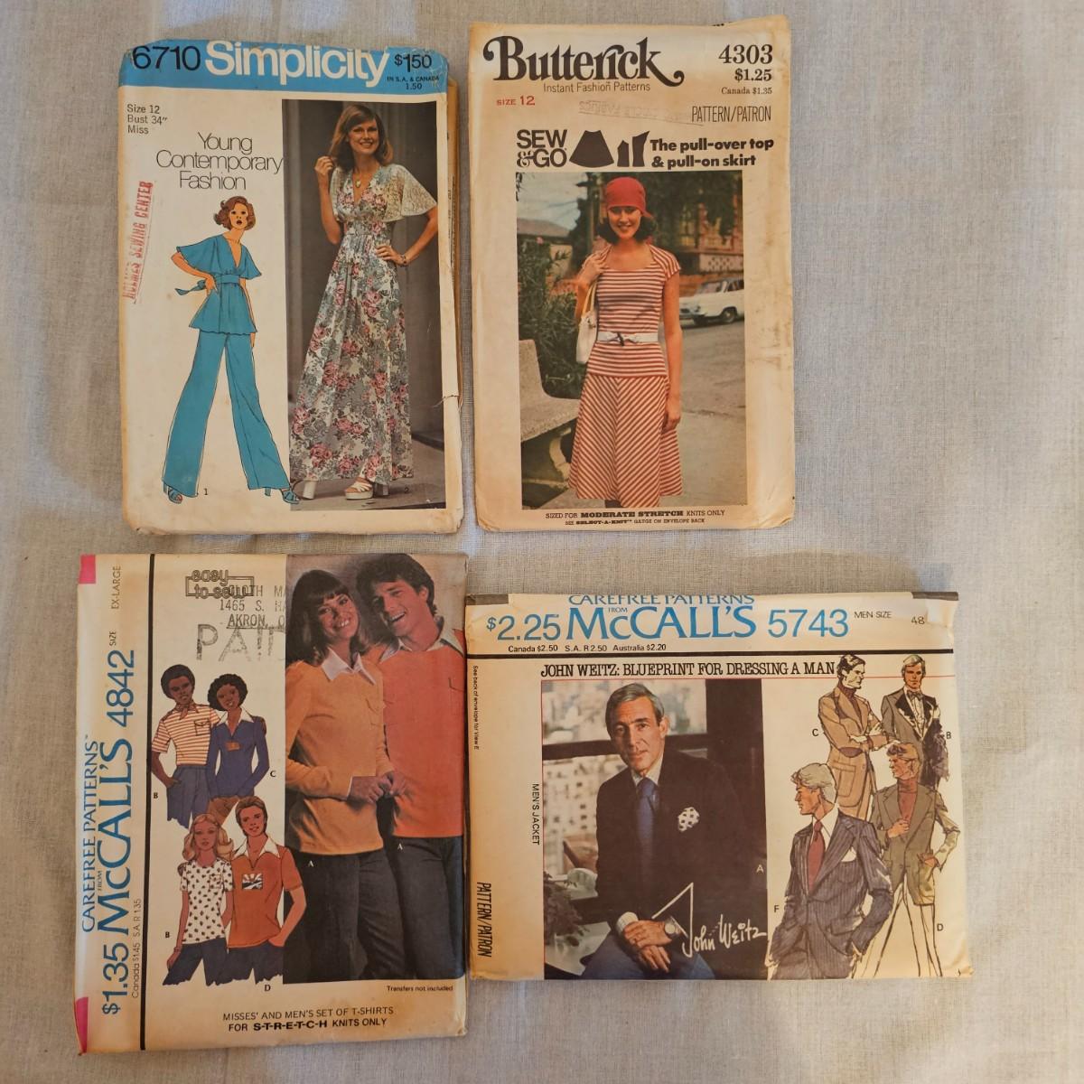 They say old styles eventually come around again. Well, you can be ready with this huge collection of vintage sewing patterns from the 70's and 80's and more. Simplicity, Buttrick, McCalls and others. Dresses, coats, shirts, skirts, men, women and some kids. Over 120 patterns. Some duplication and no guarantee that all packages are complete. A Simplicity set of Stretch & Sew books and patterns to match. A Readers Digest book on complete sewing. Something for everyone. See photos for details. Shipping available.