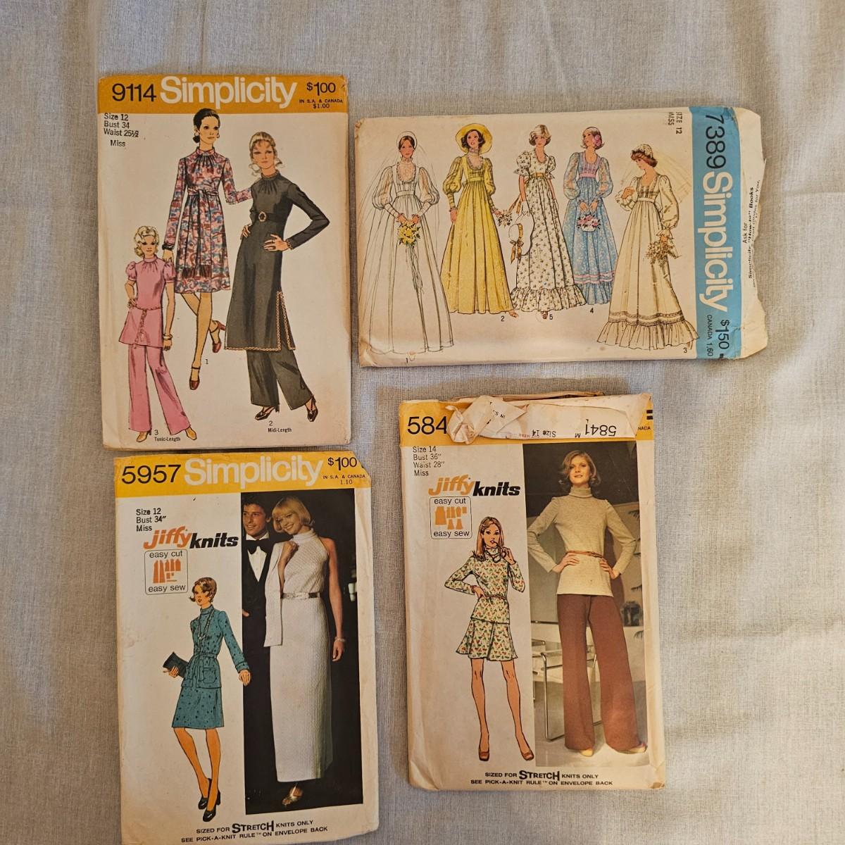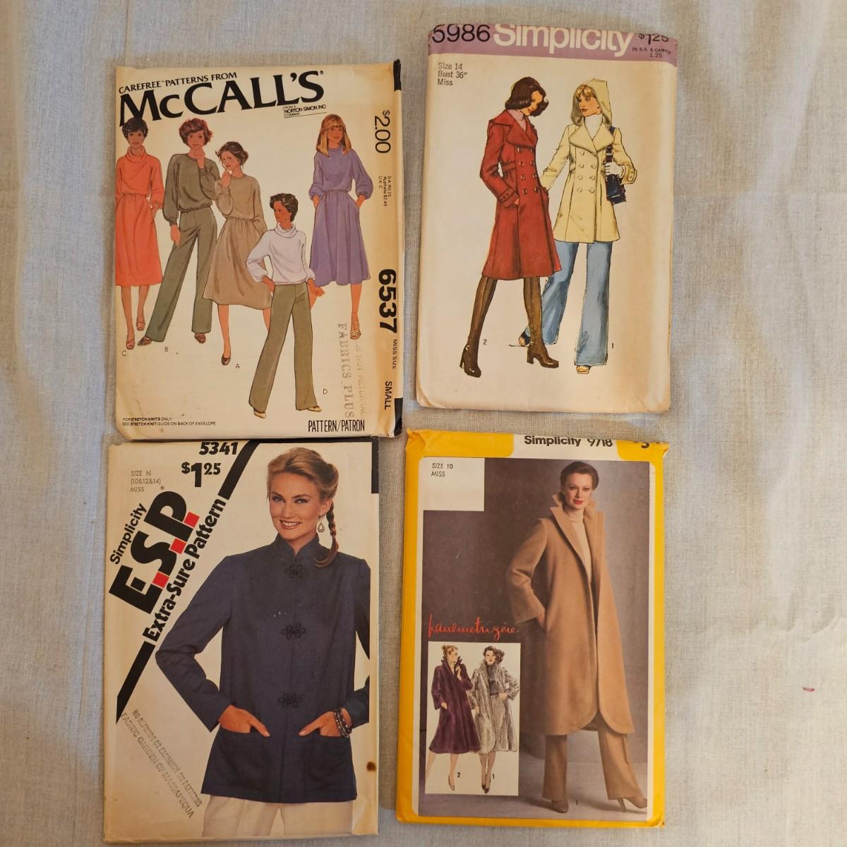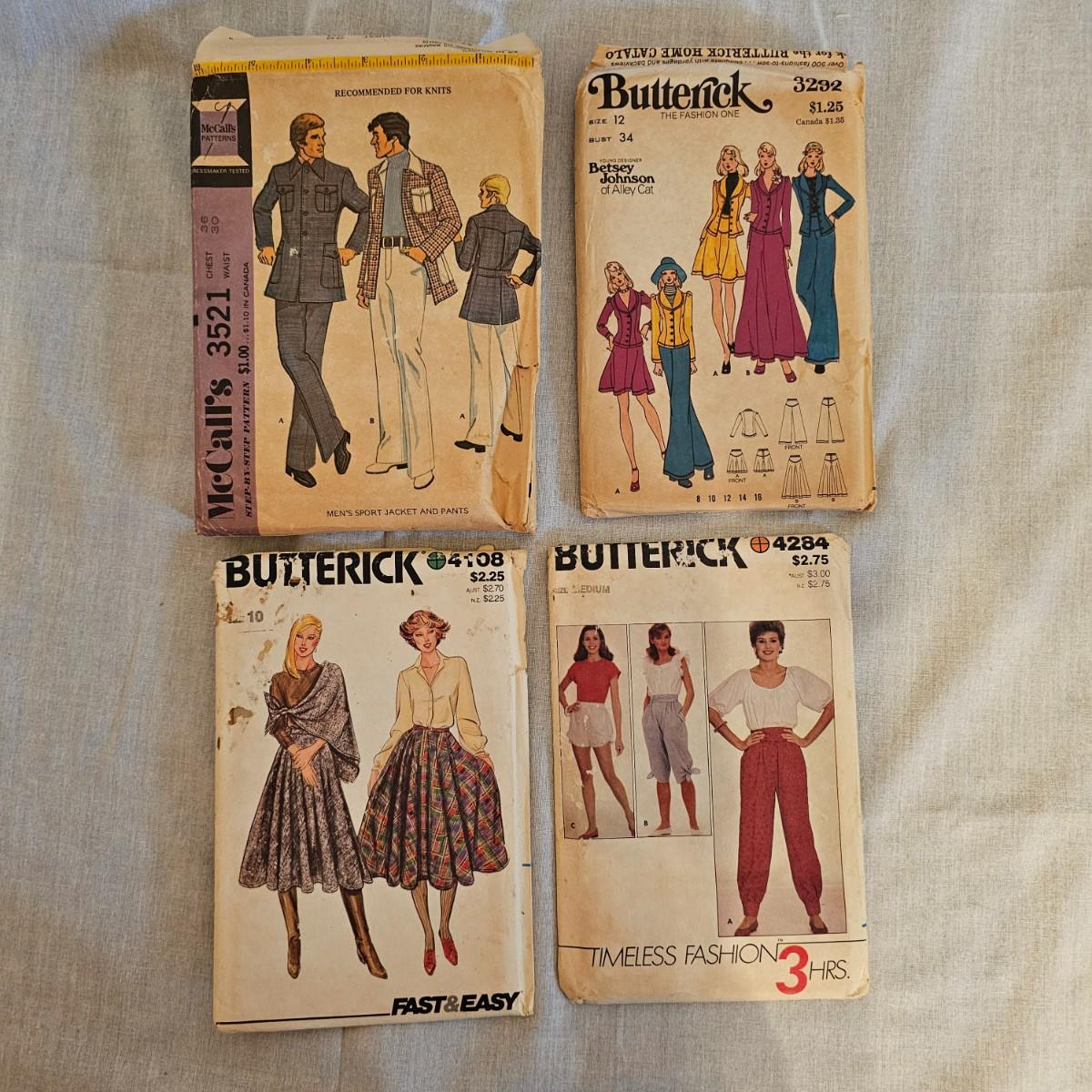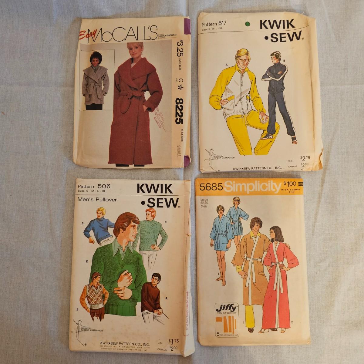 They say old styles eventually come around again. Well, you can be ready with this huge collection of vintage sewing patterns from the 70's and 80's and more. Simplicity, Buttrick, McCalls and others. Dresses, coats, shirts, skirts, men, women and some kids. Over 120 patterns. Some duplication and no guarantee that all packages are complete. A Simplicity set of Stretch & Sew books and patterns to match. A Readers Digest book on complete sewing. Something for everyone. See photos for details. Shipping available.
