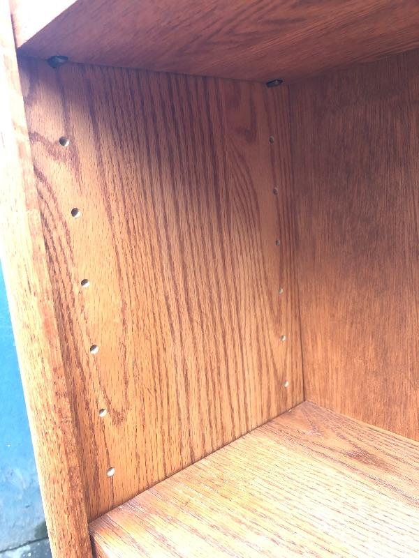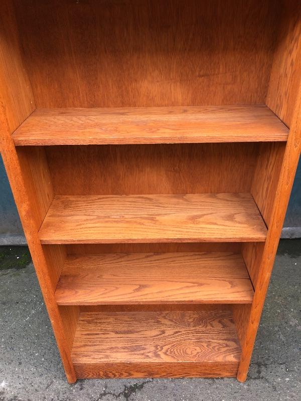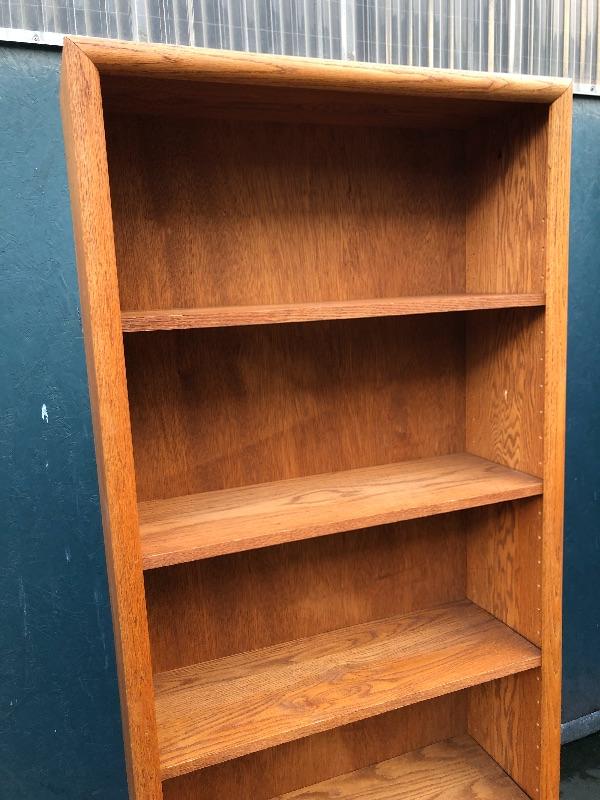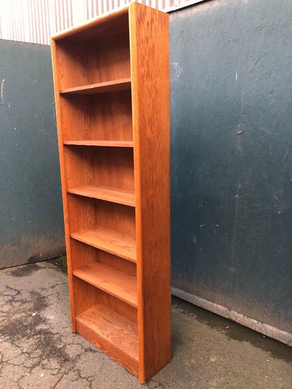 Nice, solid bookcase! Includes 5 adjustable height shelves. Dimensions are 31”L x 11”W x 84.5”H