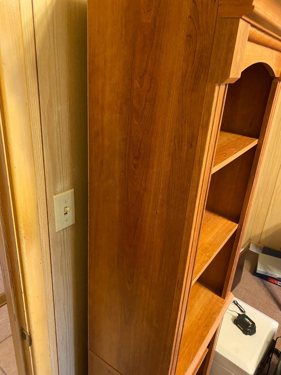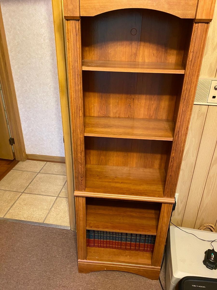 Bookshelf w/5 shelves, 3 adjustable. Approx 72”h x 23-1/2”w x 12”d. NOT all wood. In excellent condition.