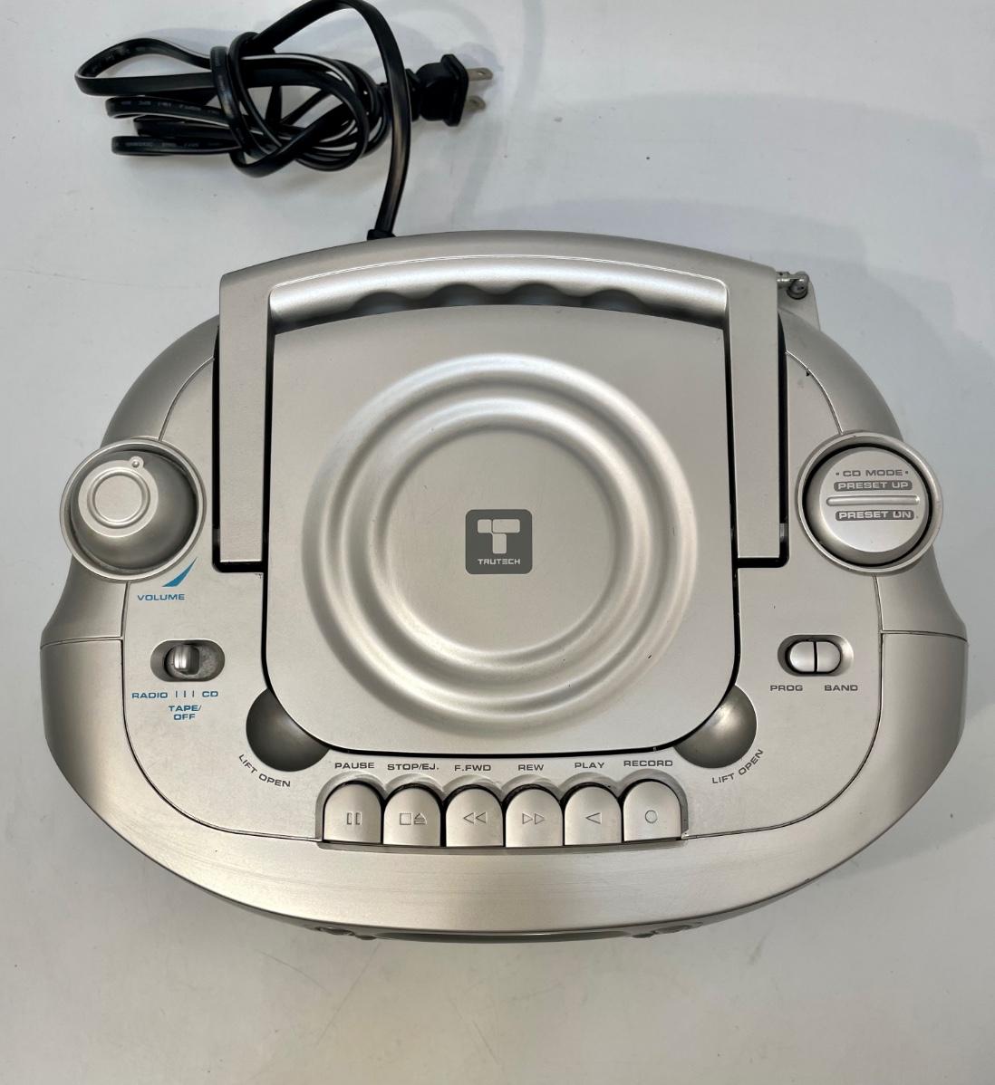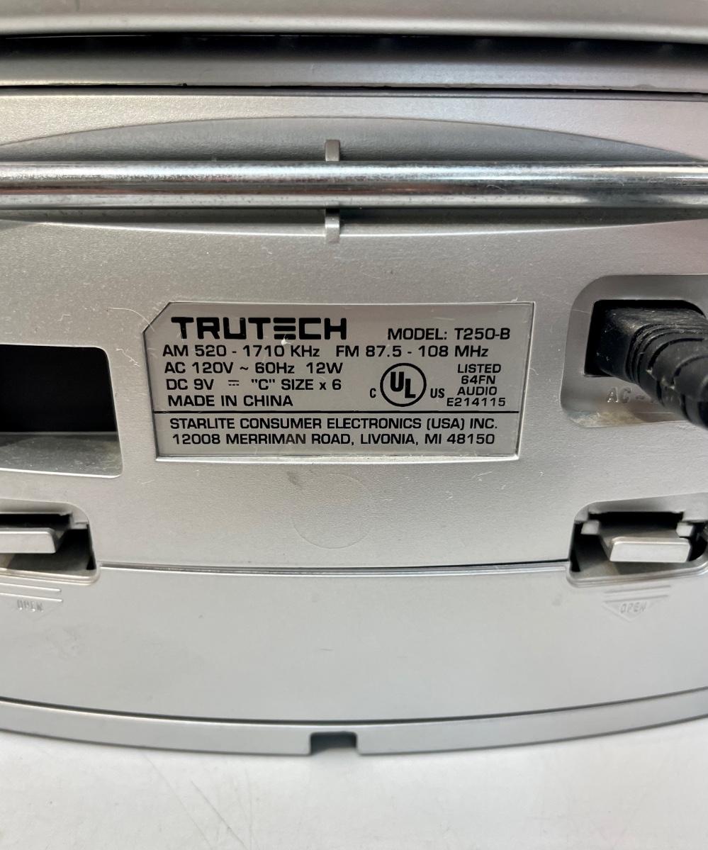 TruTech BoomBox AM-FM-CD and Cassette Player Model T250-B. Tested radio and CD function, both worked as expected.