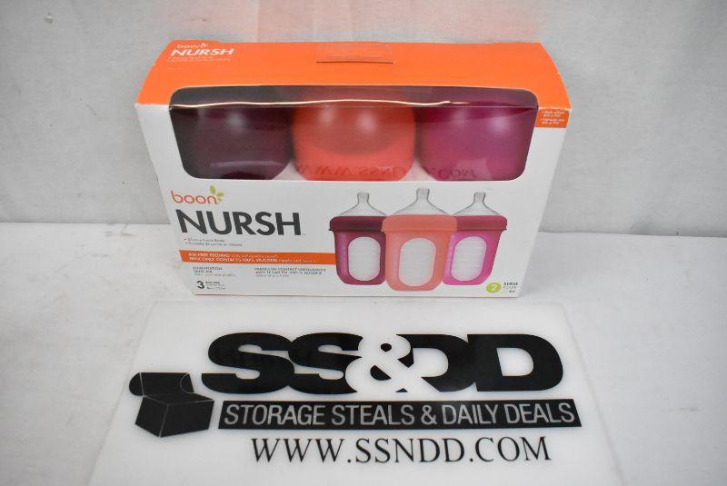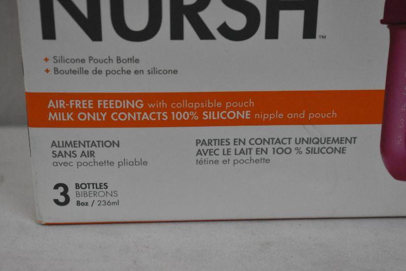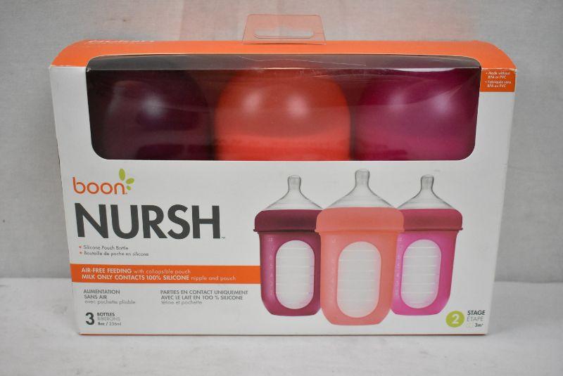 Boon Nursh Reusable Silicone Pouch Baby Bottle, Pink Multi Pack, 8 Oz 3 Pk - New