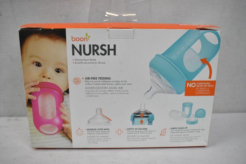 Boon Nursh Reusable Silicone Pouch Baby Bottle, Air-Free Feeding, Pink Multi Pack, 8 Oz, 3 Pk - New