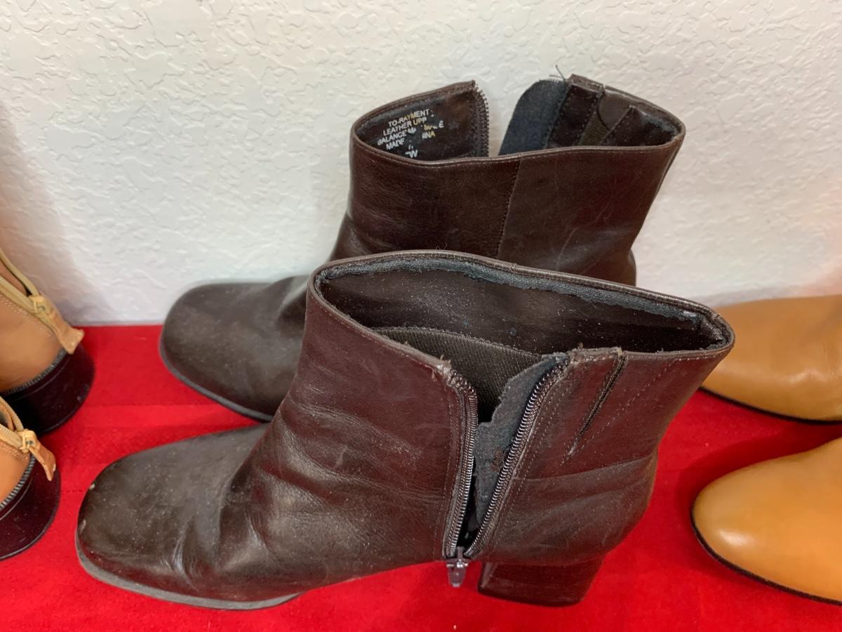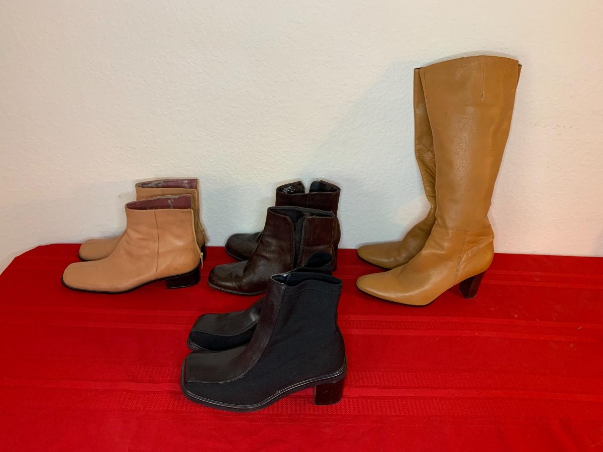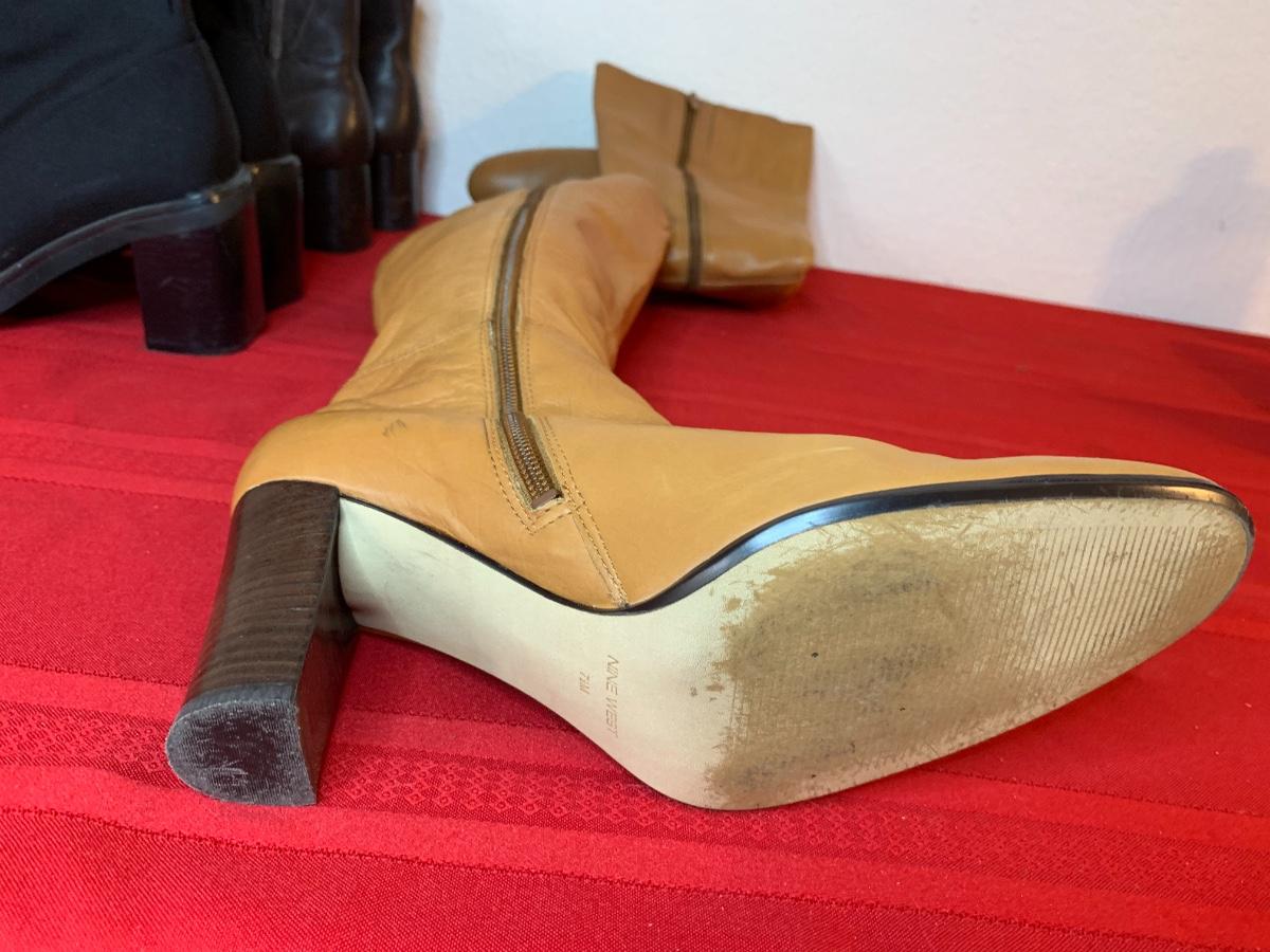 Nine West Tall Brown Leather Boots size 7.5. Other boots with names like easy spirit. Around the same size.