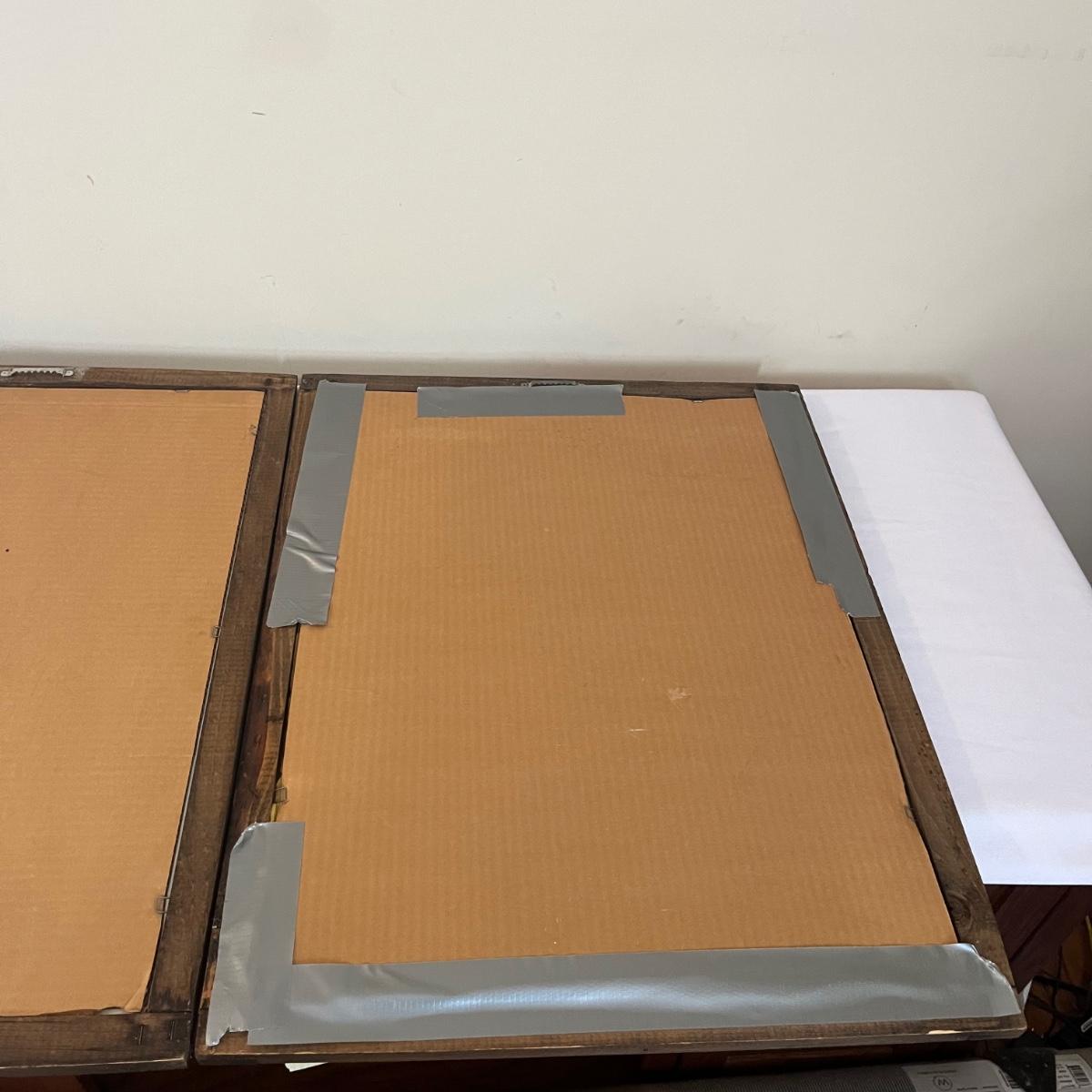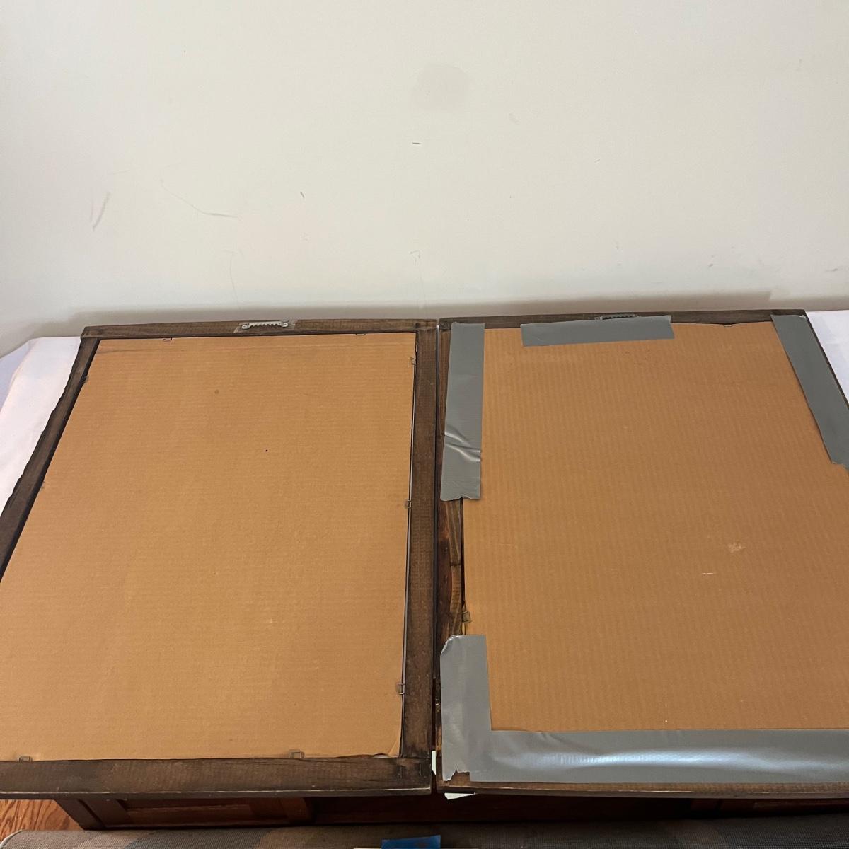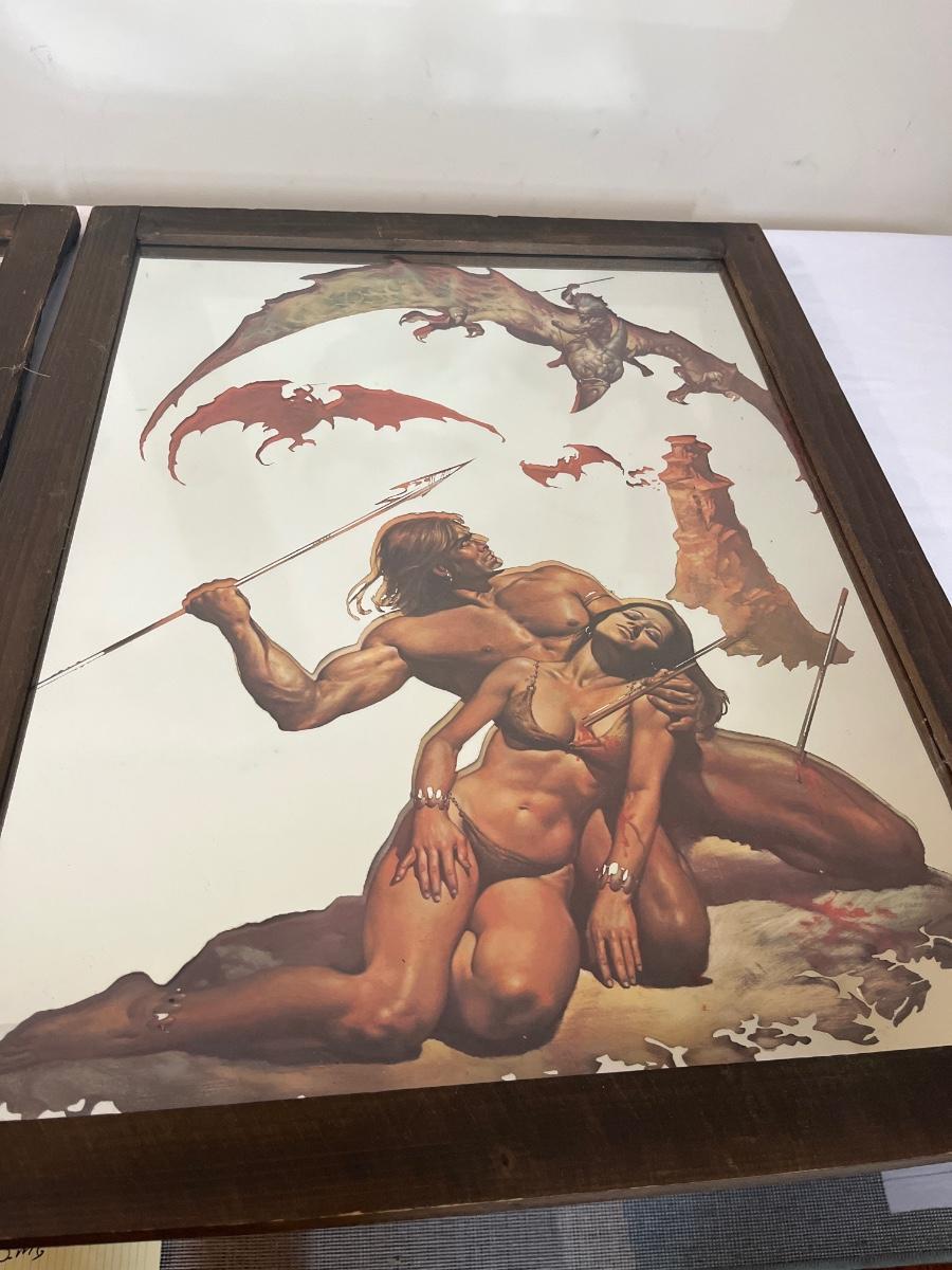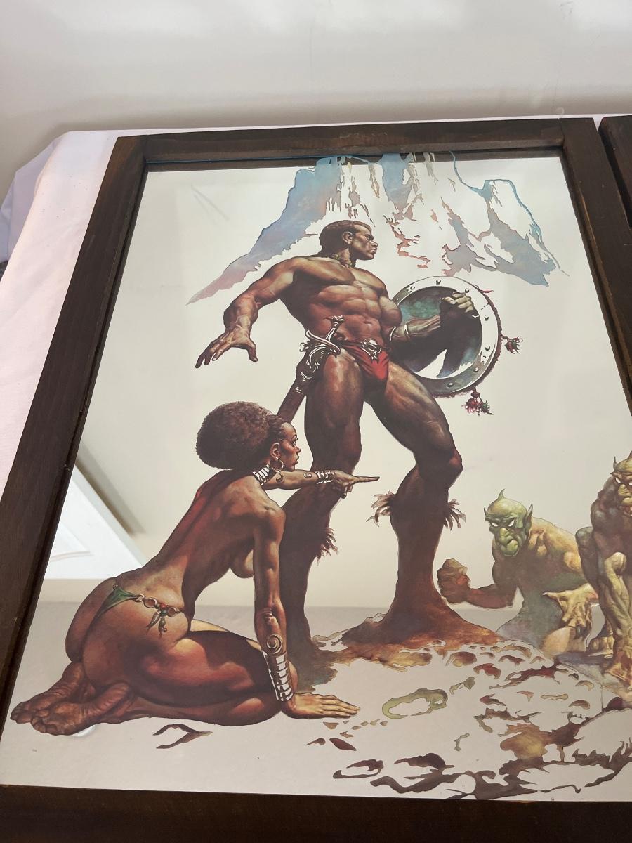 Lot includes two pieces of framed mirror art that appears to be by Boris Vallejo. One is titled Nubian Warriors and the other is titled Last Stand. Wooden Frames measure 20.5” x 26.5”. One frame has duct tape on back.