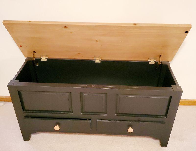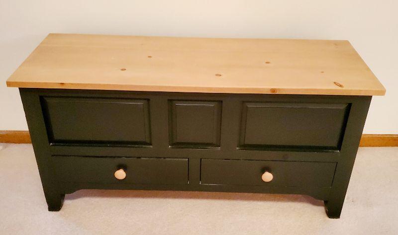 This Broyhill piece is super neat and has 2 drawers on the base and a lift up top! Some slight wear on the top (see pictures). Over all good condition 50 x 18 x 24.25