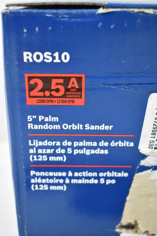 Bosch ROS10 5-Inch Palm-Grip Random Orbit Sander. Black Cover is Broken on the Back, $50 Retail - Works
