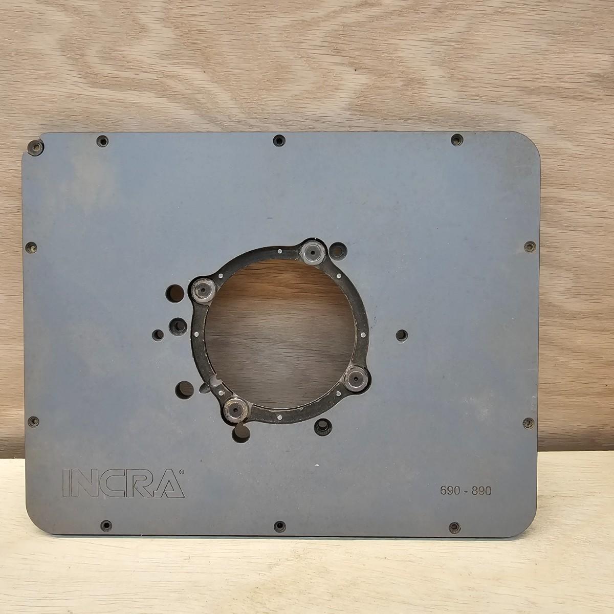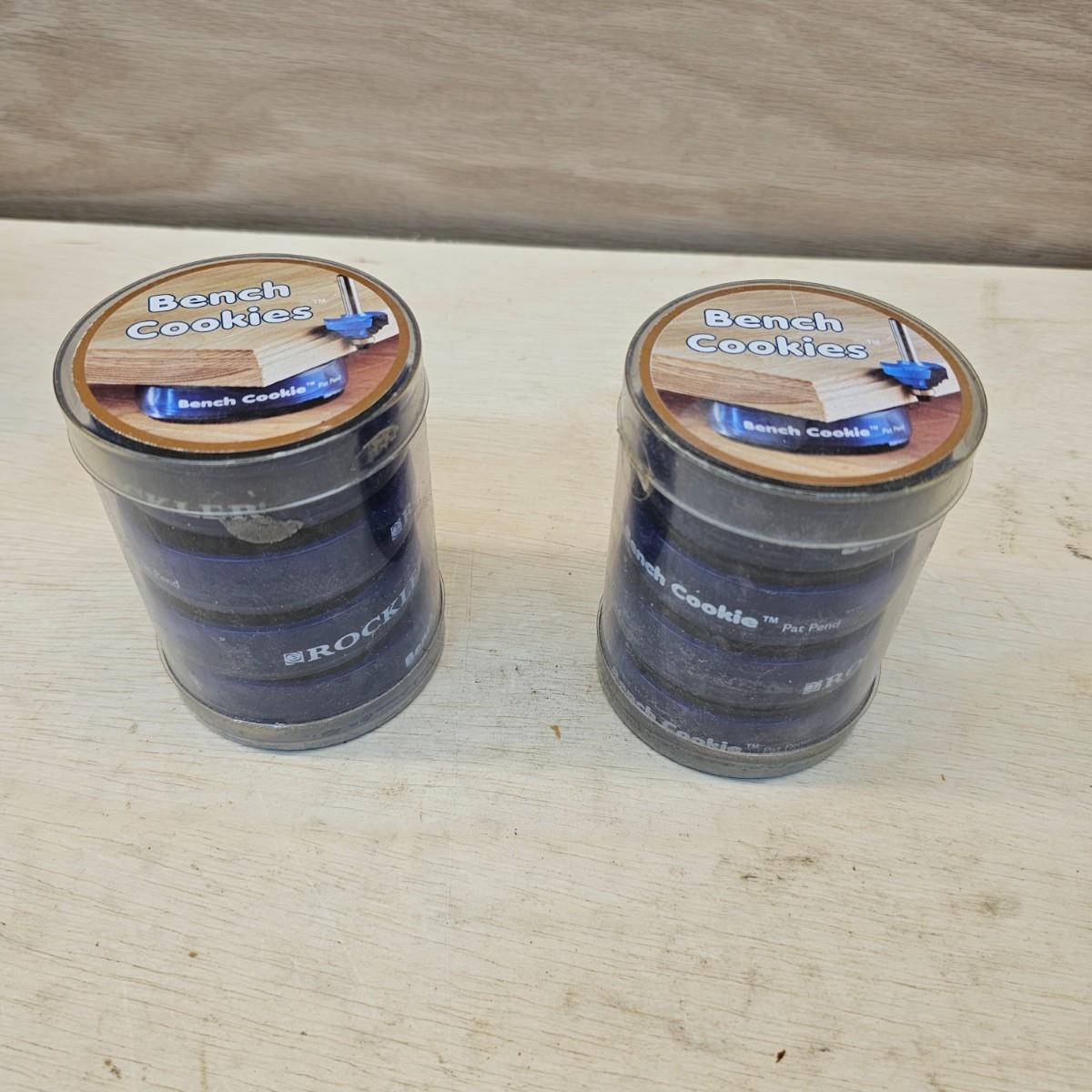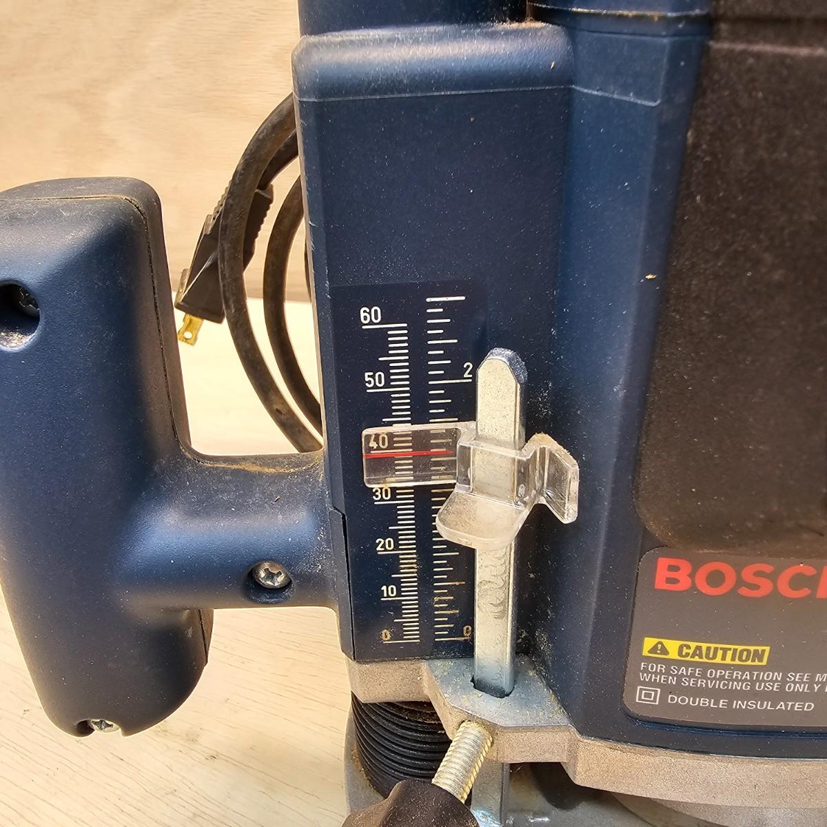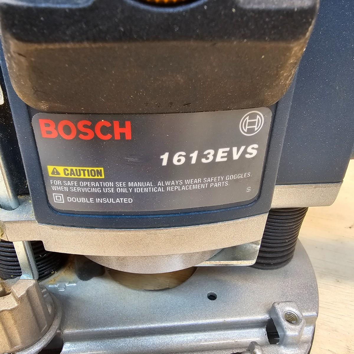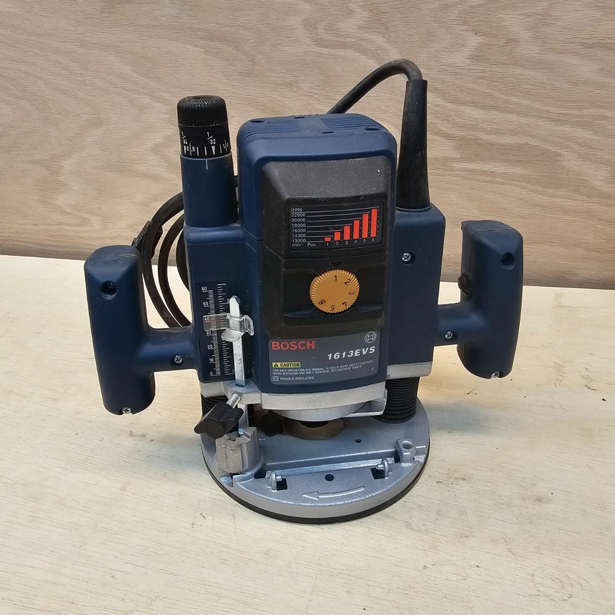 Two handled Bosch Router with three separate guide plates. Router has no case, measures 11.5" x 6" x 9"H, powered on when plugged in. Includes an Incra and a Woodpeckers guide which are mountable to the bottom of the tool. Both items are approximately 11.75" x 9.5". Also a Bosch deluxe router guide in box with instructions. Two tubes of Rockler brand bench cookies to raise and stabilize pieces for work or routing. See photos for details. Shipping available.