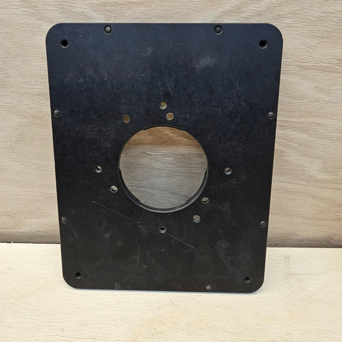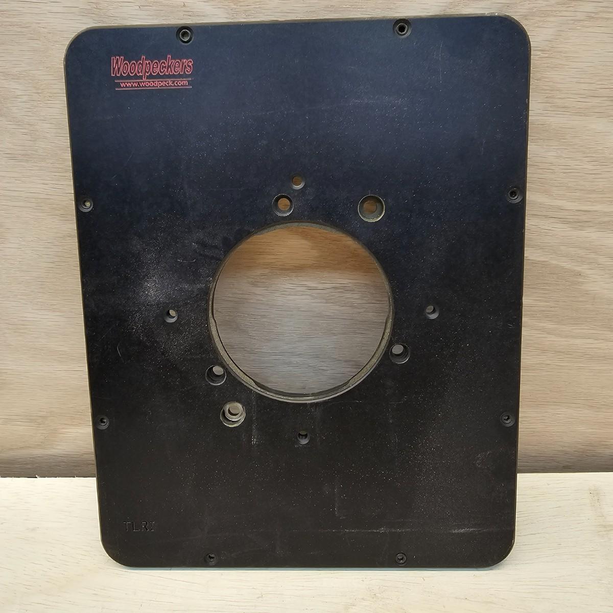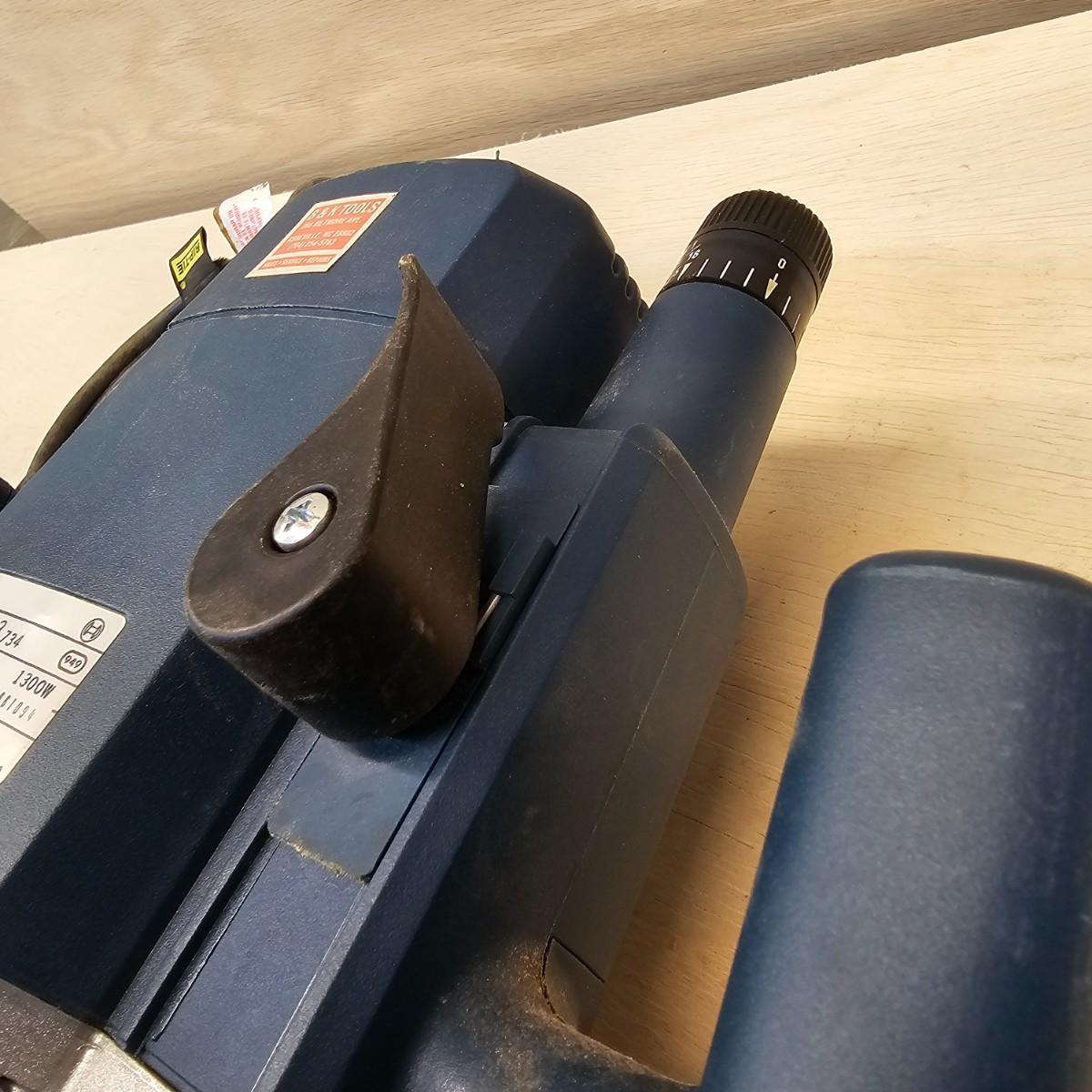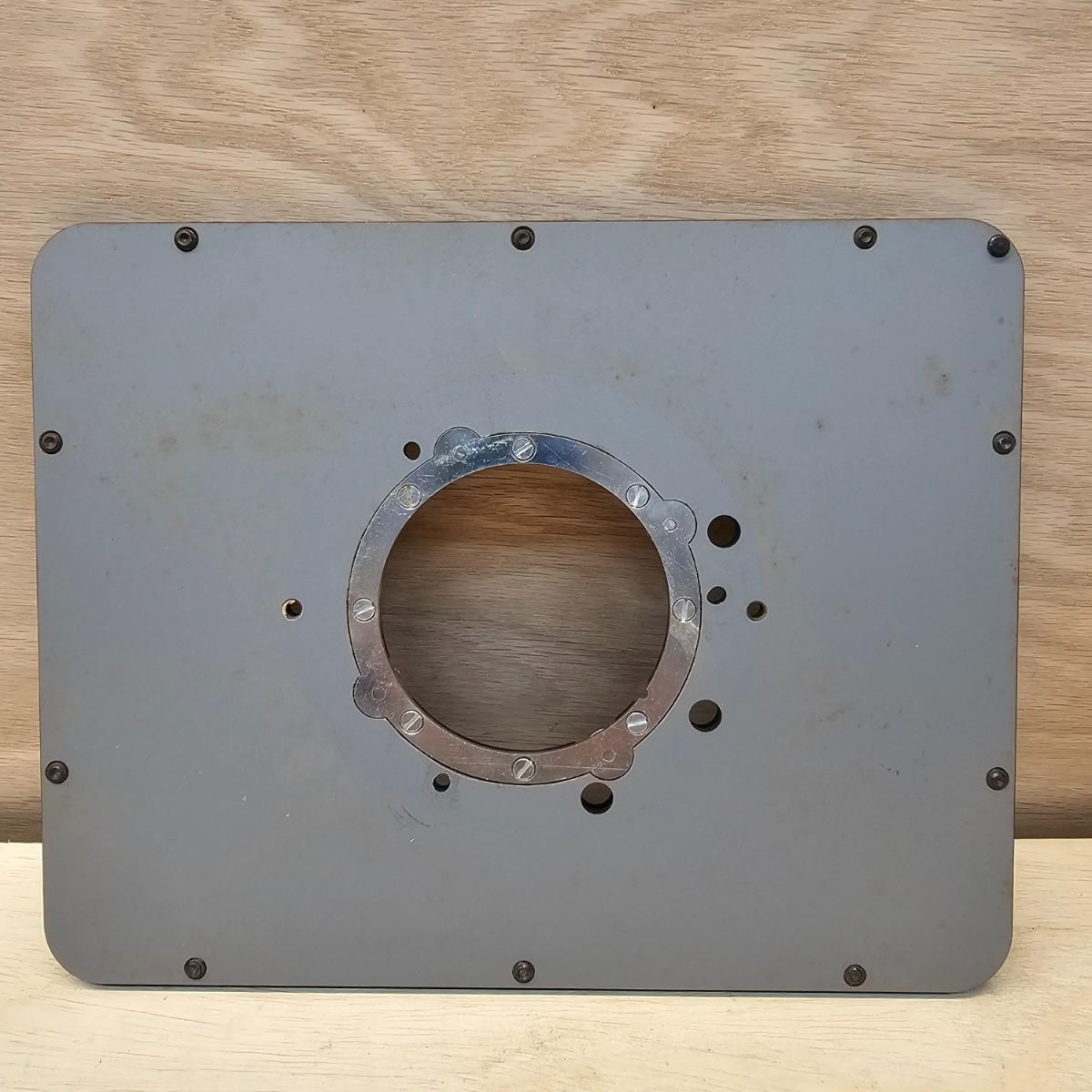 Two handled Bosch Router with three separate guide plates. Router has no case, measures 11.5" x 6" x 9"H, powered on when plugged in. Includes an Incra and a Woodpeckers guide which are mountable to the bottom of the tool. Both items are approximately 11.75" x 9.5". Also a Bosch deluxe router guide in box with instructions. Two tubes of Rockler brand bench cookies to raise and stabilize pieces for work or routing. See photos for details. Shipping available.