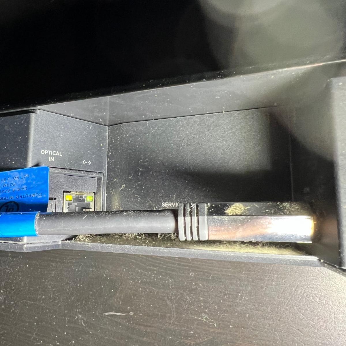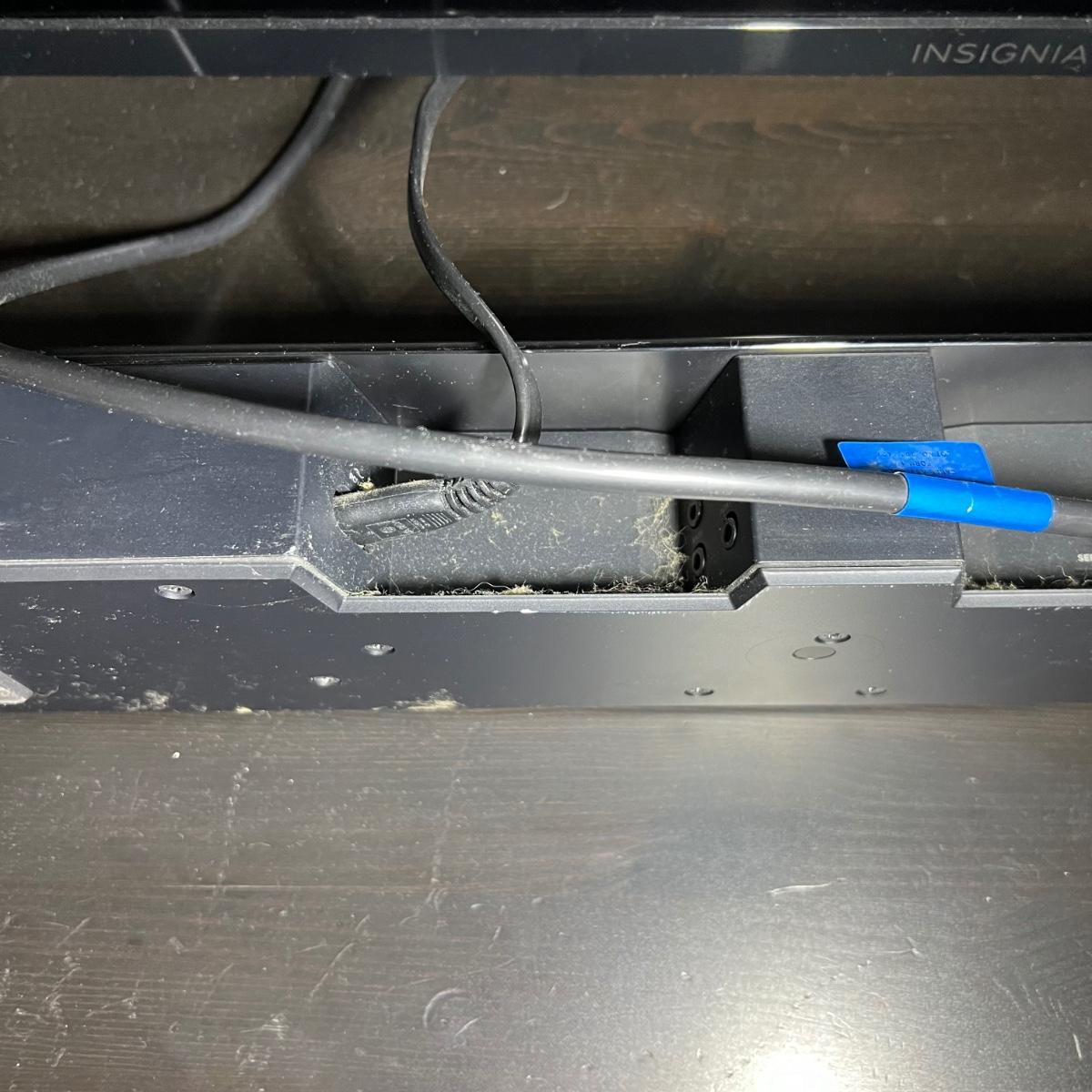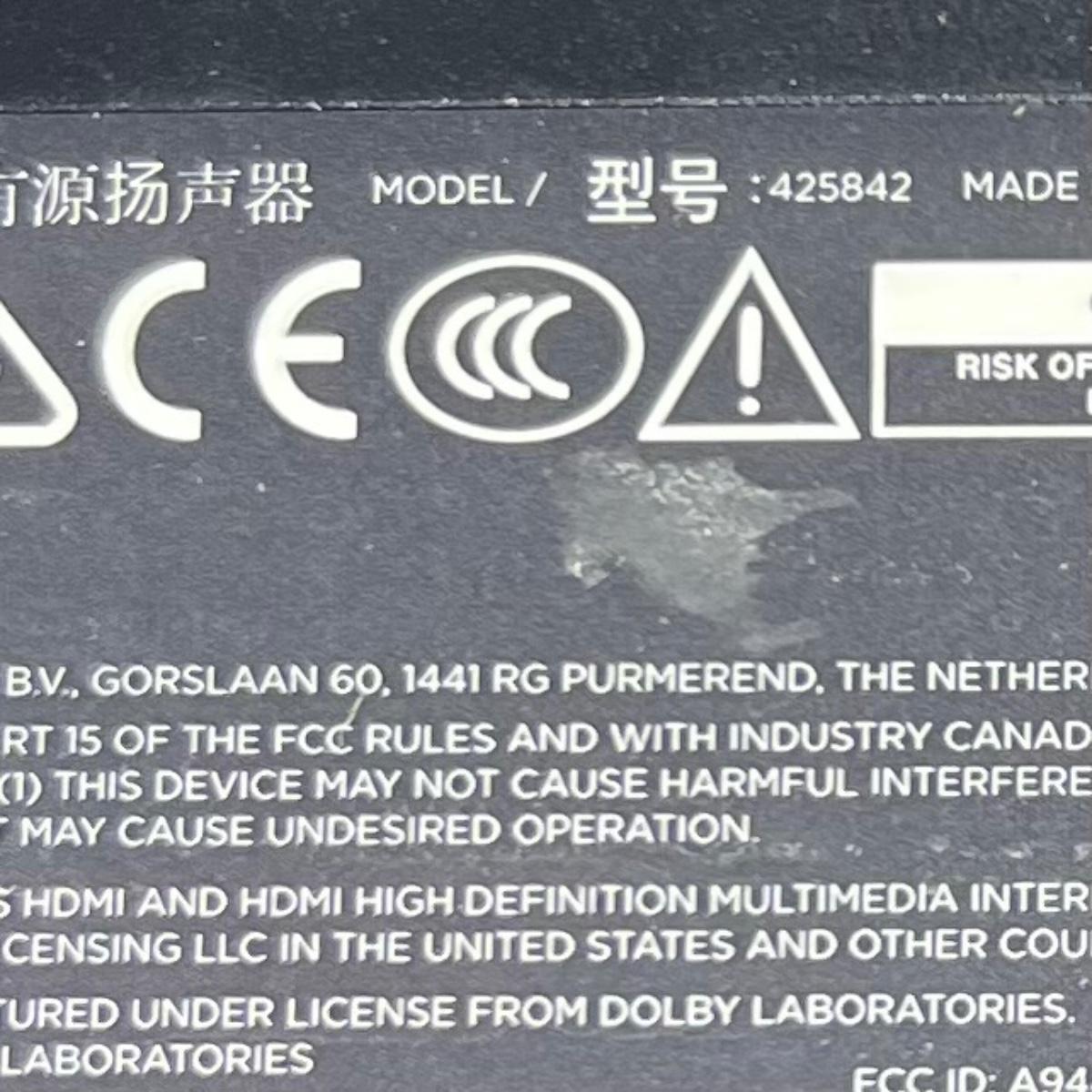 This Bose 700 soundbar measures 38” x 3” x 2”H. Soundbar powered on when plugged in. See image for model number. Also includes remote. TV in background is available in another lot in this sale.