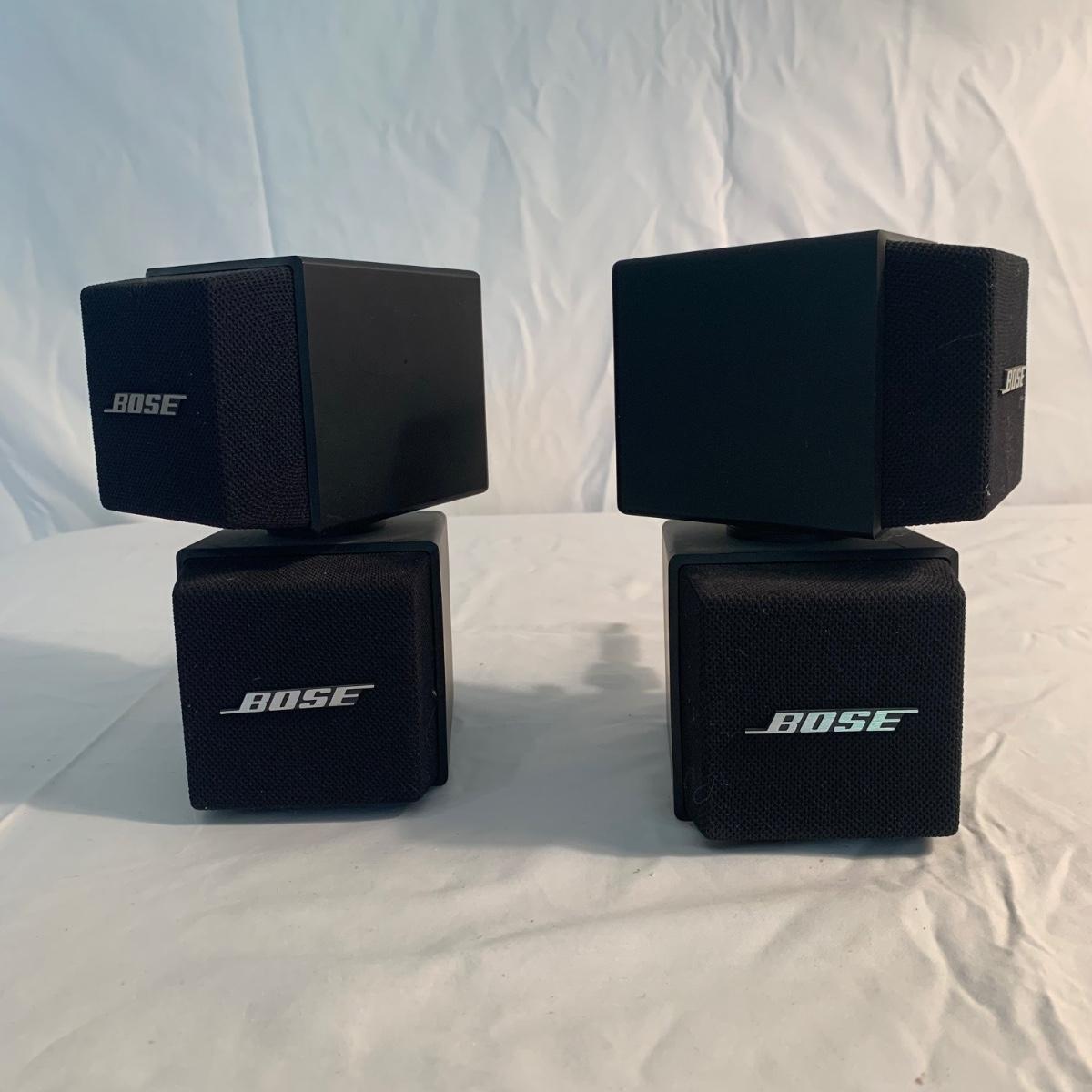 Two Bose AM-5 Acoustimass Cube System speakers. Each speaker set is 3.5” x 5” x 7.5”H. Mounting hardware is included. Speakers were not tested.