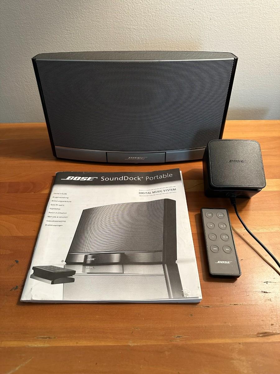 Bose Sound Dock portable digital music system with user guide, bose remote & bose power cord