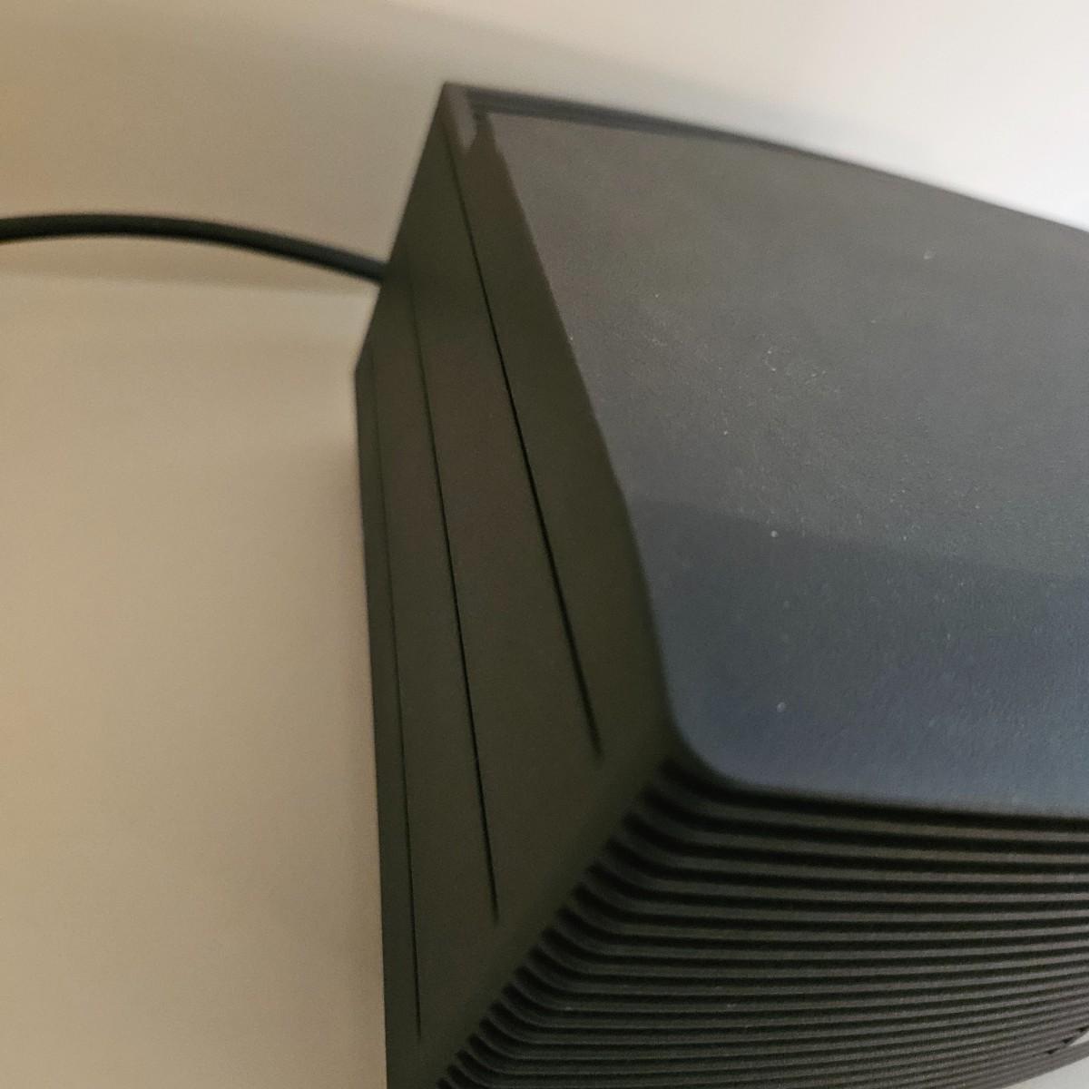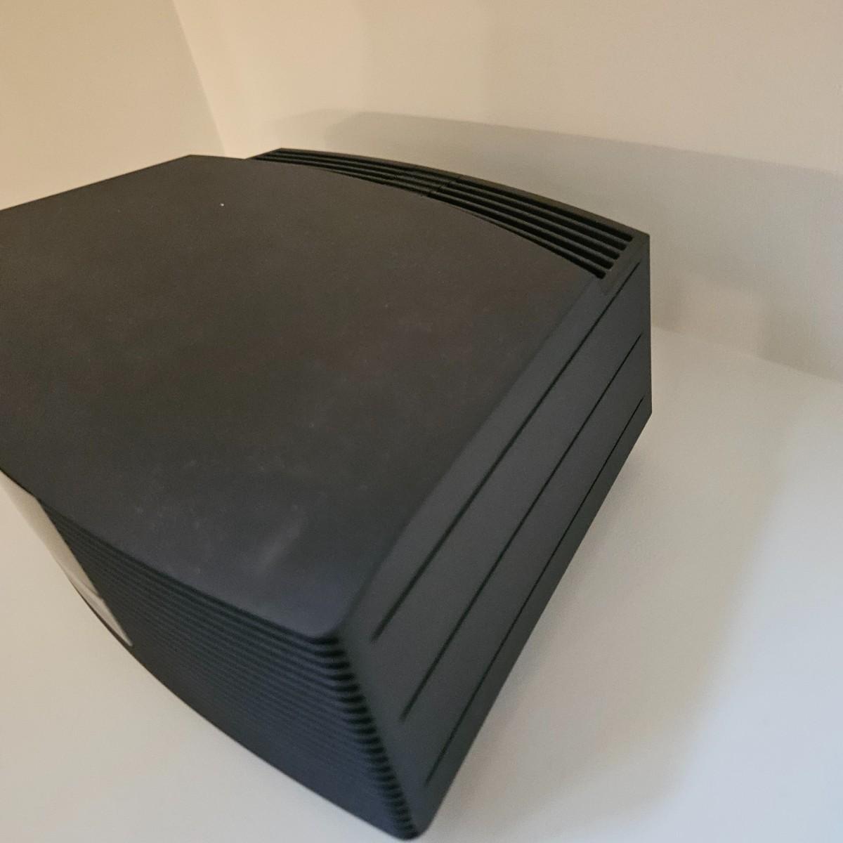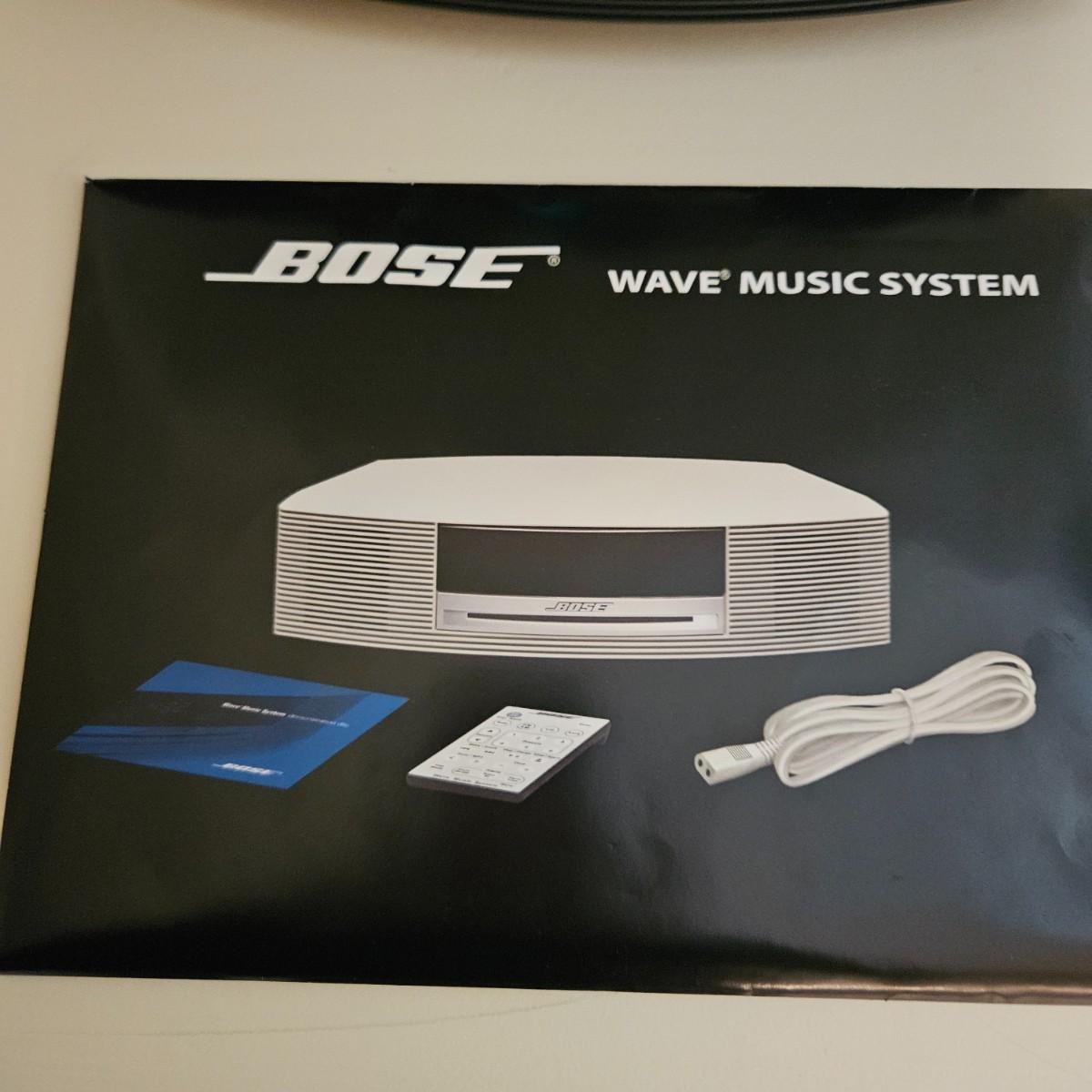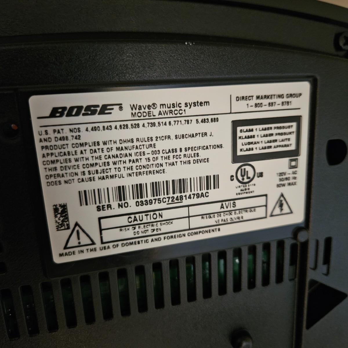 A Bose wave music system clock/radio/CD player that powered on when plugged in. It includes a remote and the original manual. It measures approximately 14.5" x 9" x 4"H. The CD player was not tested due to a lack of a convenient CD. Shipping available