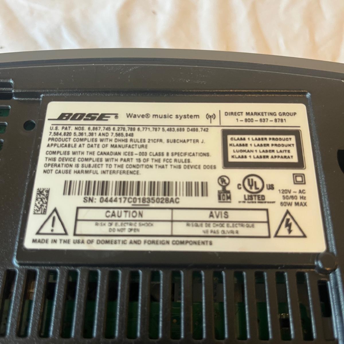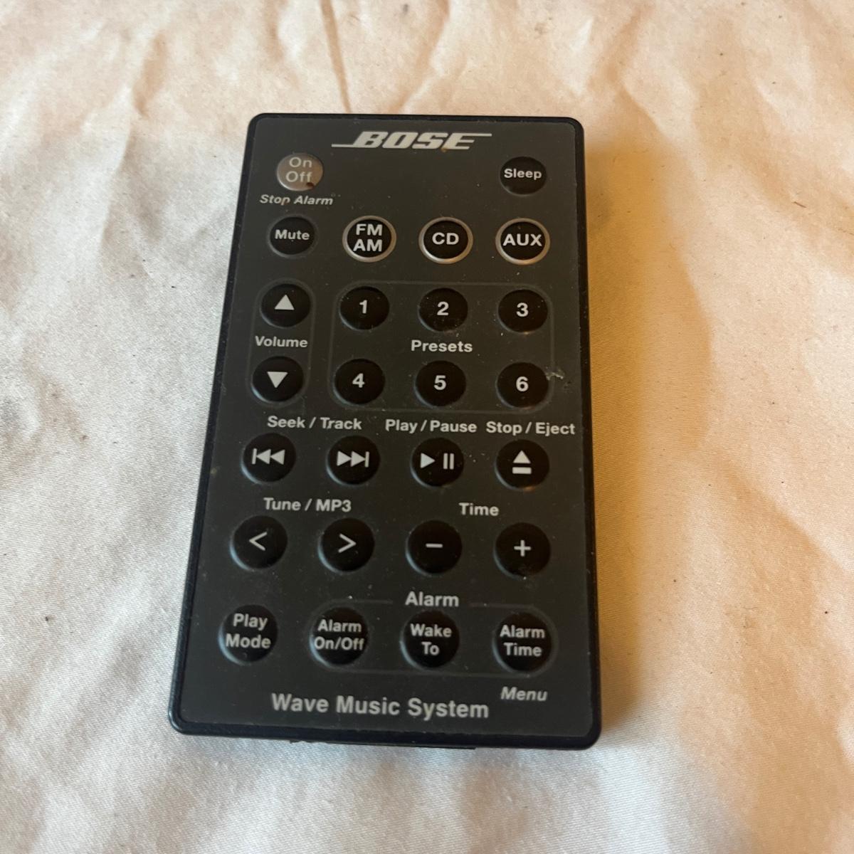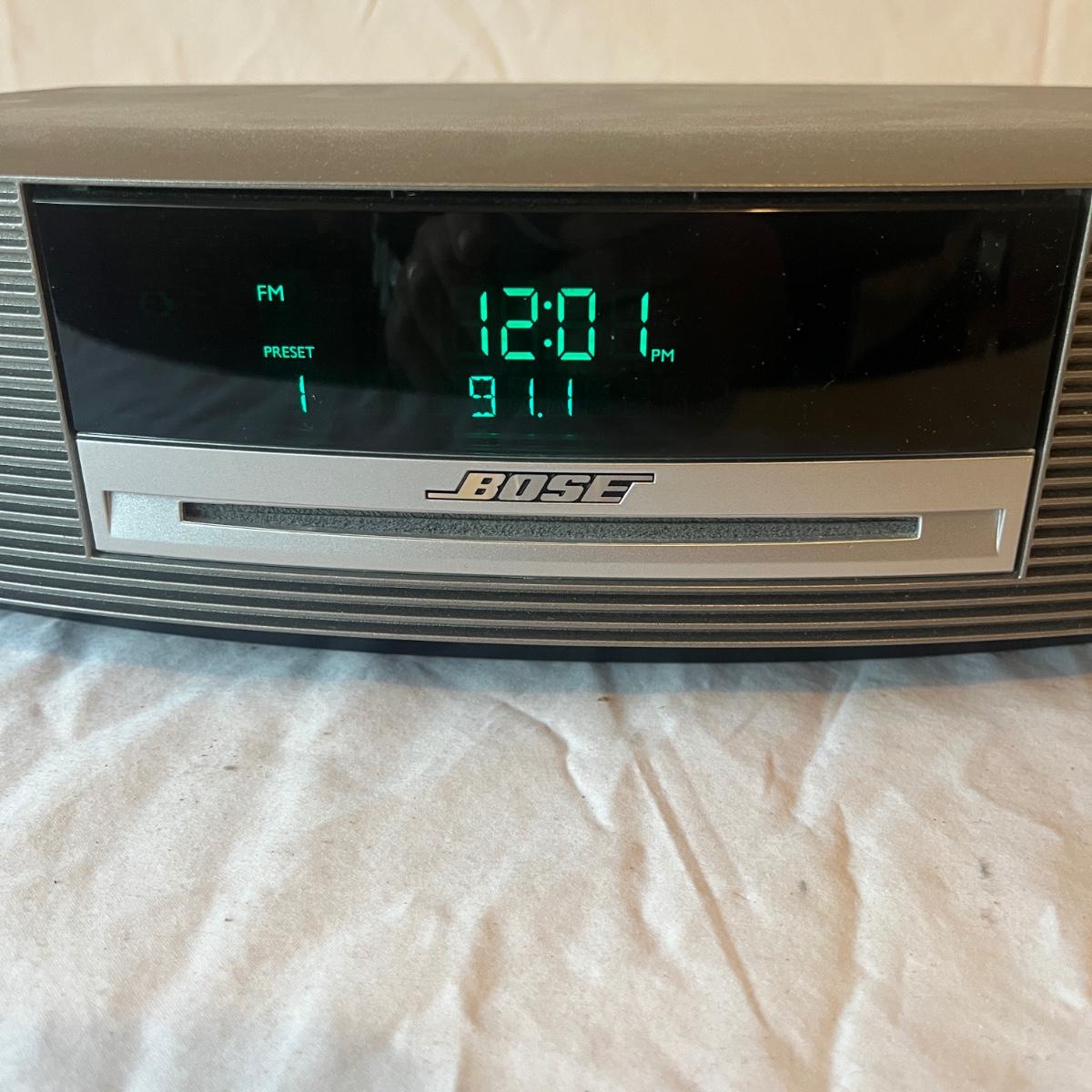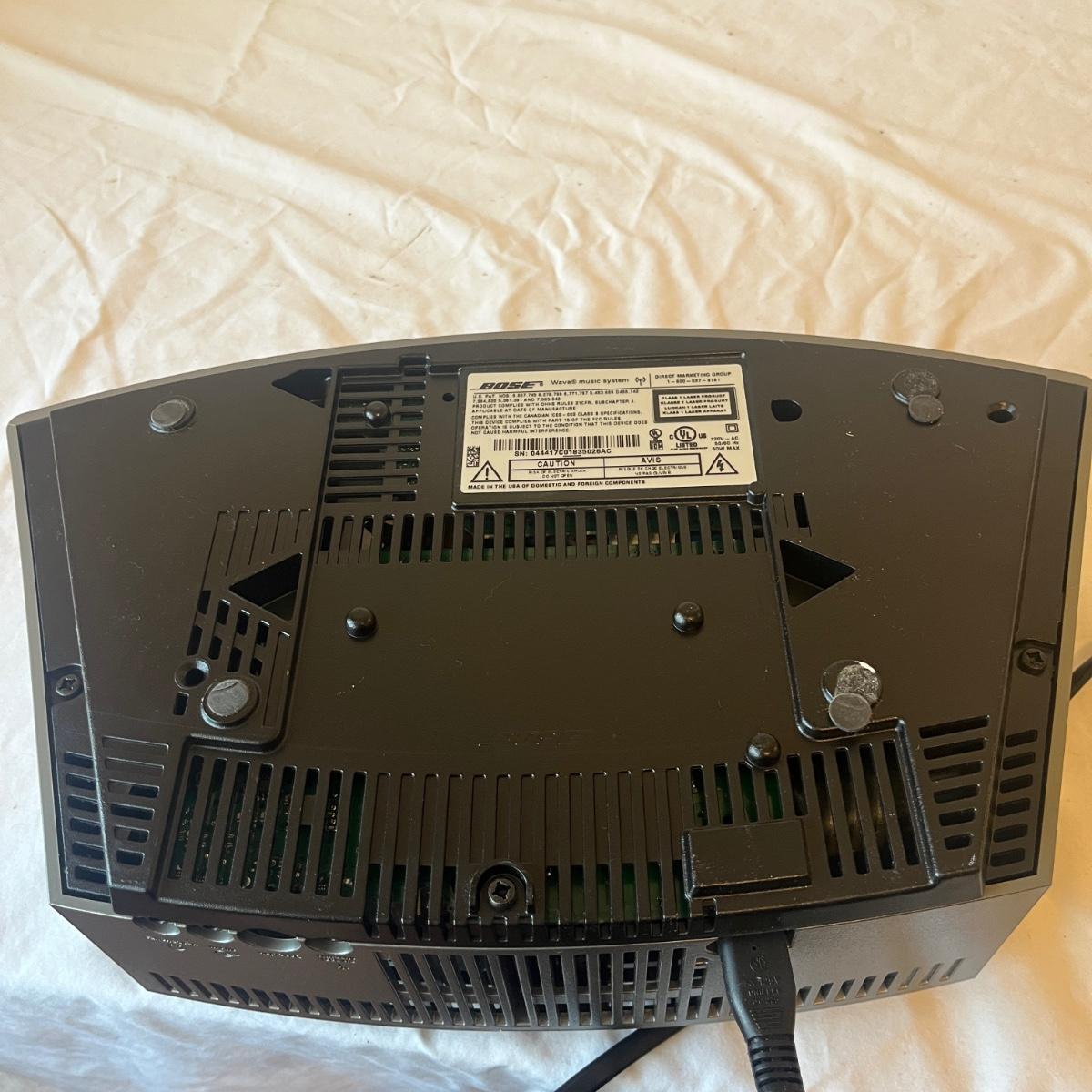 Lot includes a Bose Wave CD/Radio with remote that worked. Radio measures 14.5” x 9” x 4”H and powered on when plugged in.