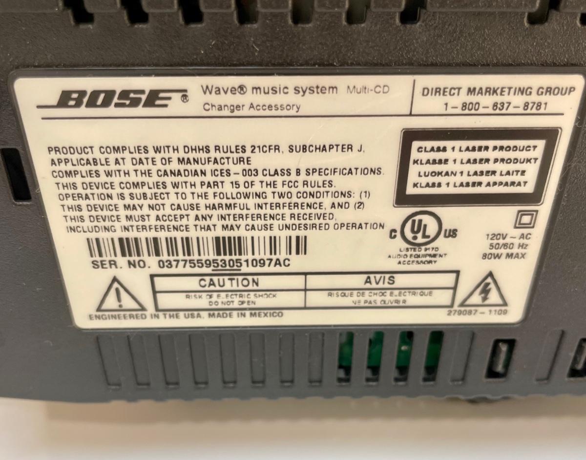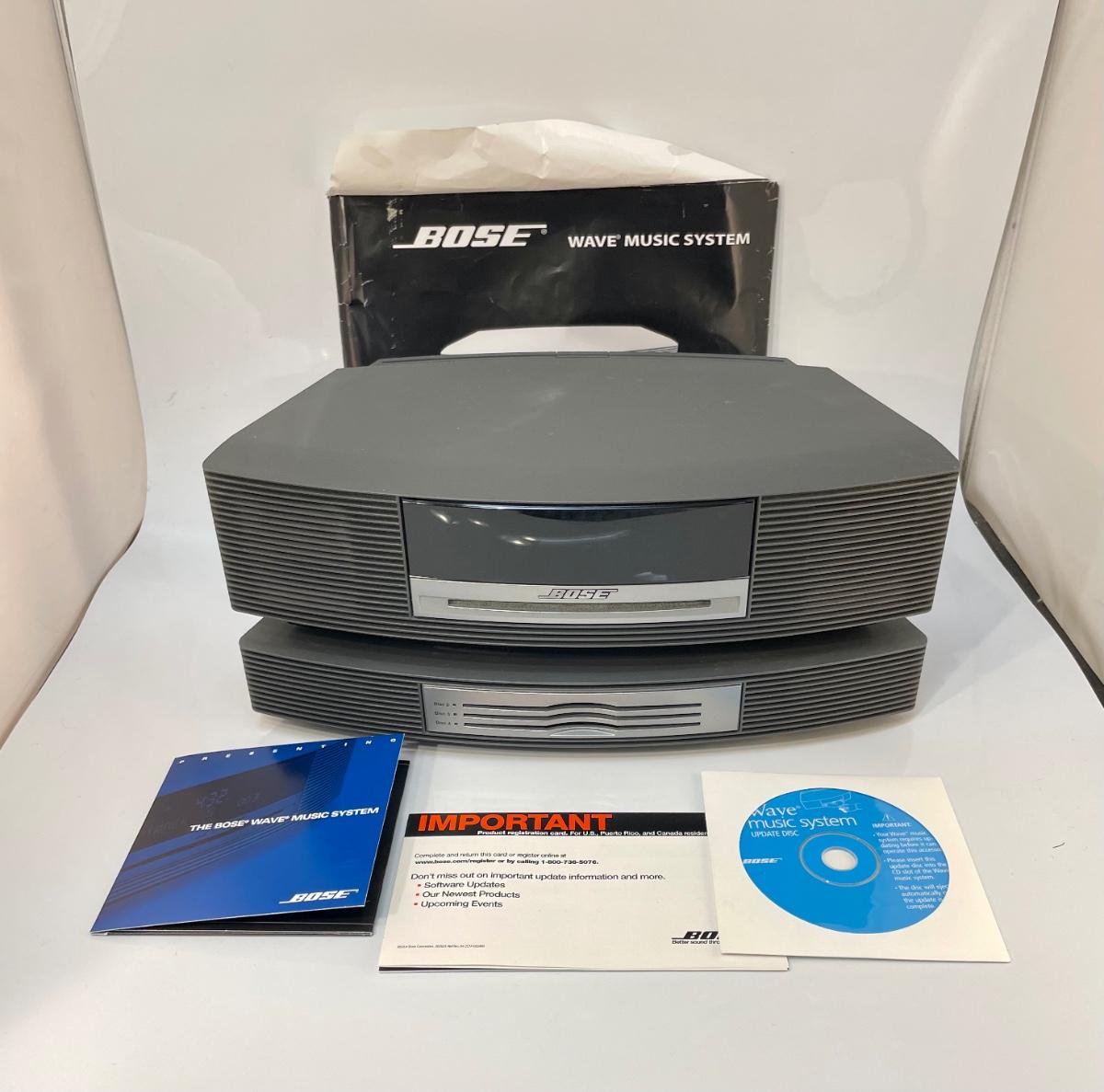 Bose Wave Music System AWRCC1 and Multi-CD ChangerAccessory. 2 unit matched pair. Tested, works and sounds like new. Includes instructions and system update CD.
