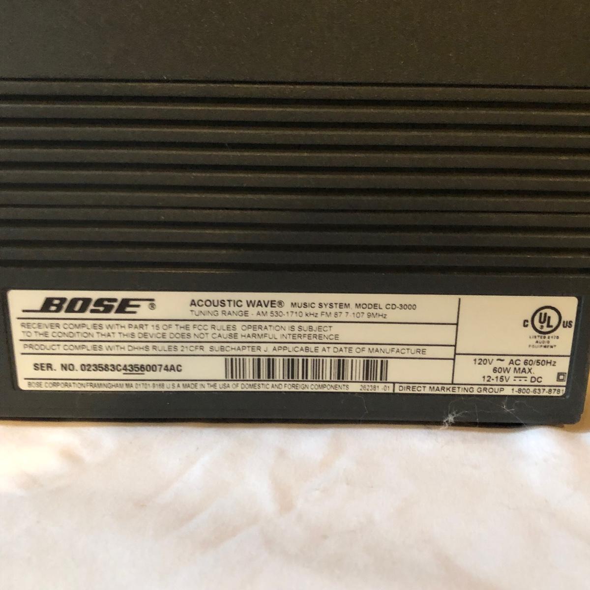 Lot includes Bose Wave radio and CD player model # CD 3000 with remotes. Radio and CD player worked when tested.