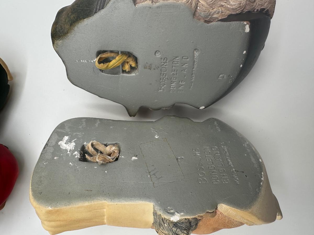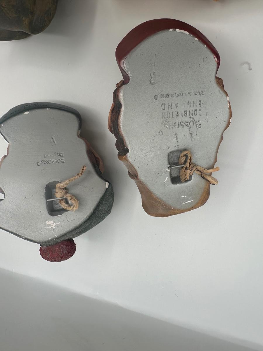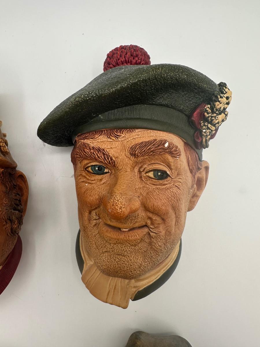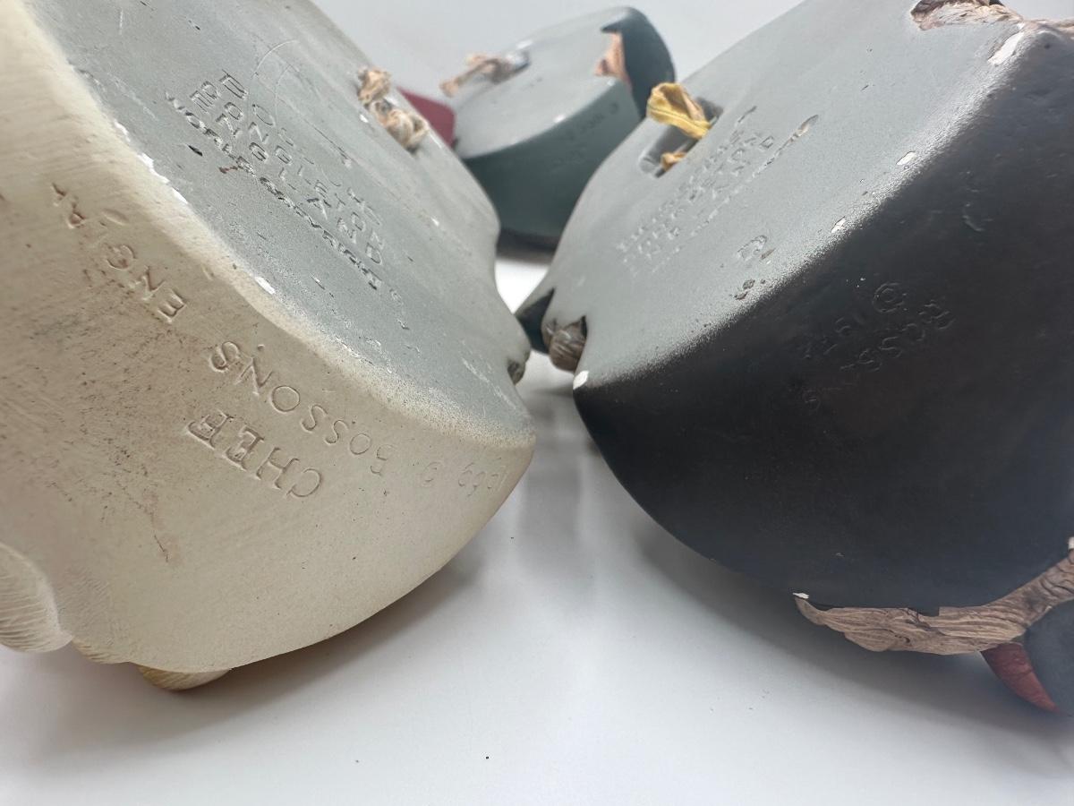 Group of four vintage Bossons character wall masks. Hand-painted chalkware figures produced by Bossons of Congleton, England. Each marked on reverse.
