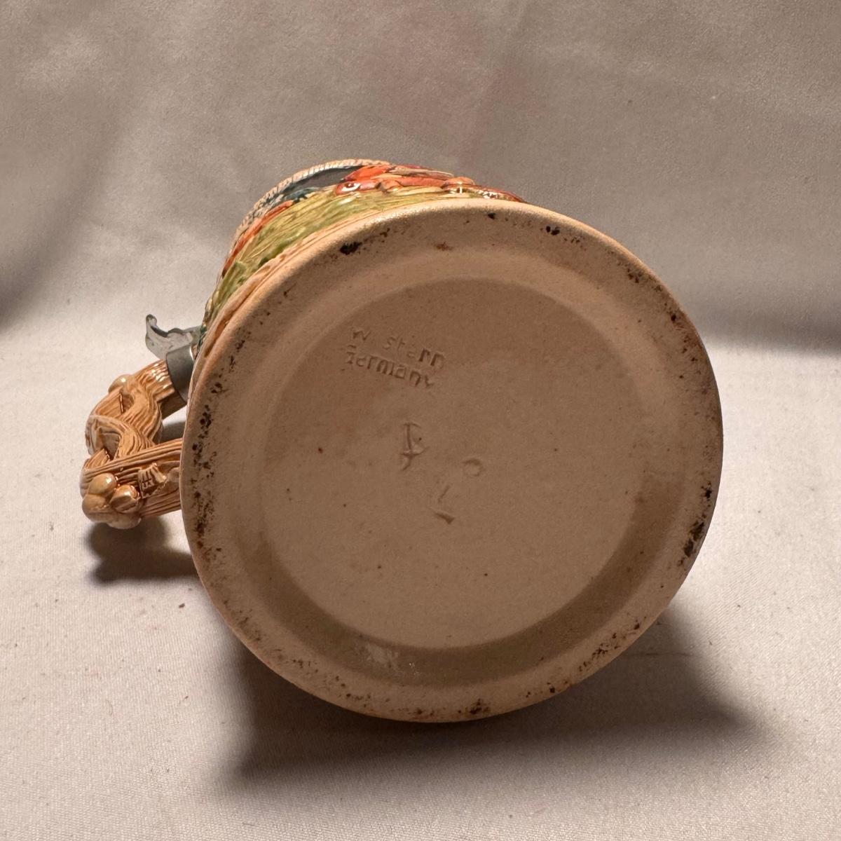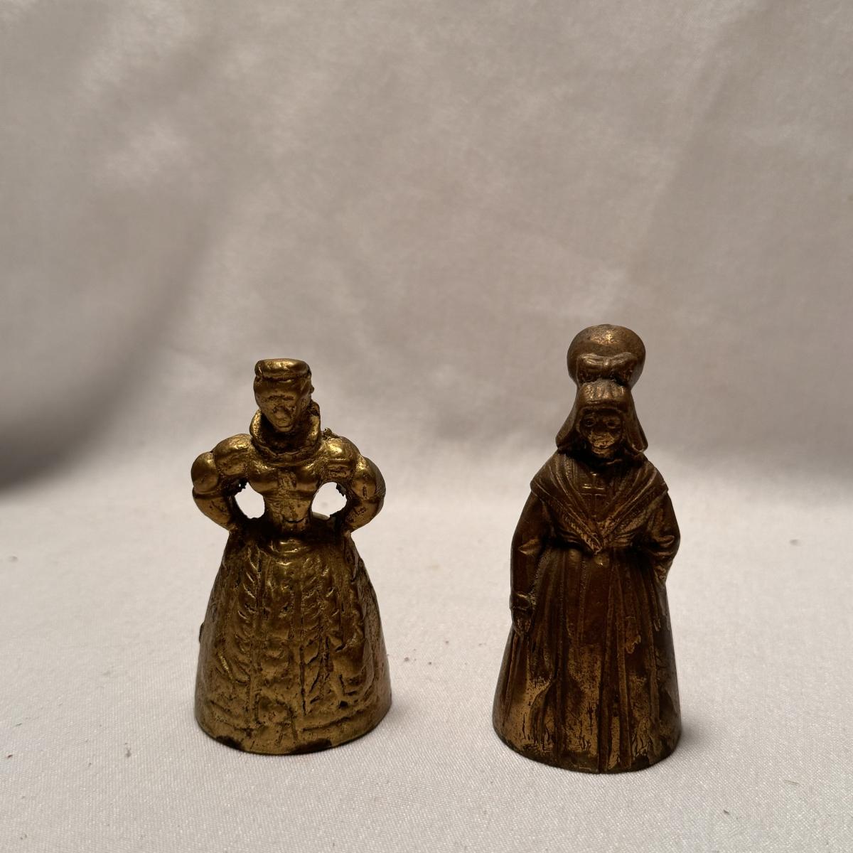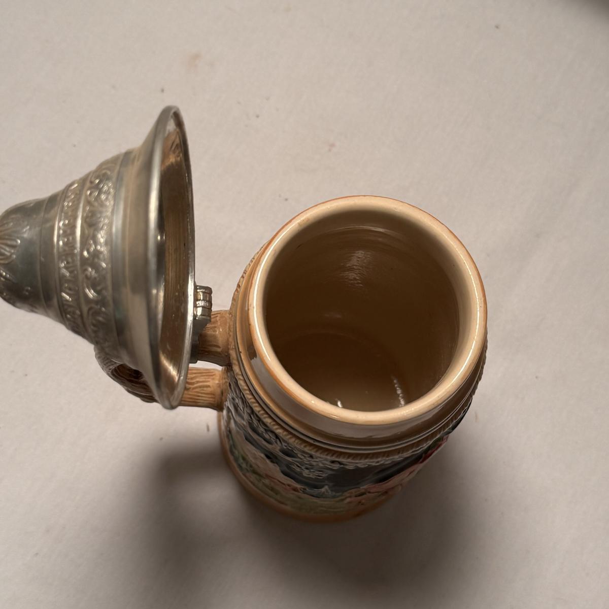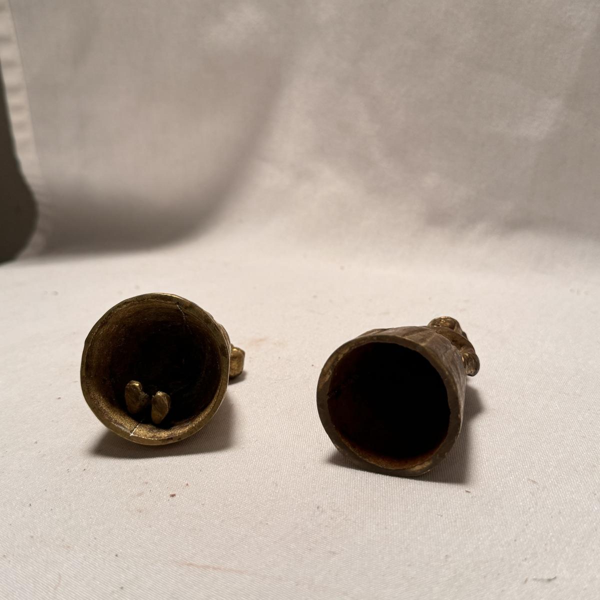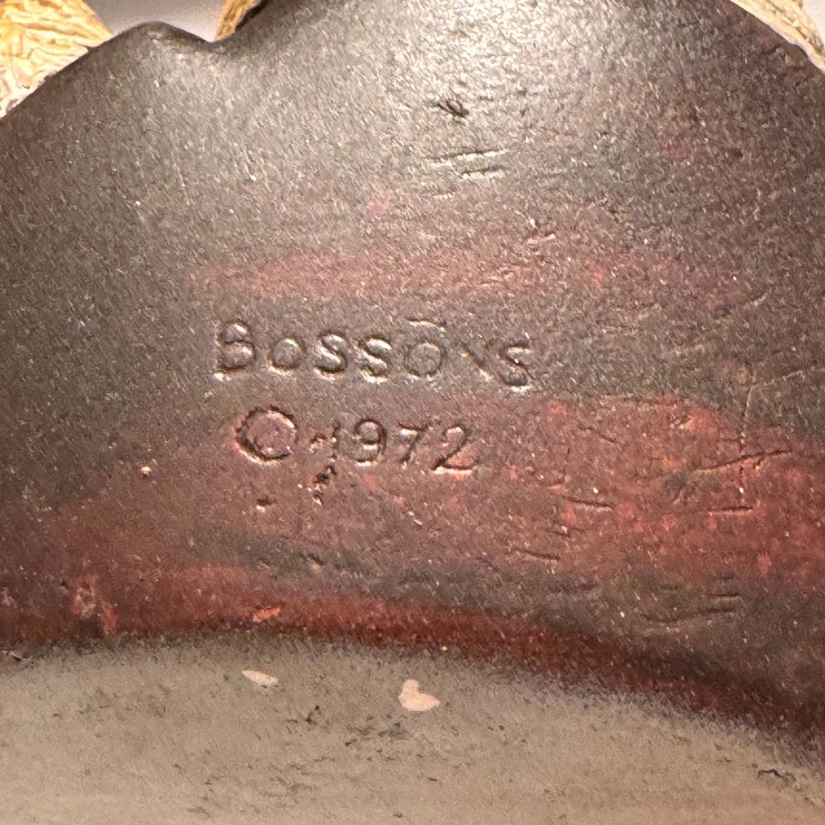This lot includes two Bossons Chalkware heads, one ceramic stein stamped with Western Germany, two brass figurines (one has a bell), and one large brass bell. The Bossons Chalkware head pictured on the right is labeled Brock. The largest item is the stein which measures 6” x 4” x 11”H. Shipping available.