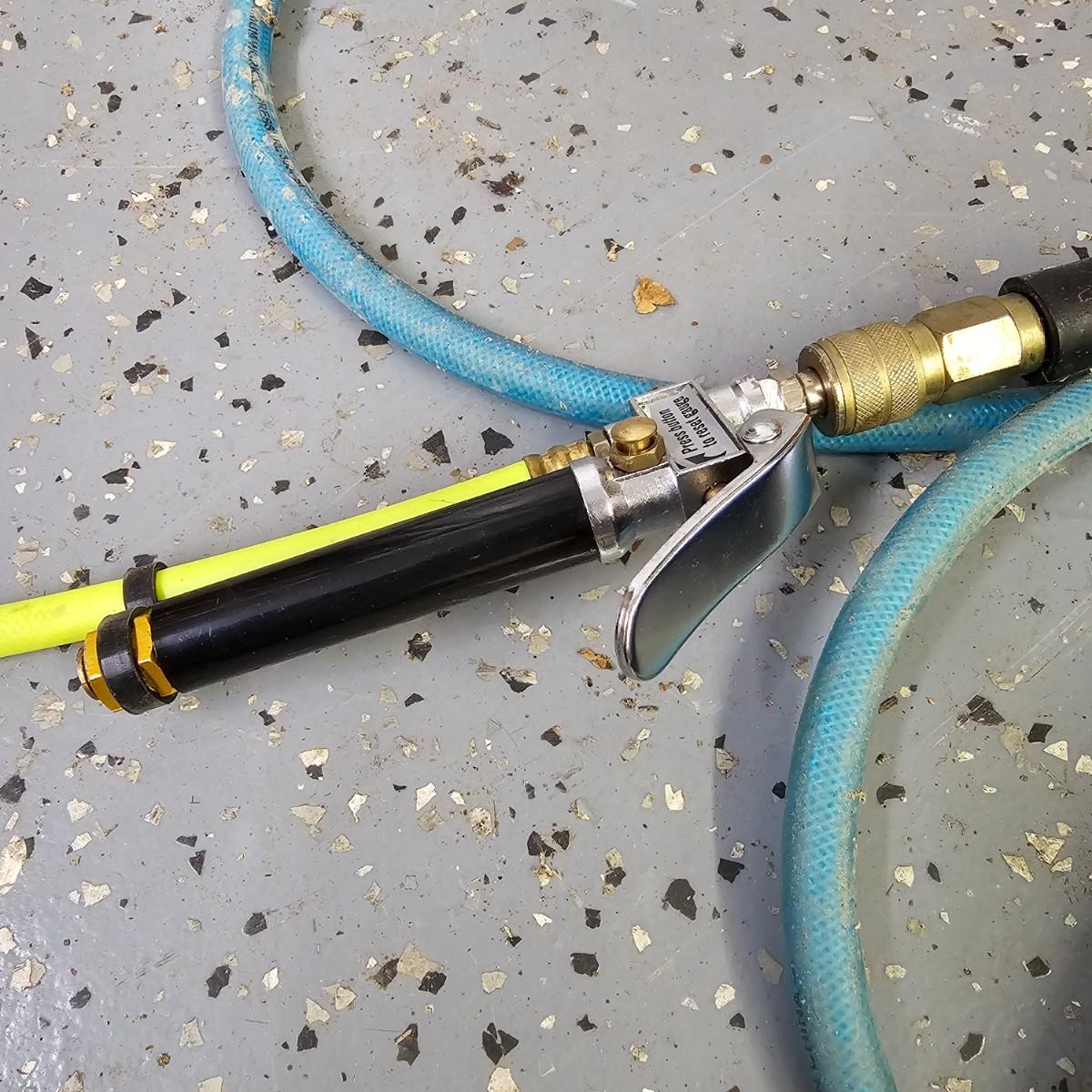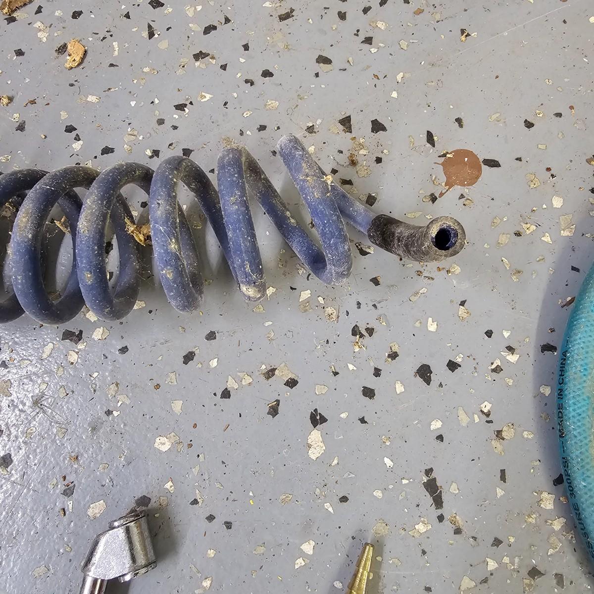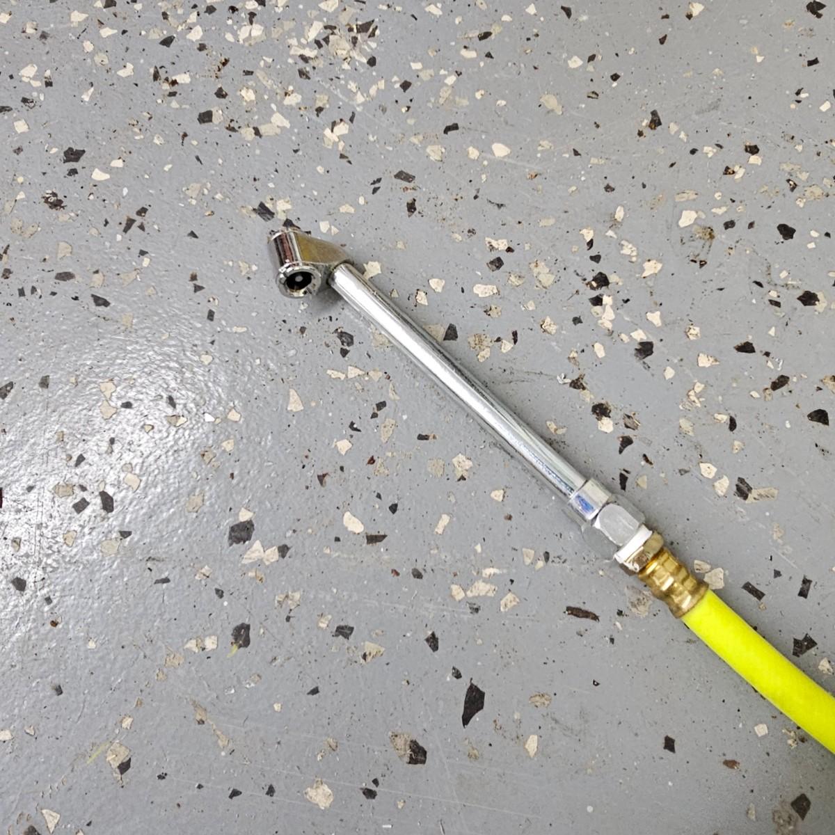 Oil free Bostitch pancake compressor, air hose and attachments. Dual gauges and quick couple ends on hose. Extra tire gauges and air nozzles. Short blue coiled hose needs repair. Compressor measures 17"D x 23"H, and powered on when plugged in. All items used. See photos for details. Local pickup only.