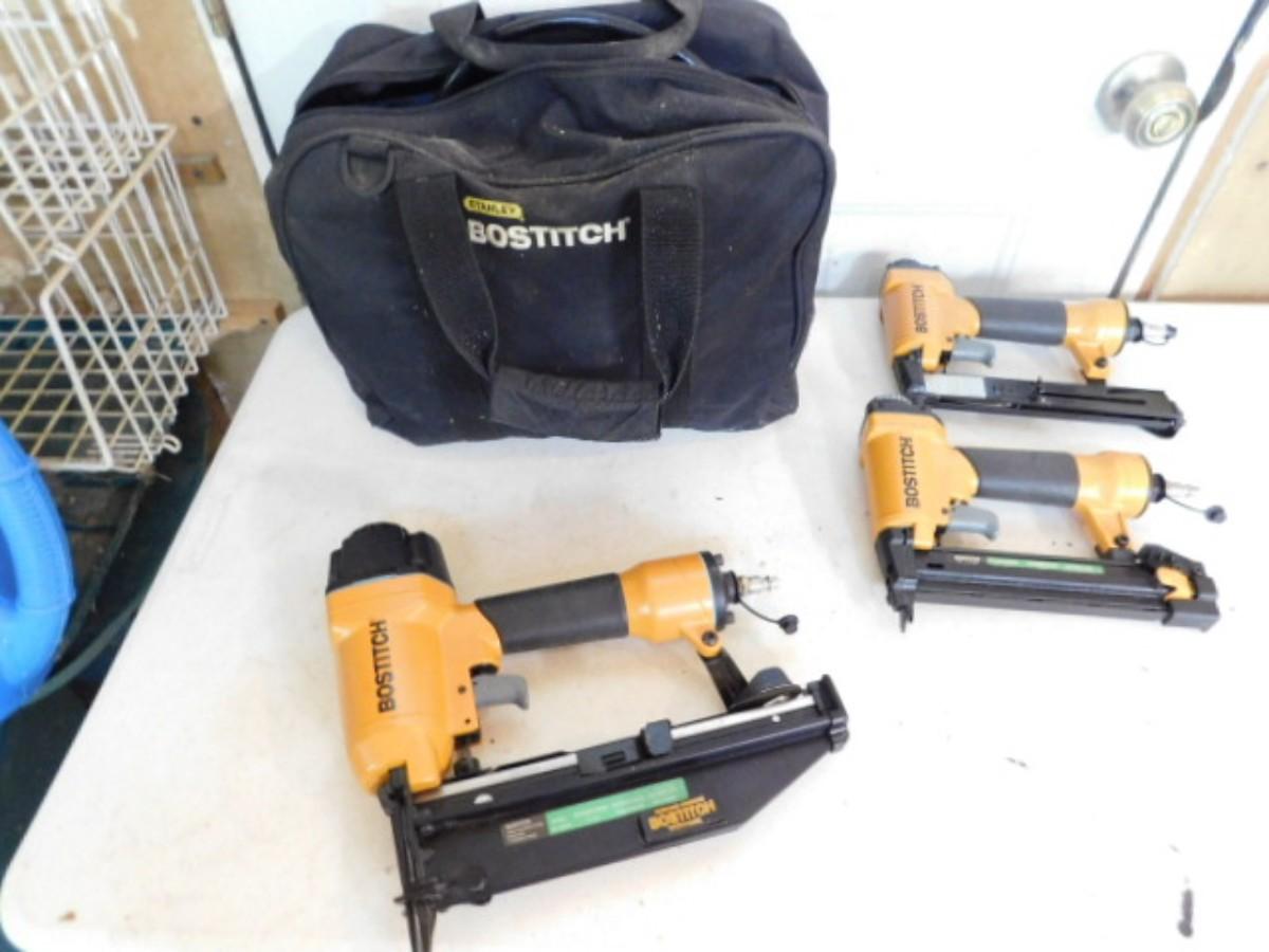 Bostitch Three Piece Pnuematic Brad and Staple Nailers with Carry Bag and Hose