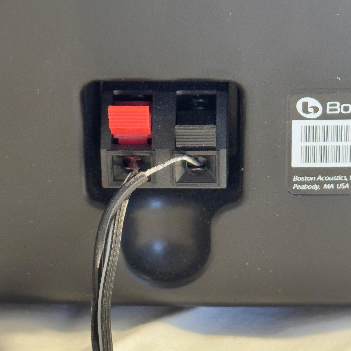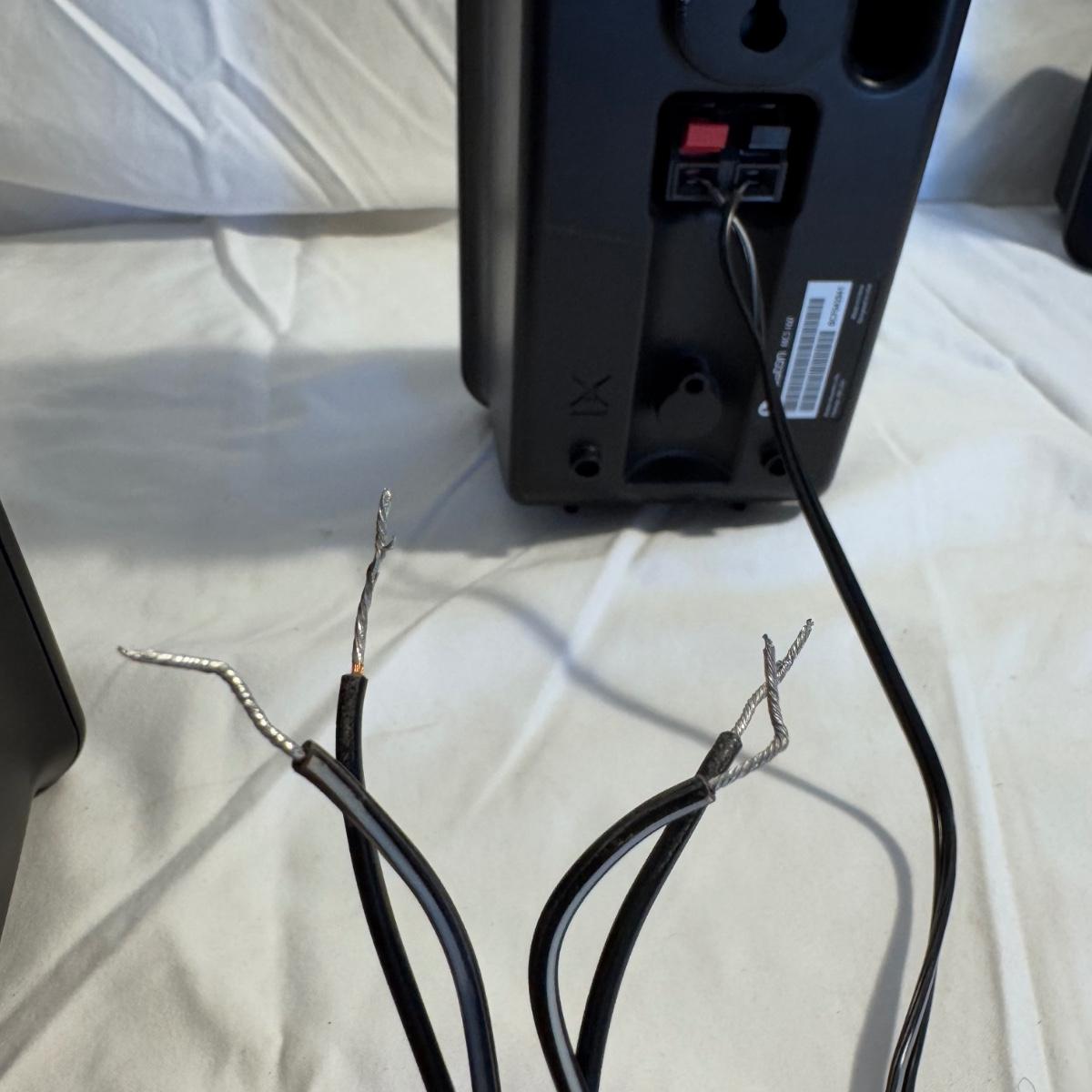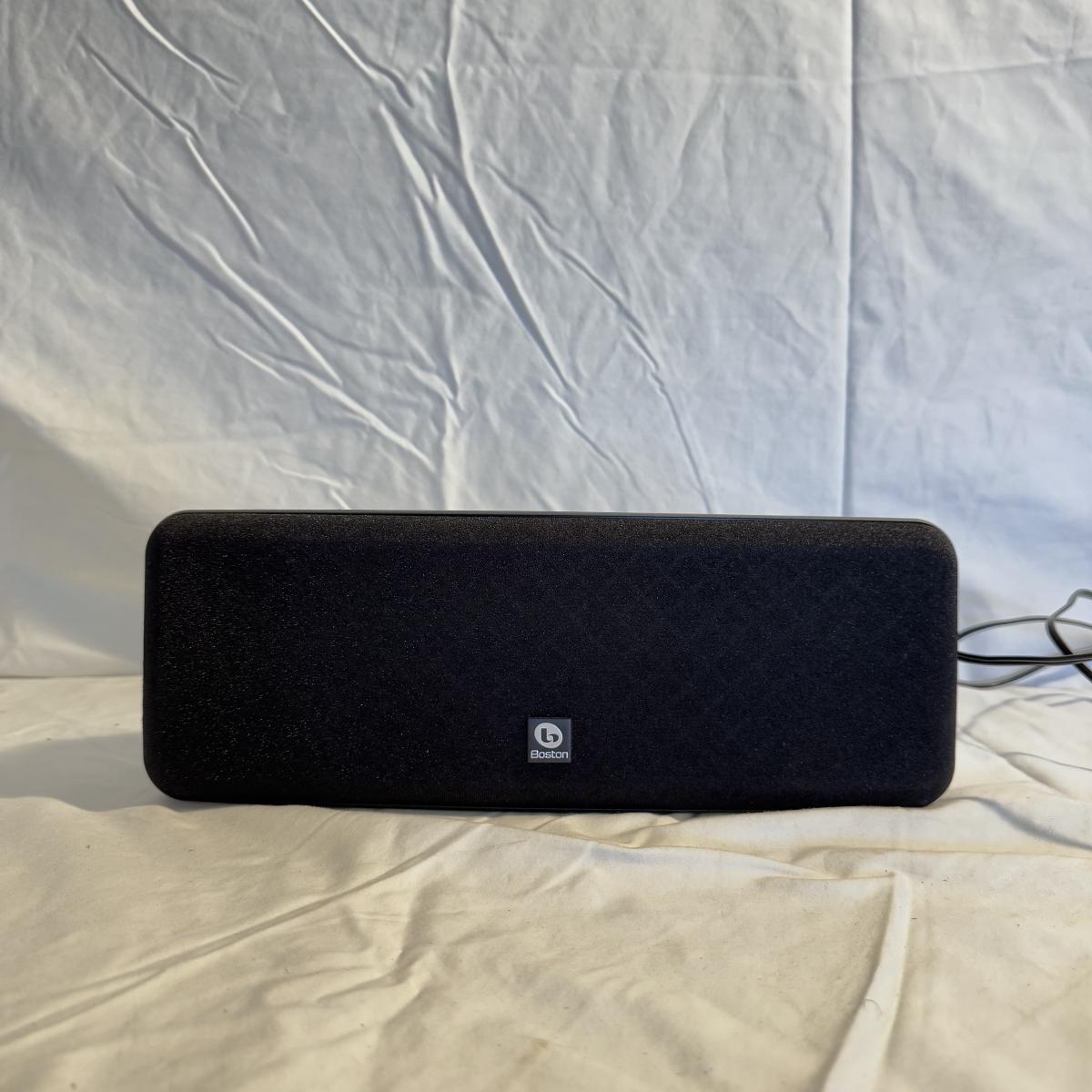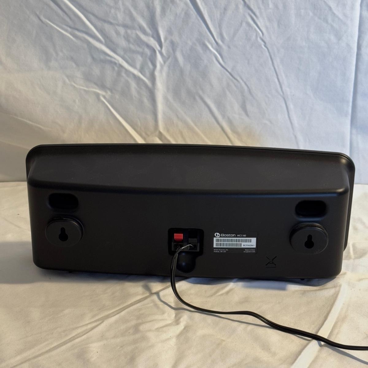 Lot includes three Boston MCS 160 surround sound speakers and one Rocketfish universal wireless rear speaker kit. The speakers have not been tested, but they appear to be in excellent shape. The largest speaker measures 12.5” x 3.5” x 4.5”H. Shipping available.