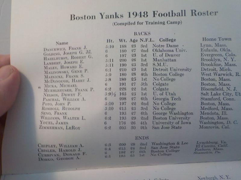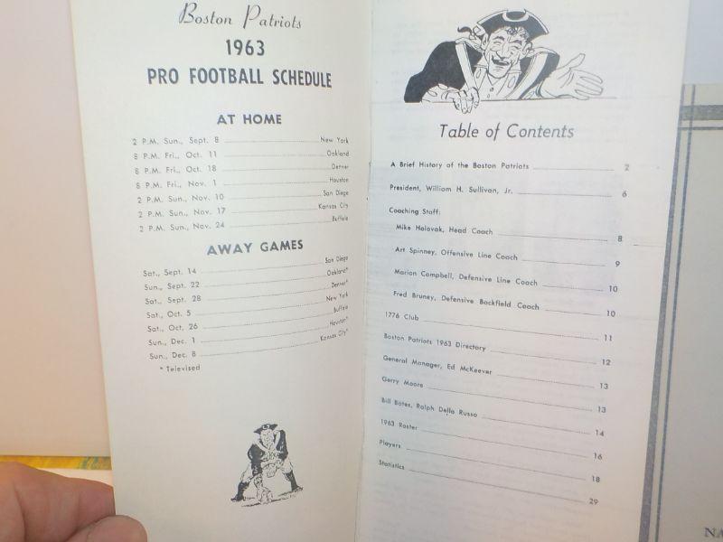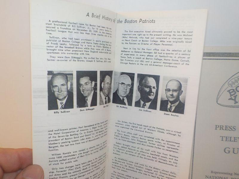 " Boston Patriots 1963 and Boston Yanks Press programs."